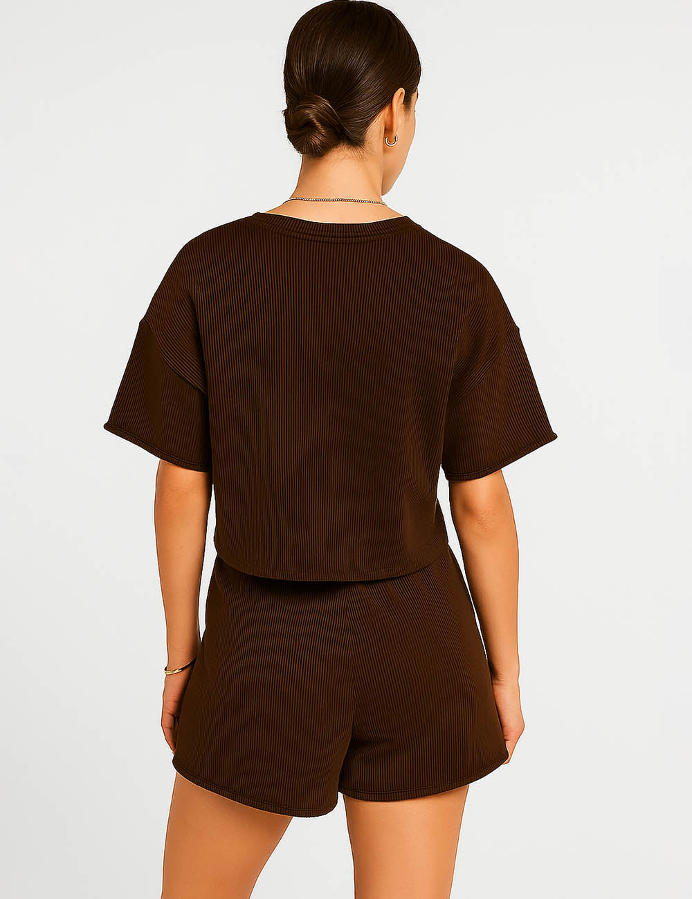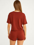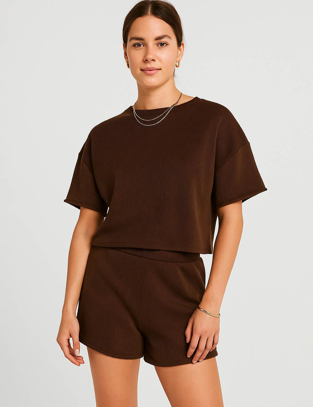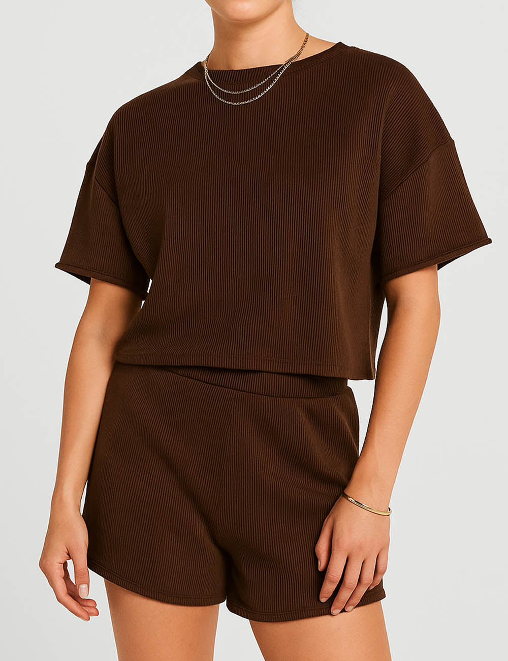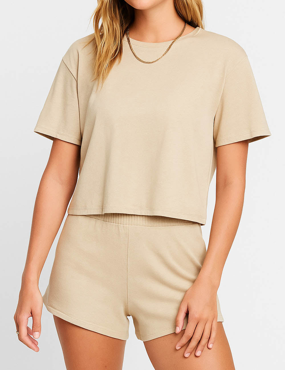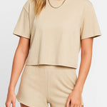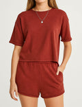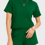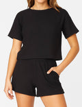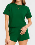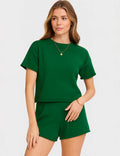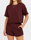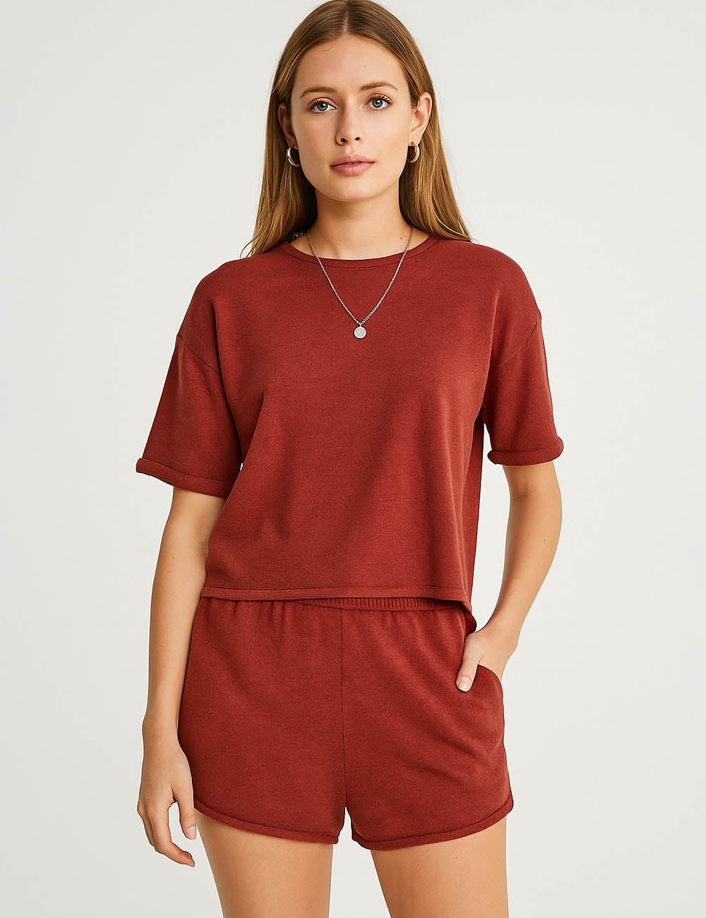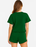 Ladies Solid Color Short Sleeves Knit Top & Shorts Set