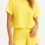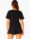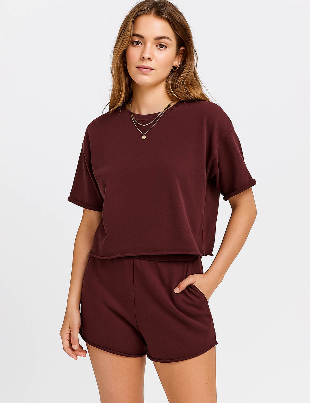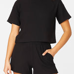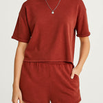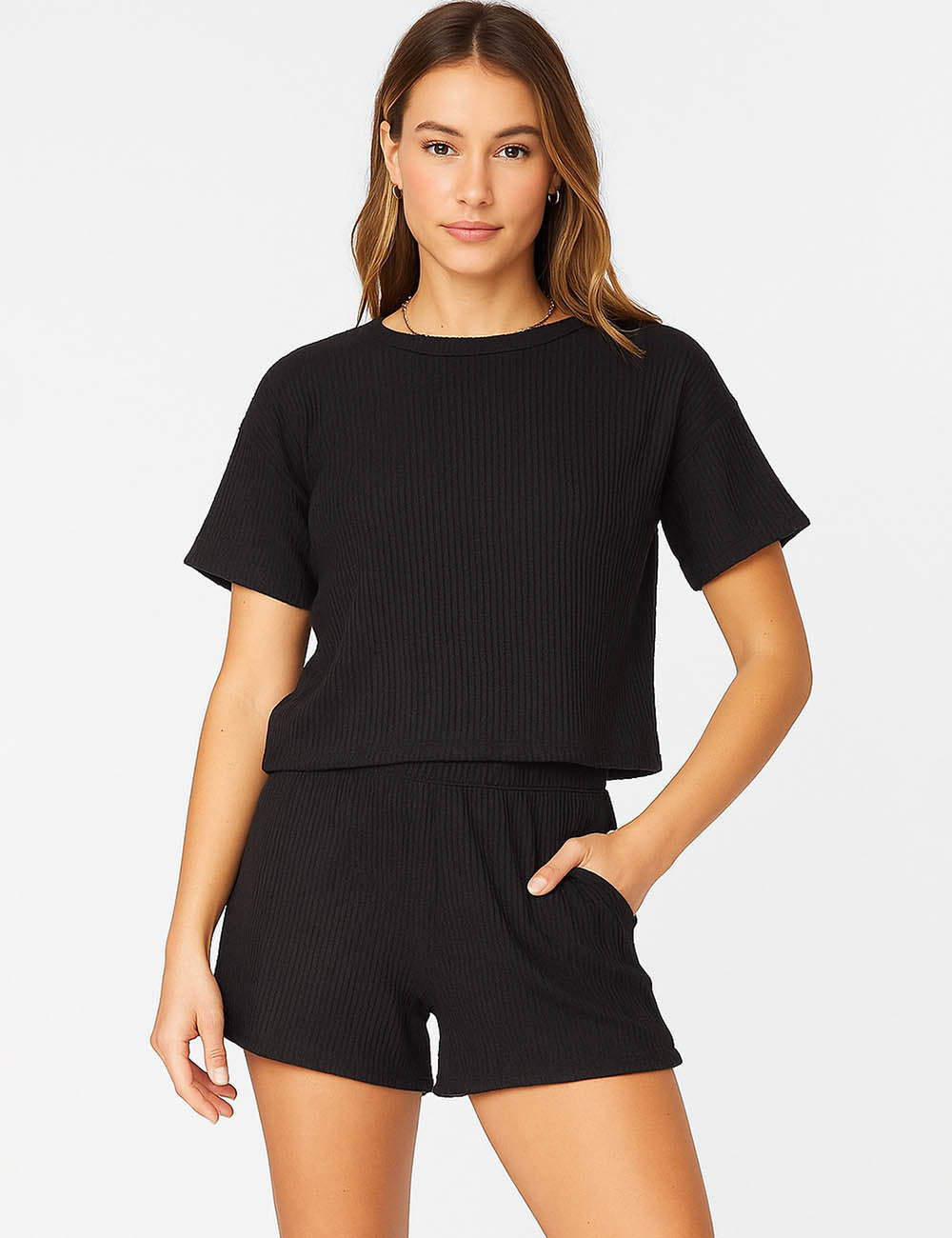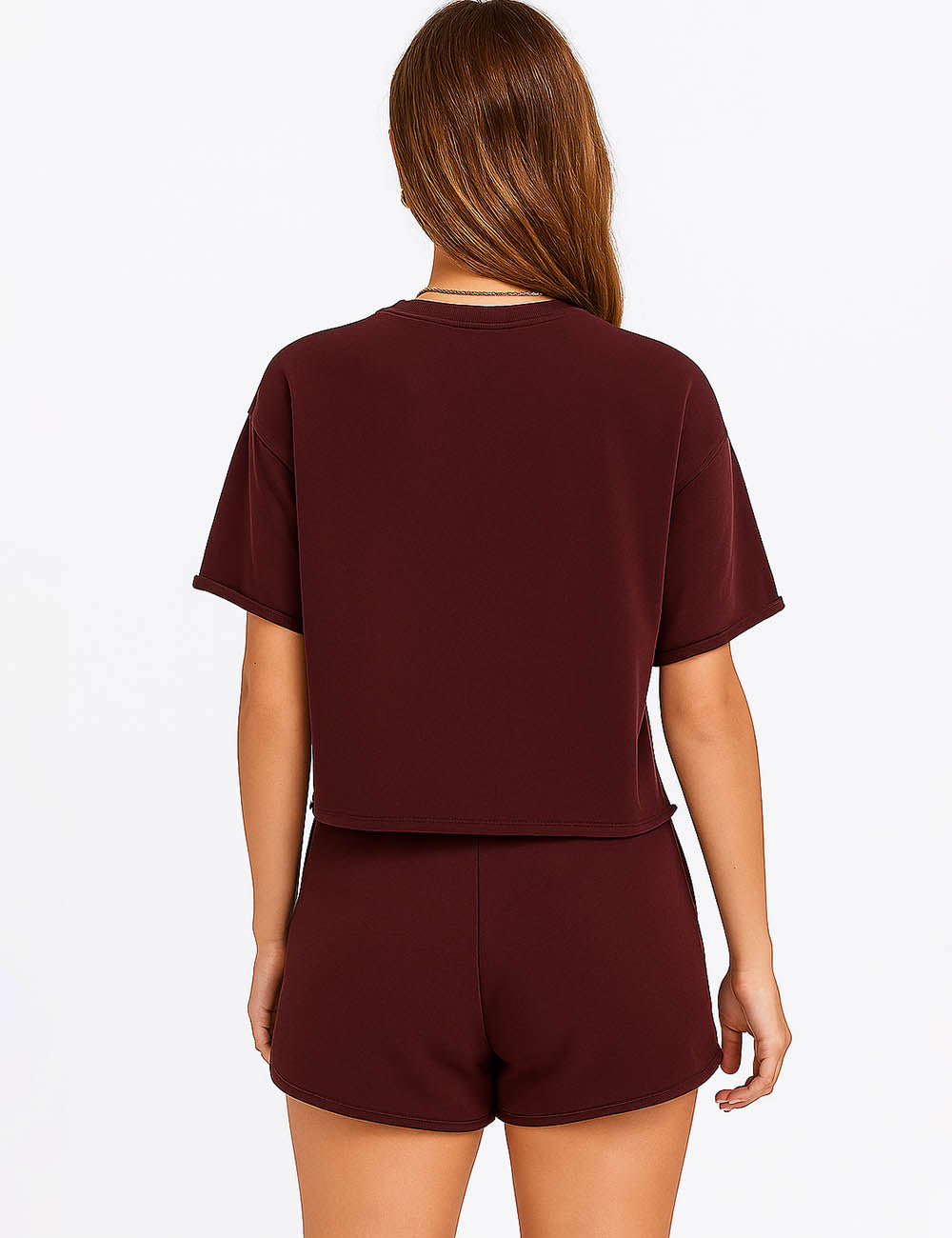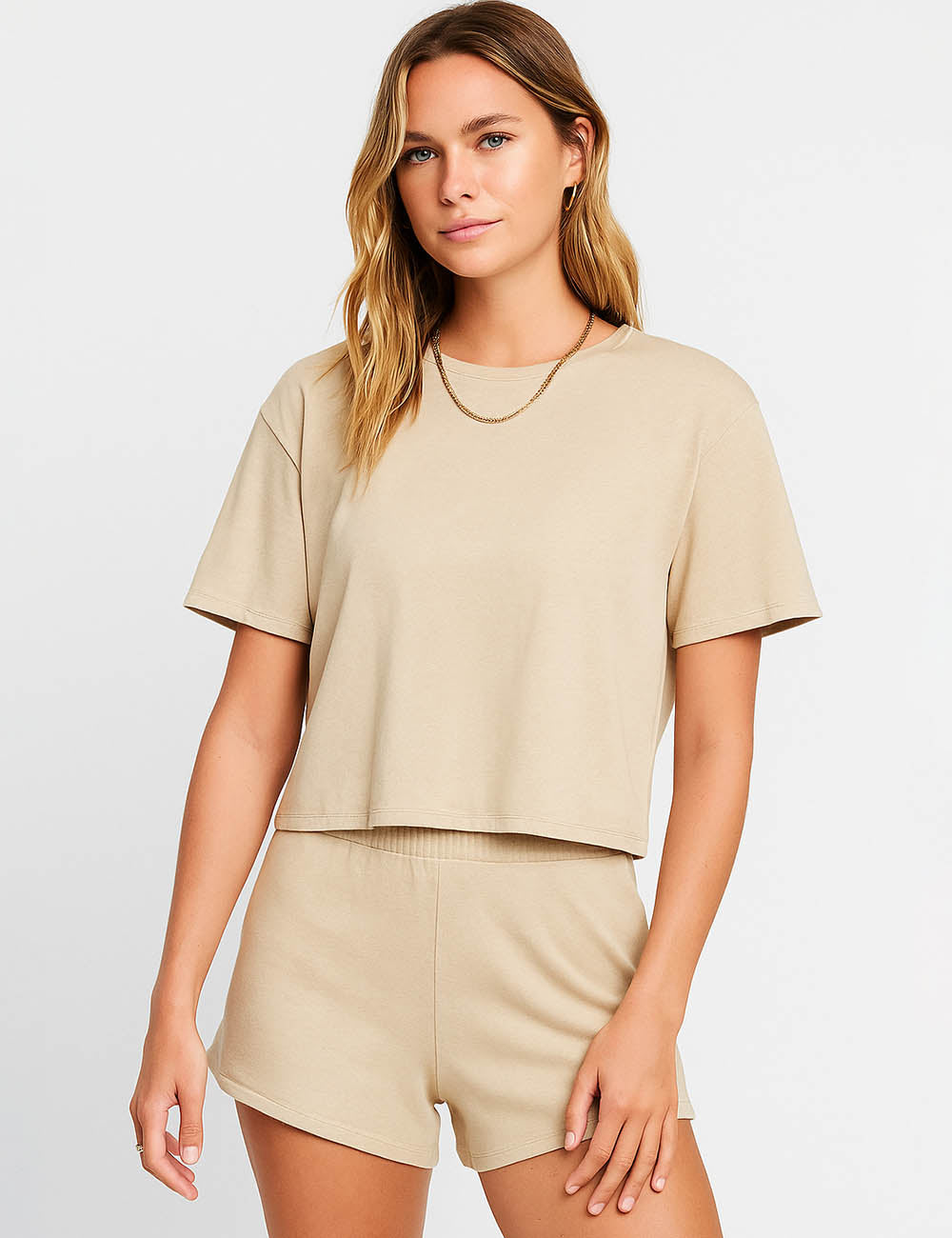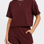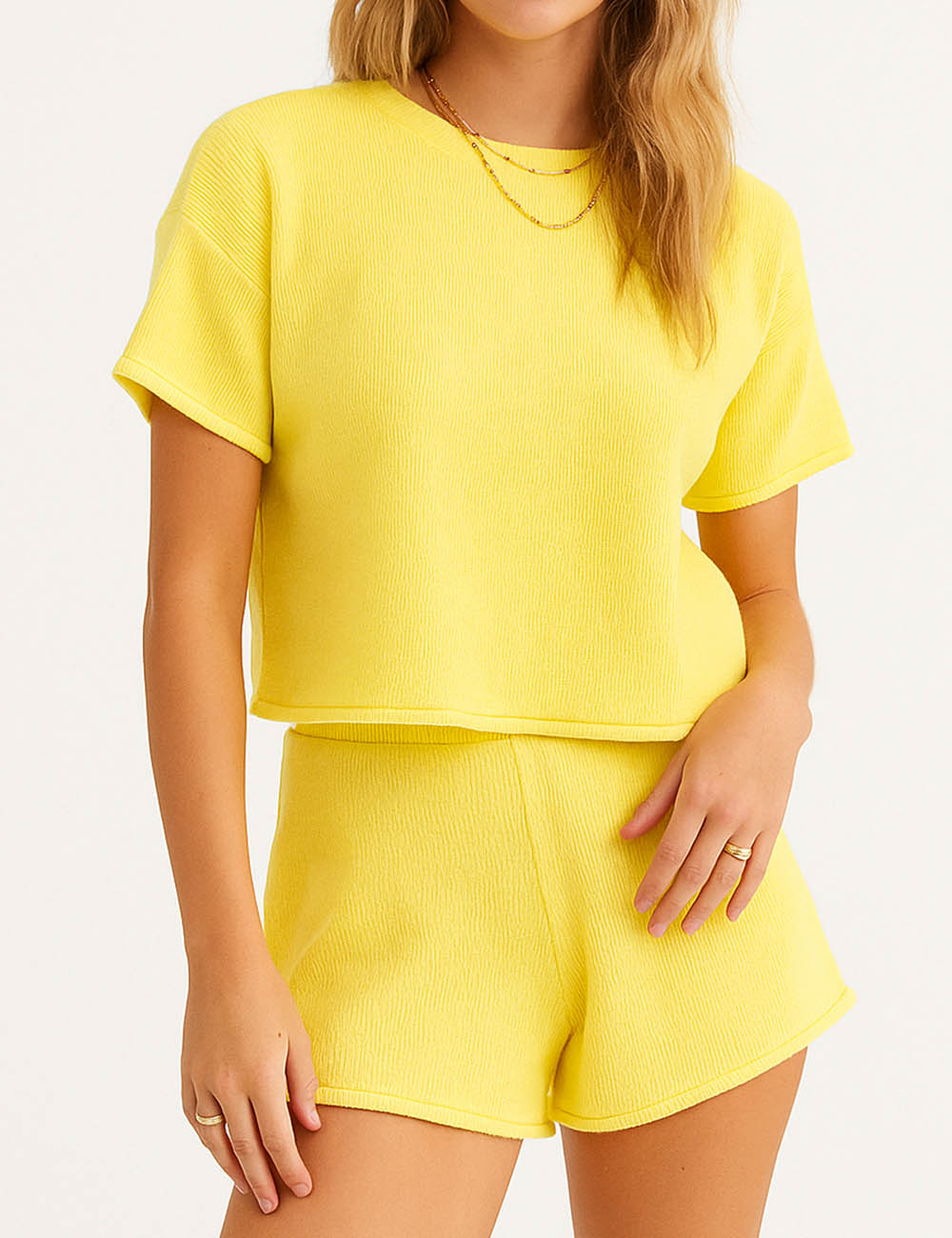 Ladies Solid Color Short Sleeves Knit Top & Shorts Set