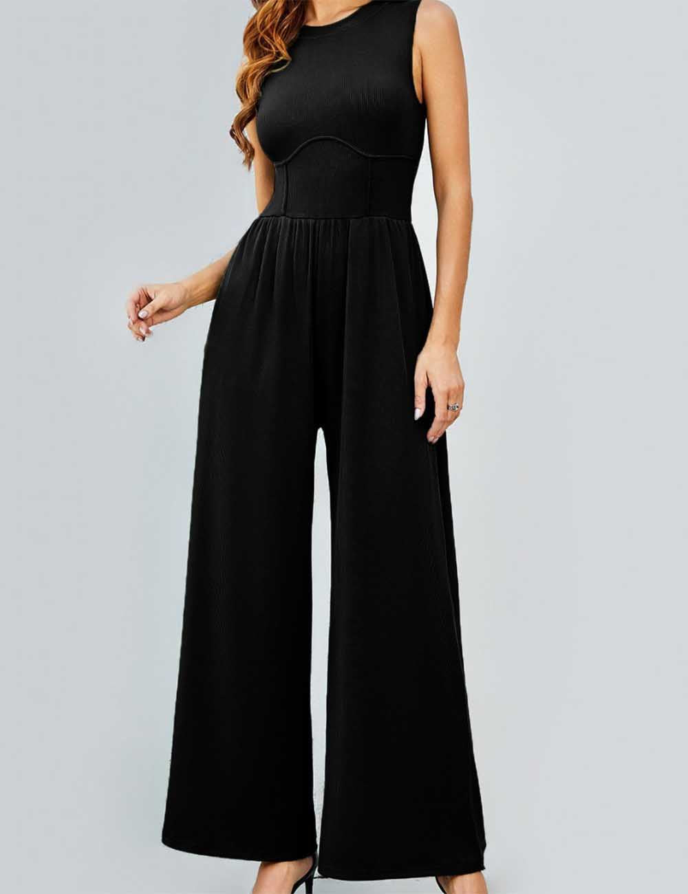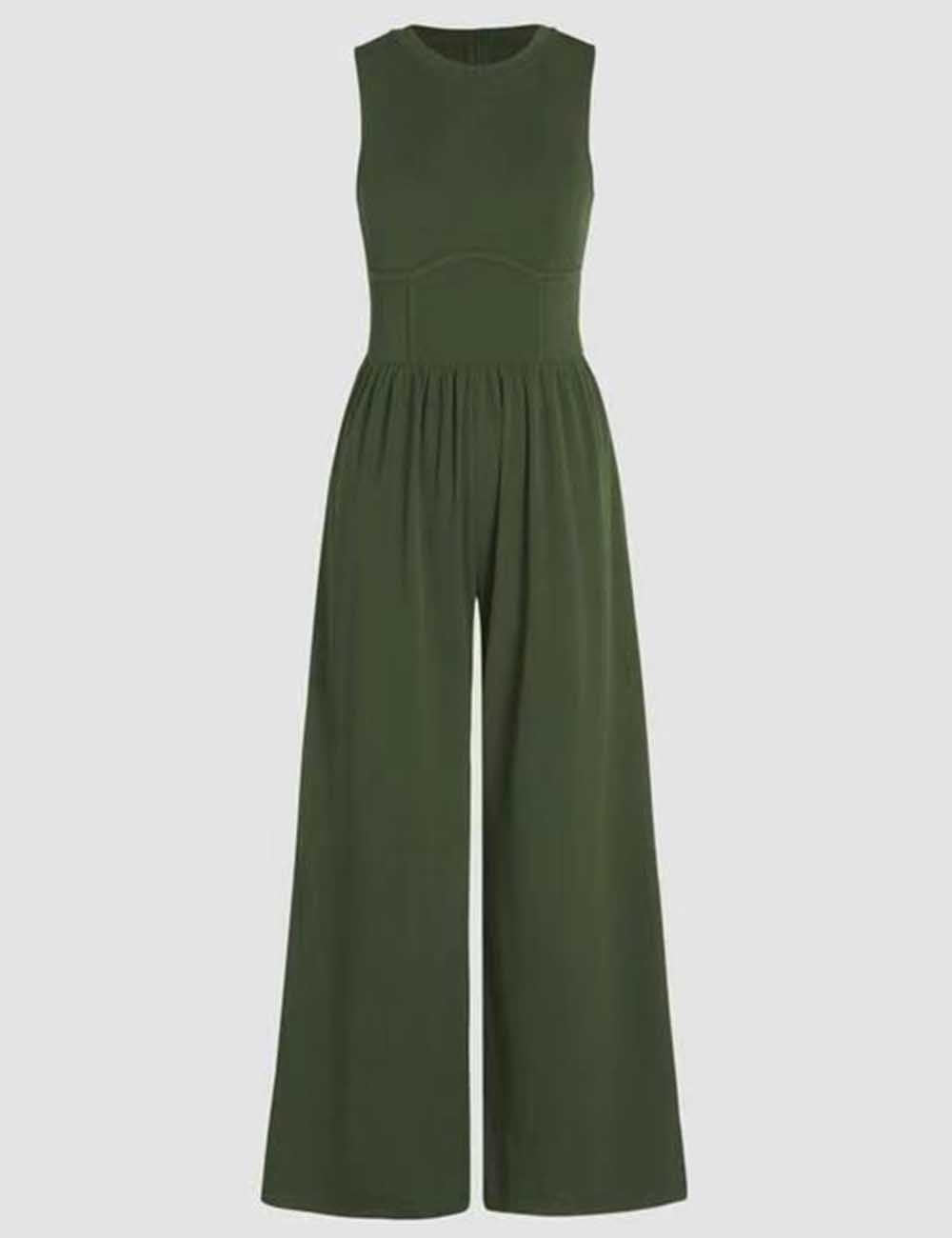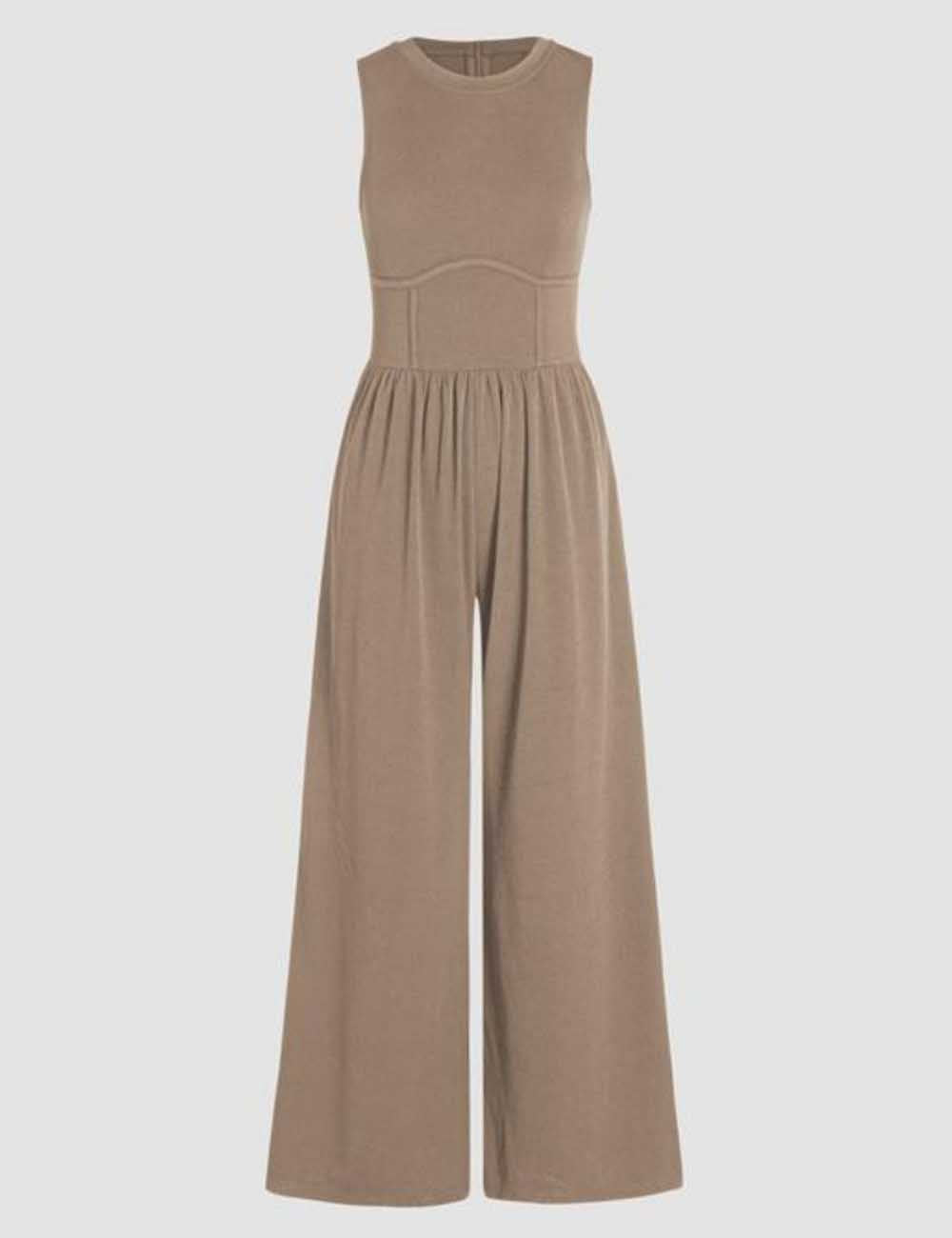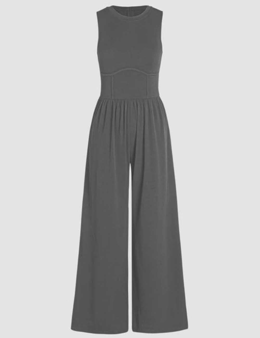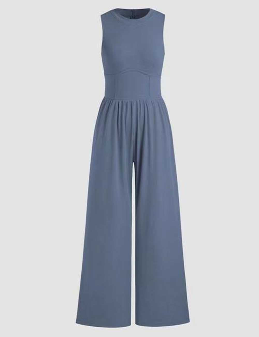 Ladies Solid Color Sleeveless Straight Leg Jumpsuit