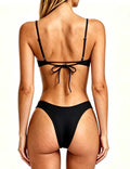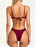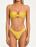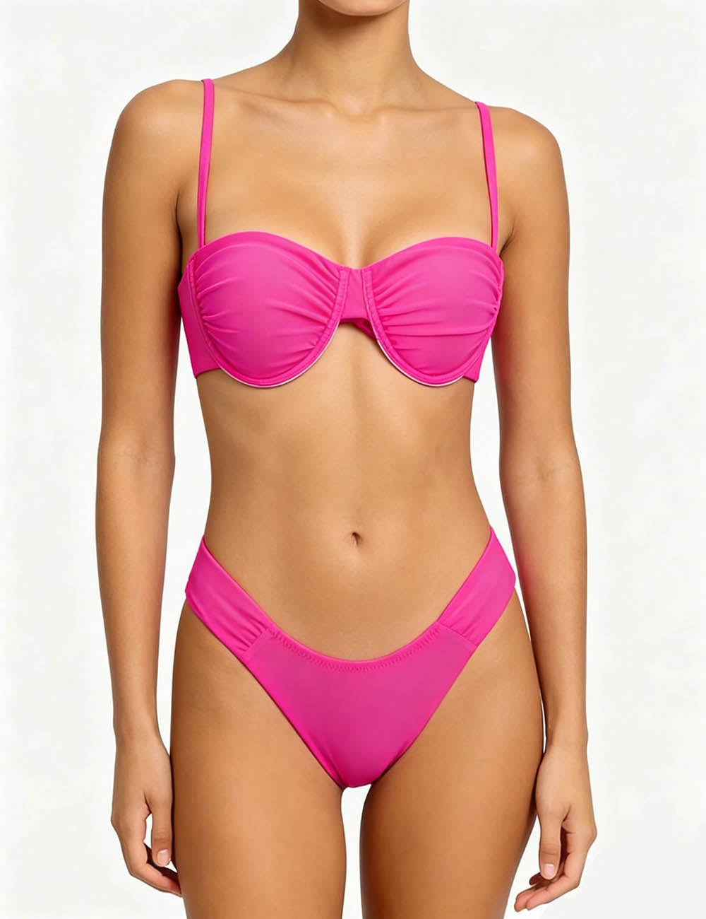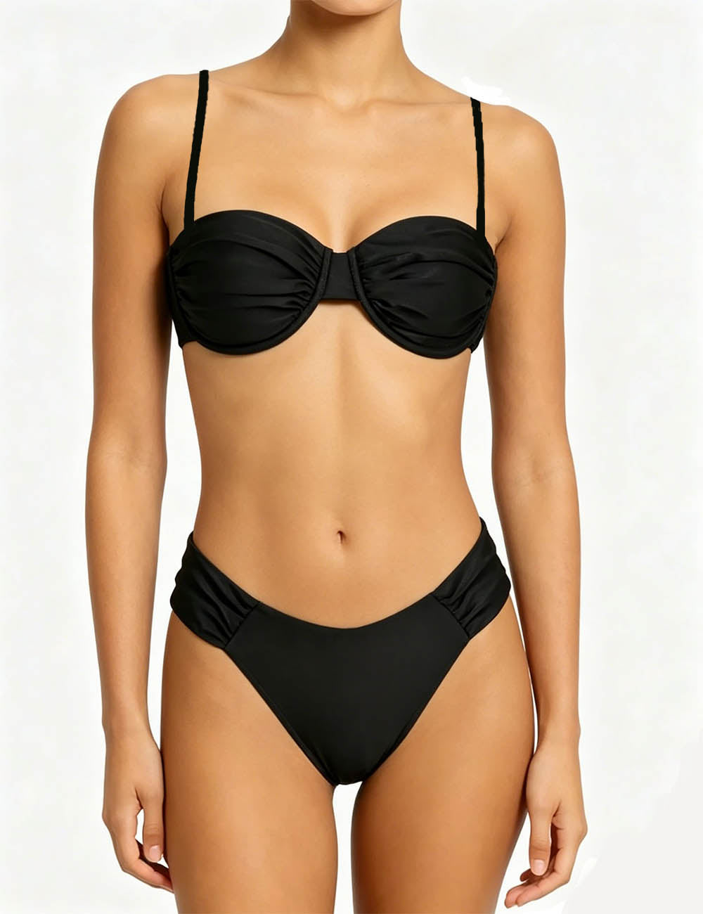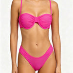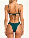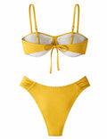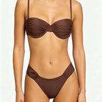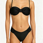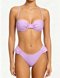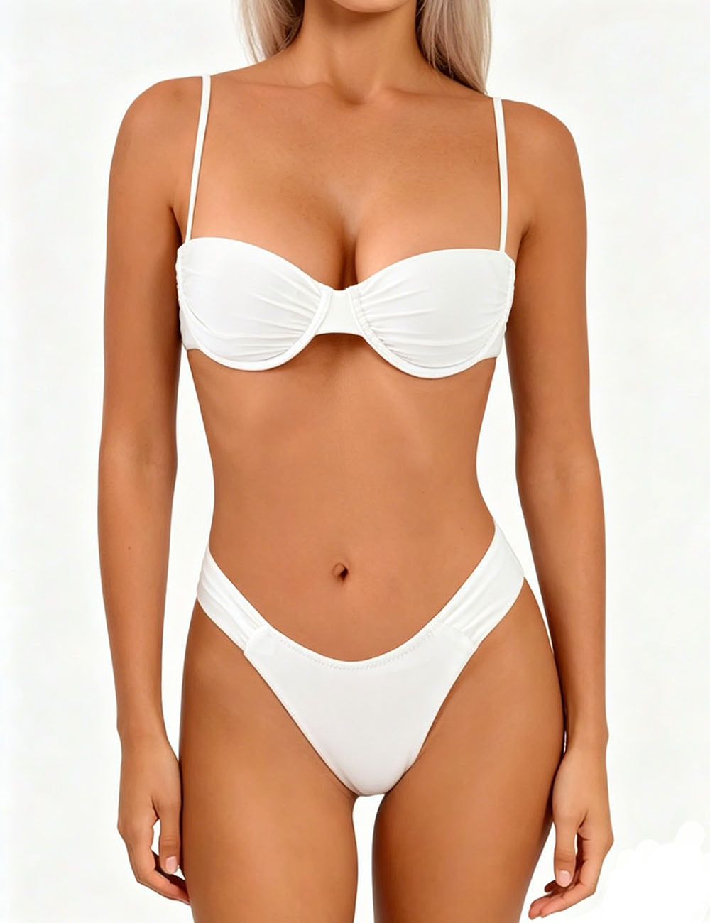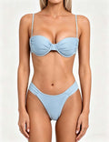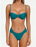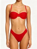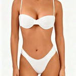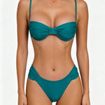 Ladies Solid Color Spaghetti Ruched Underwire Balconette Bikini Set