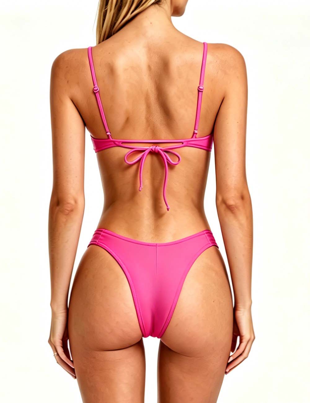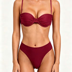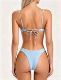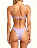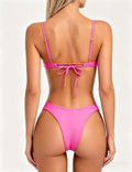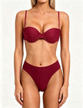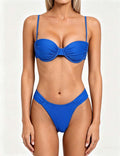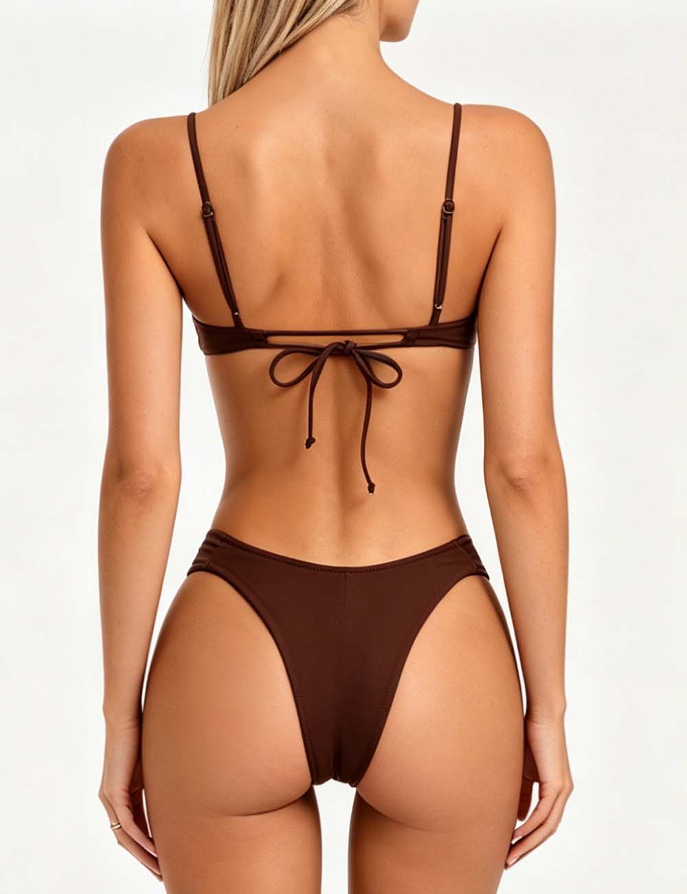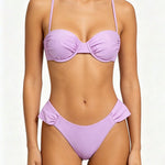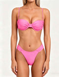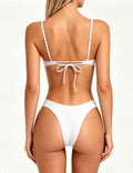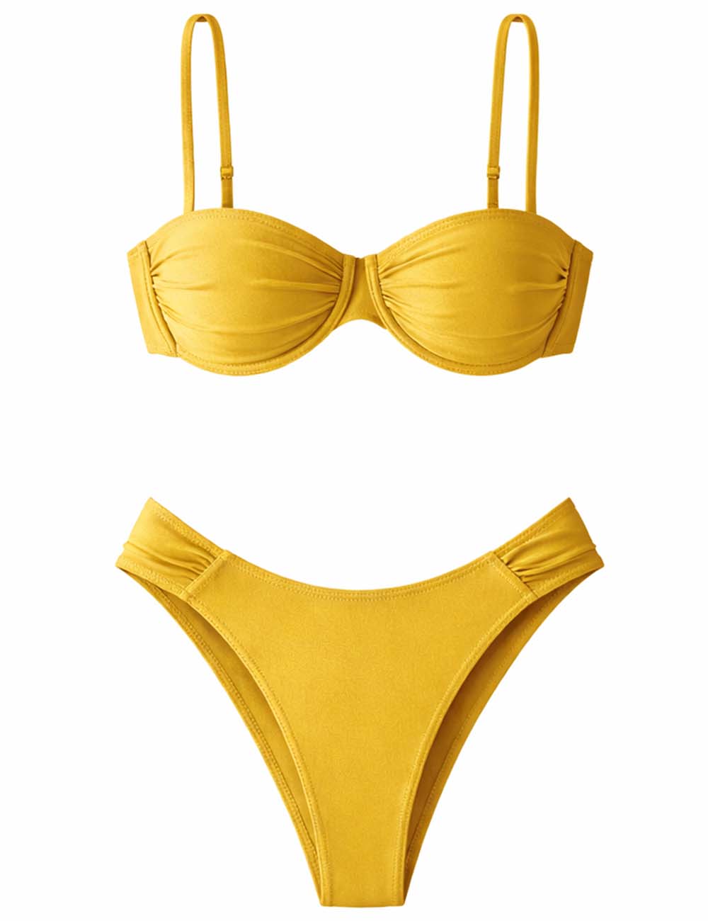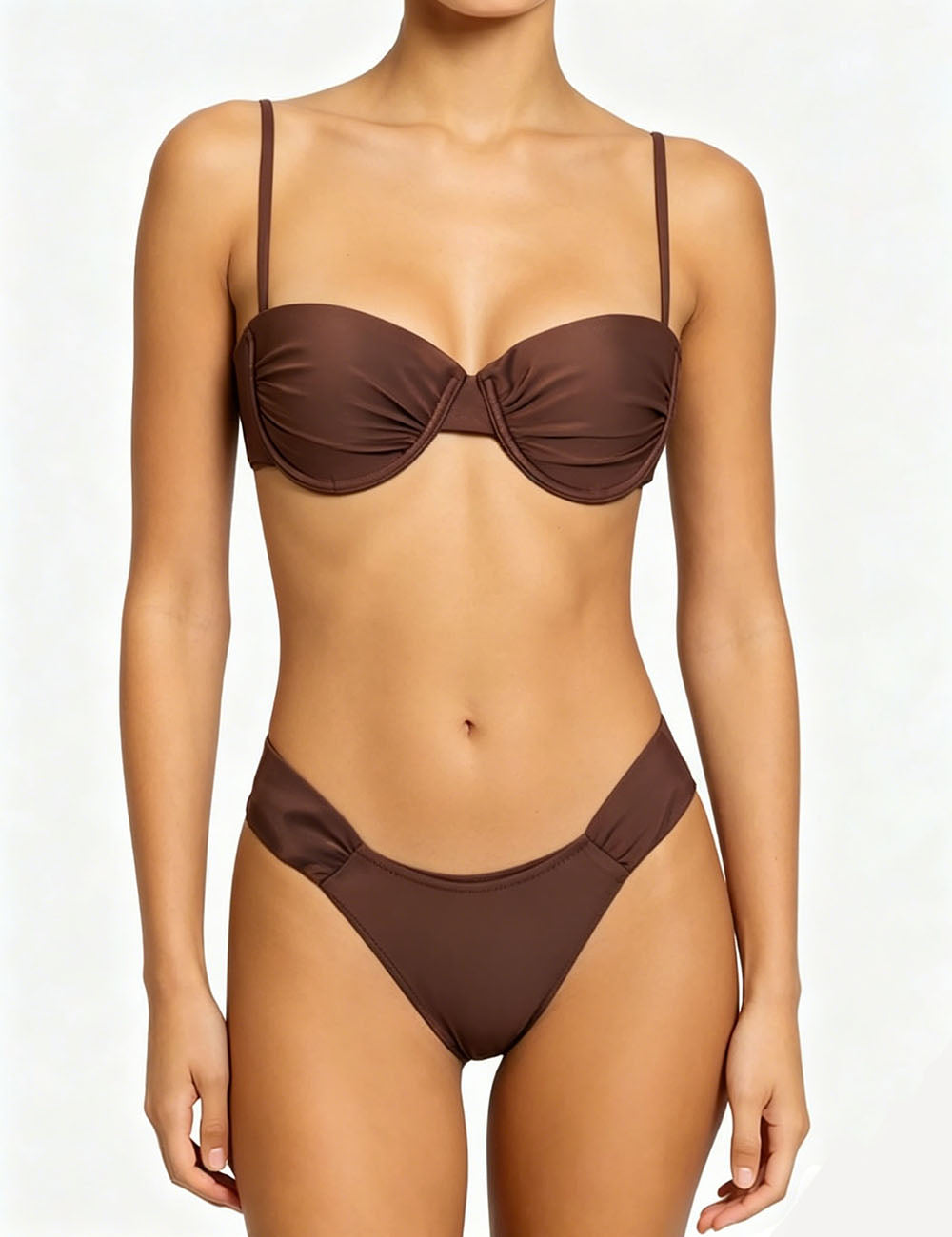 Ladies Solid Color Spaghetti Ruched Underwire Balconette Bikini Set