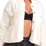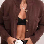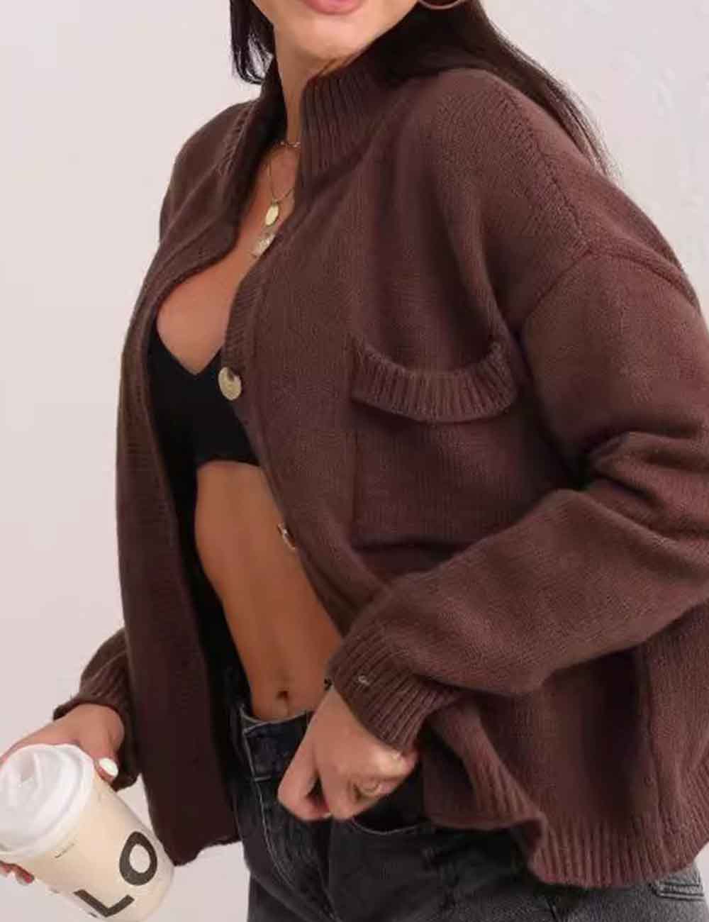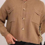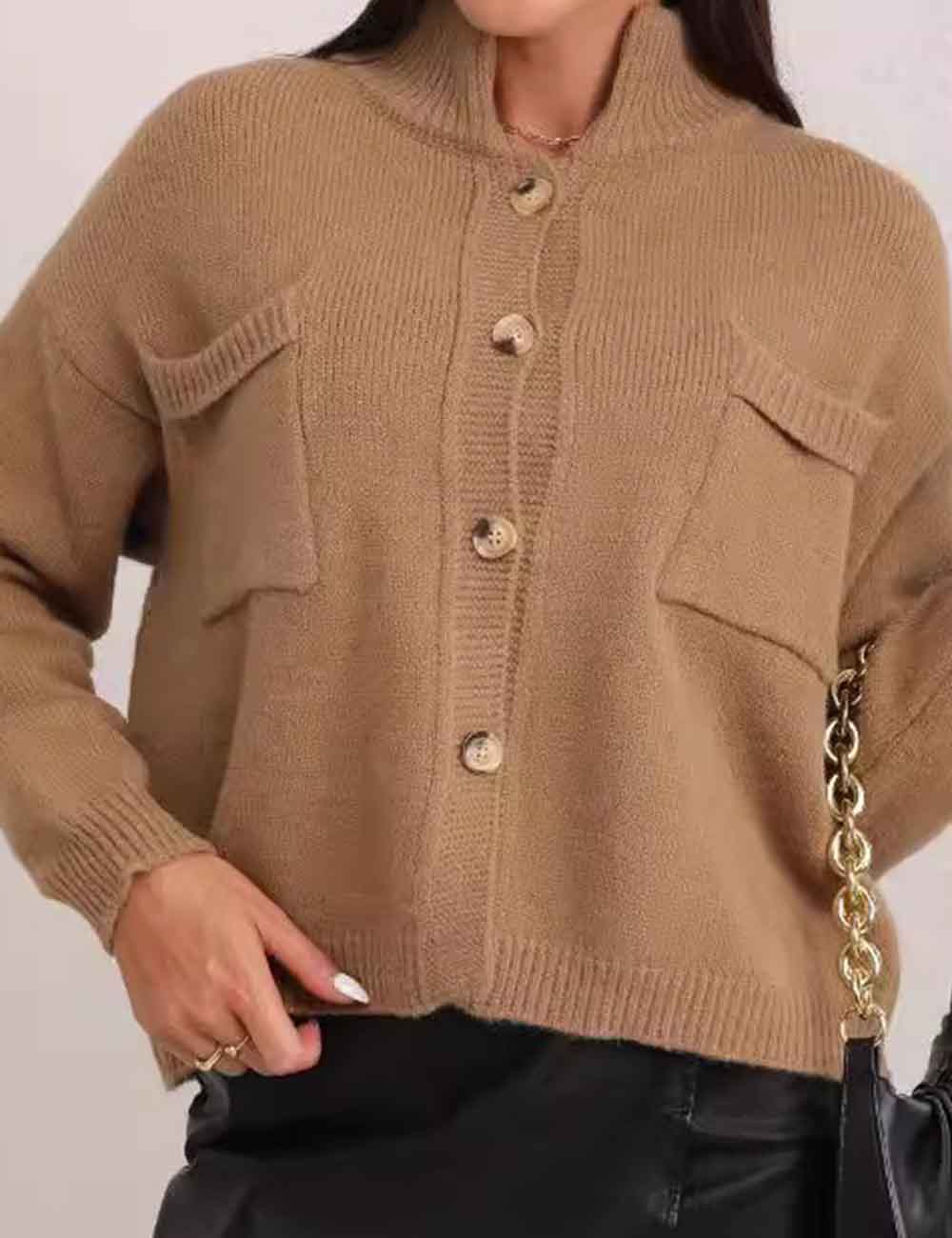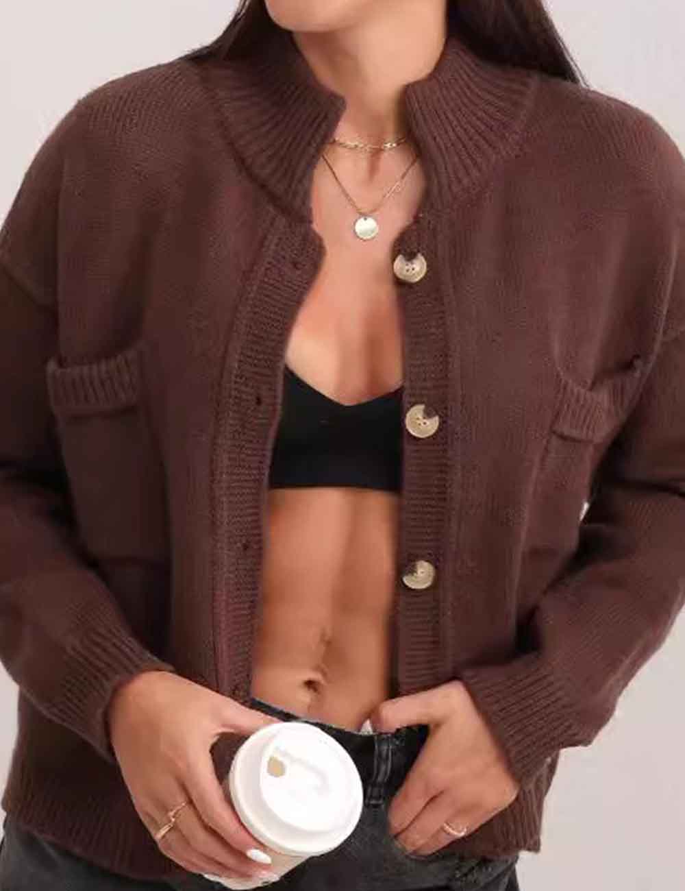 Ladies Solid Color Stand Collar Long Sleeves Knit Cardigan