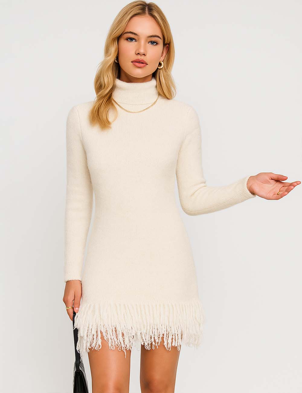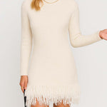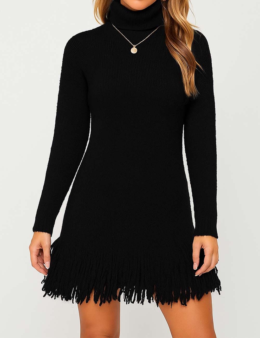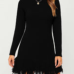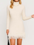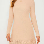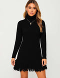 Ladies Solid Color Stand Collar Tassels Knit Mini Dress 9/29