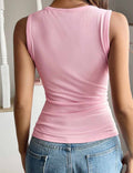 Ladies Solid Color Strap Shoulder Sleeveless Button Tank Top