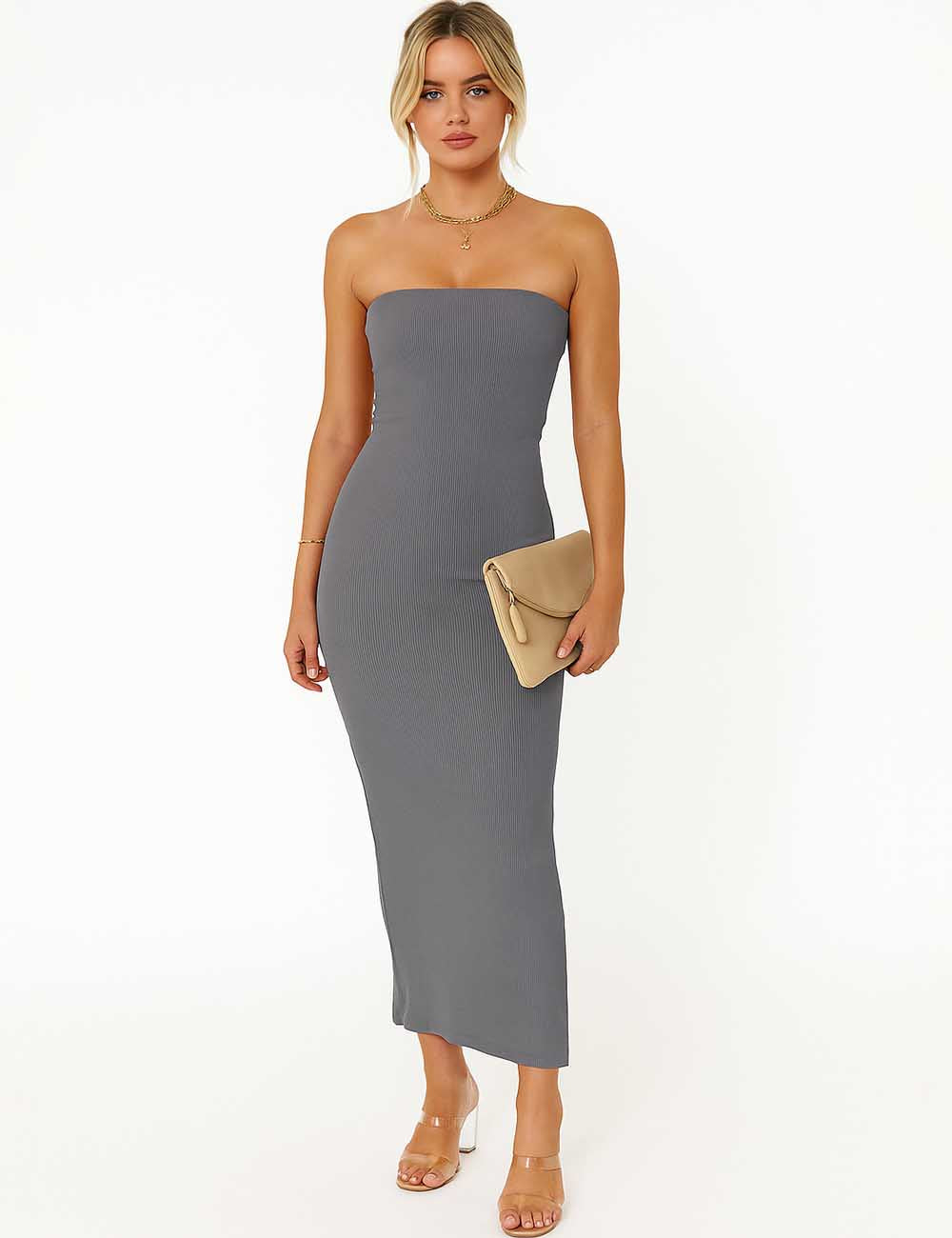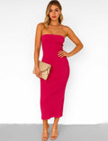 Ladies Solid Color Stretch Tube Side Split Bodycon Maxi Dress