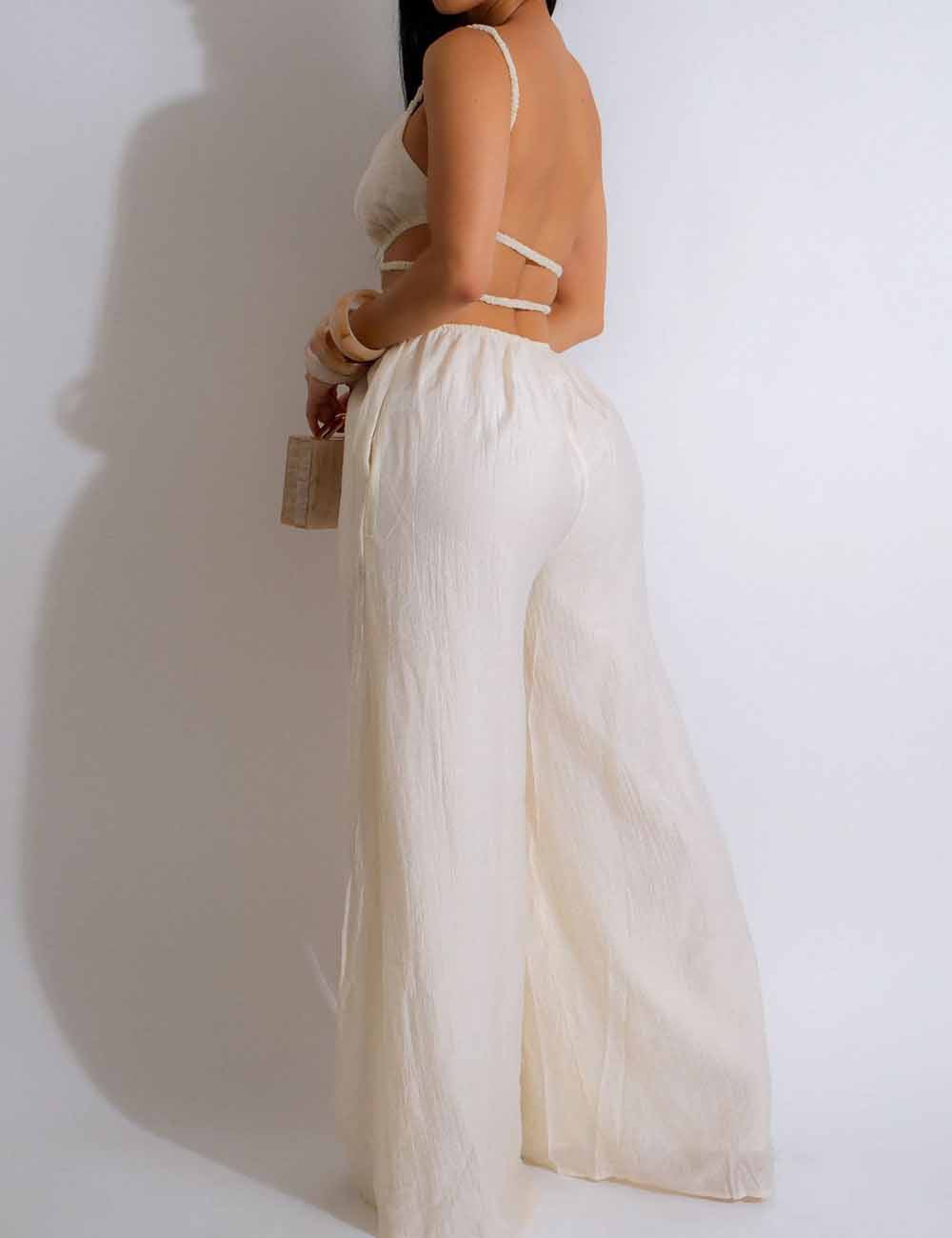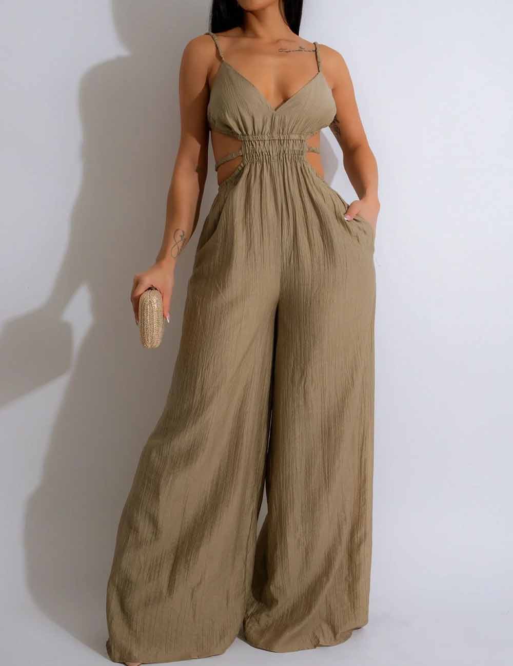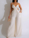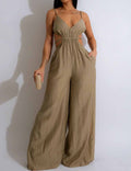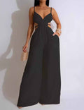 Ladies Solid Color Stripe Shoulder Backless Jumpsuit
