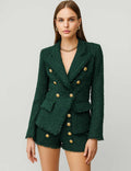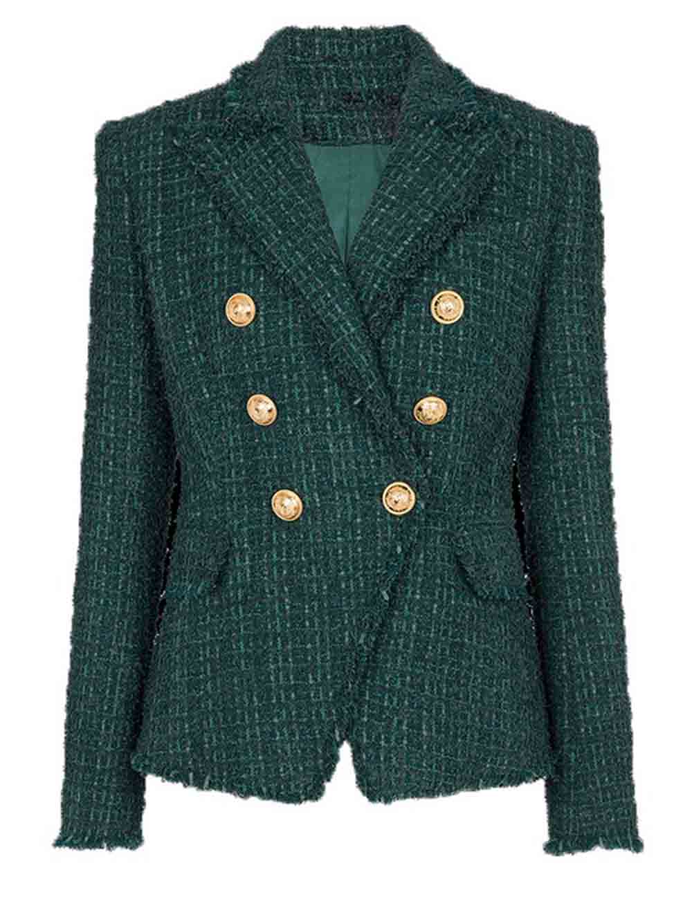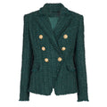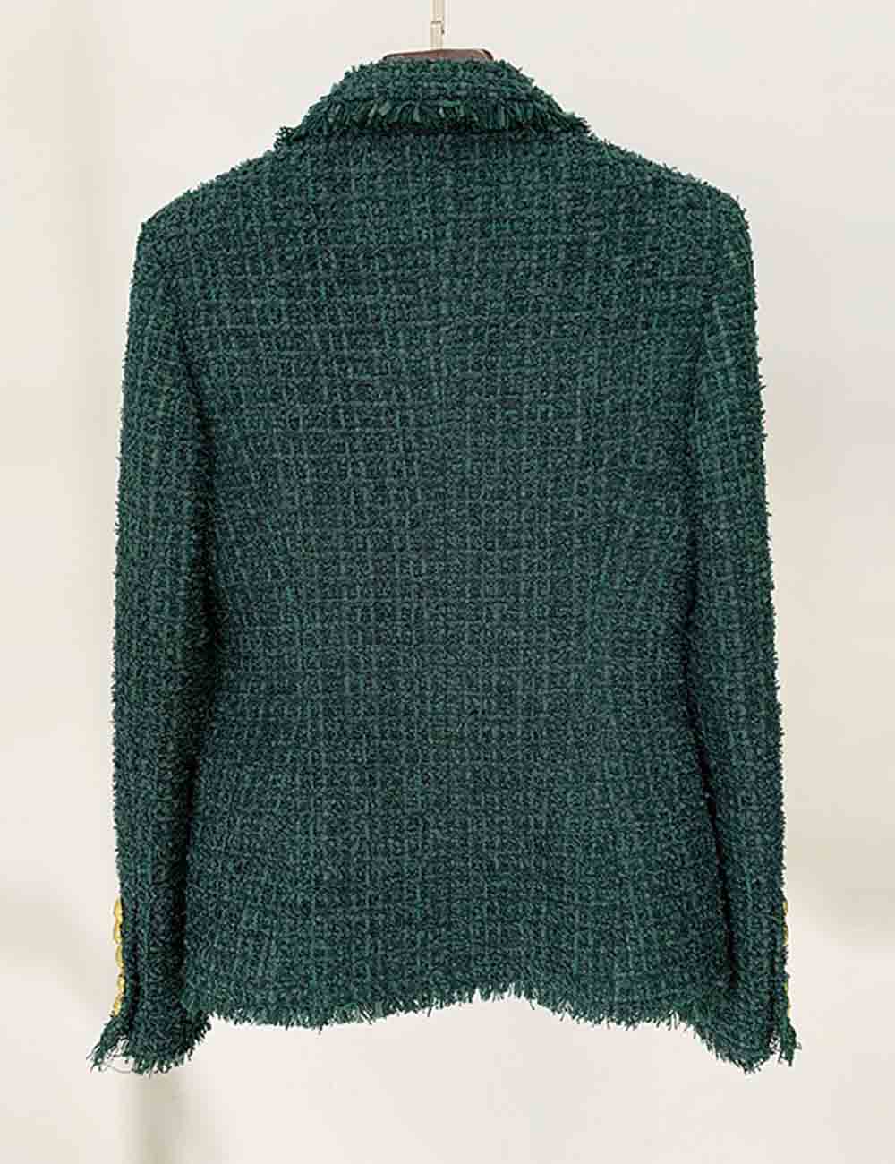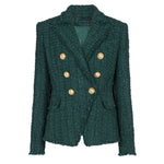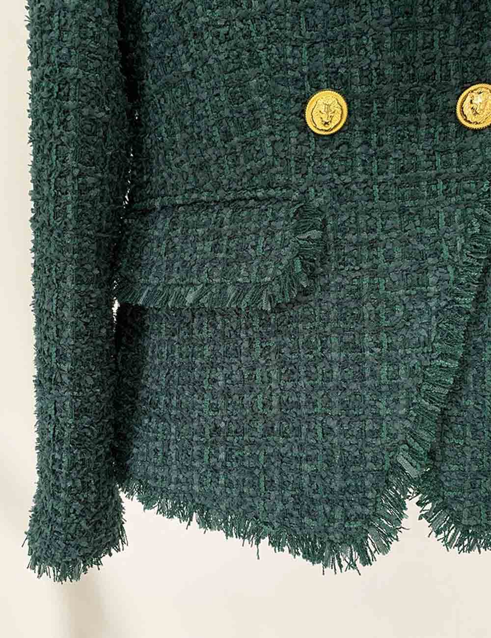 Ladies Solid Color Tassels Double Breast Tweed Blazer