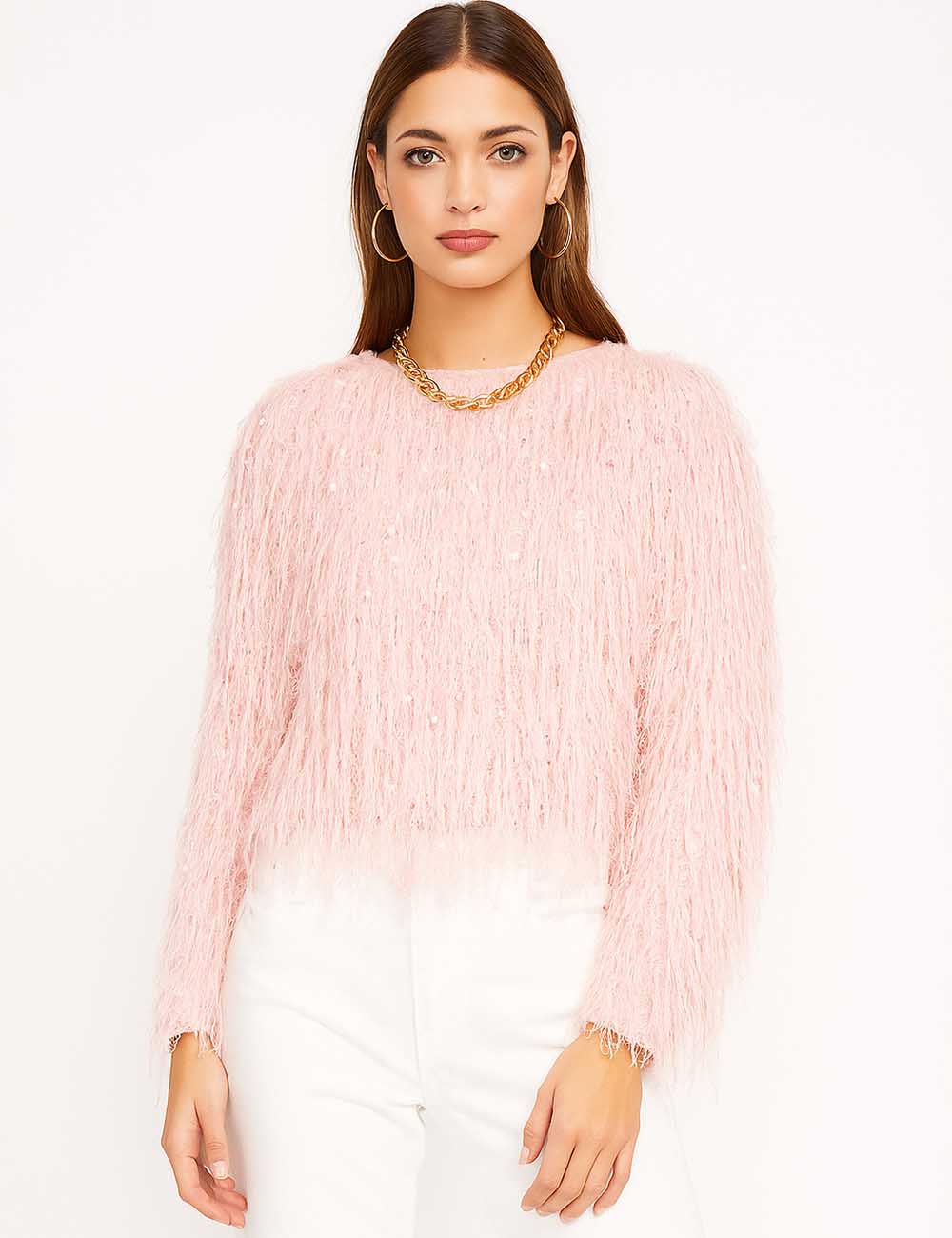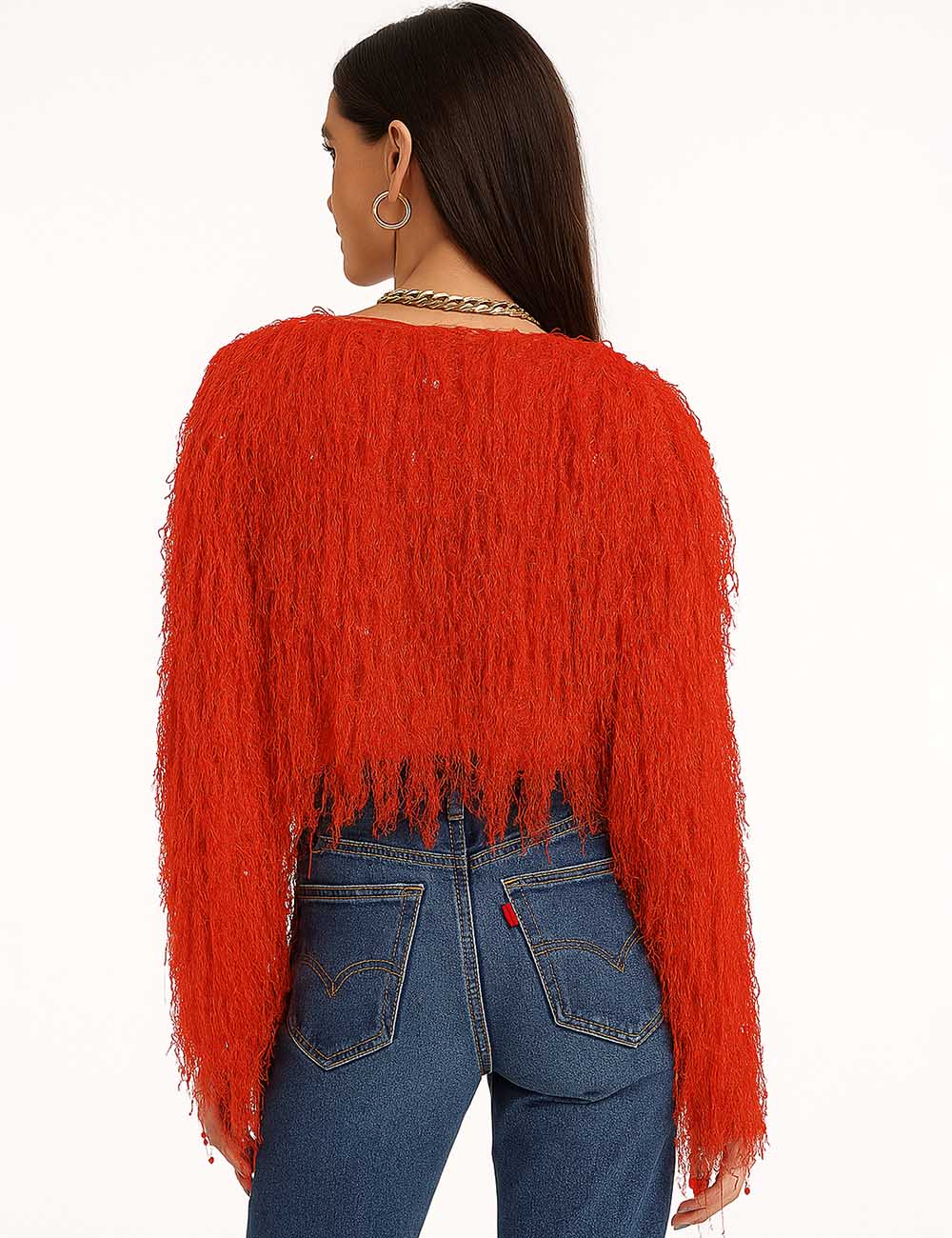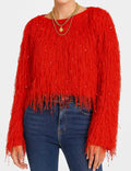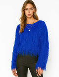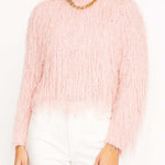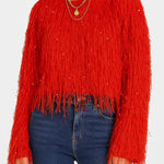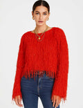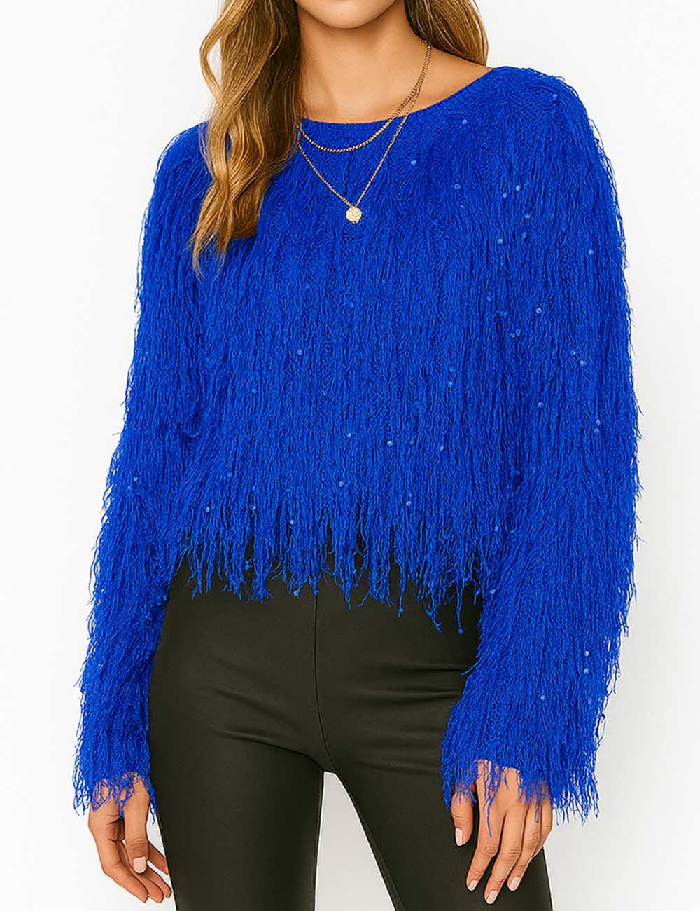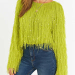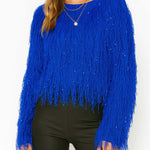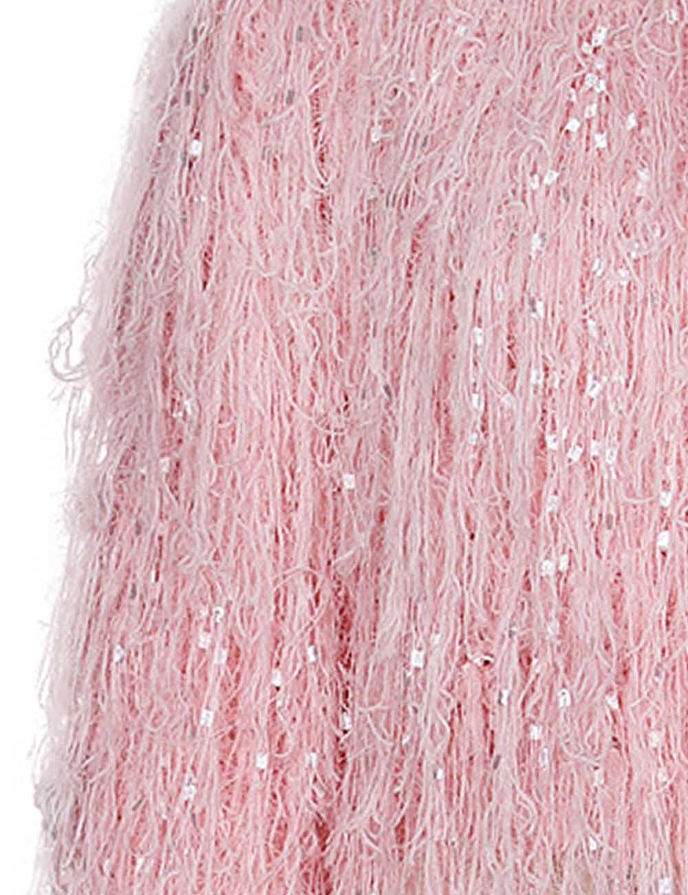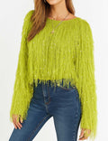 Ladies Solid Color Tassels Long Sleeves Sweater Top