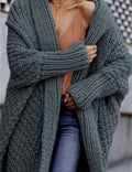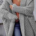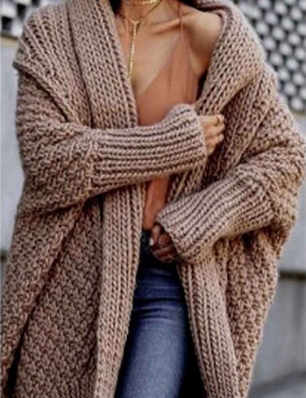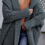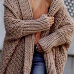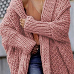 Ladies Solid Color Thick Front Placket Long Sleeves Chunky Cardigan