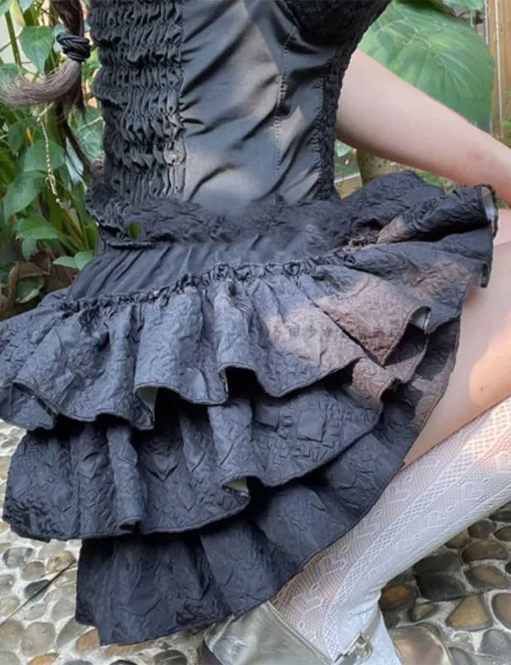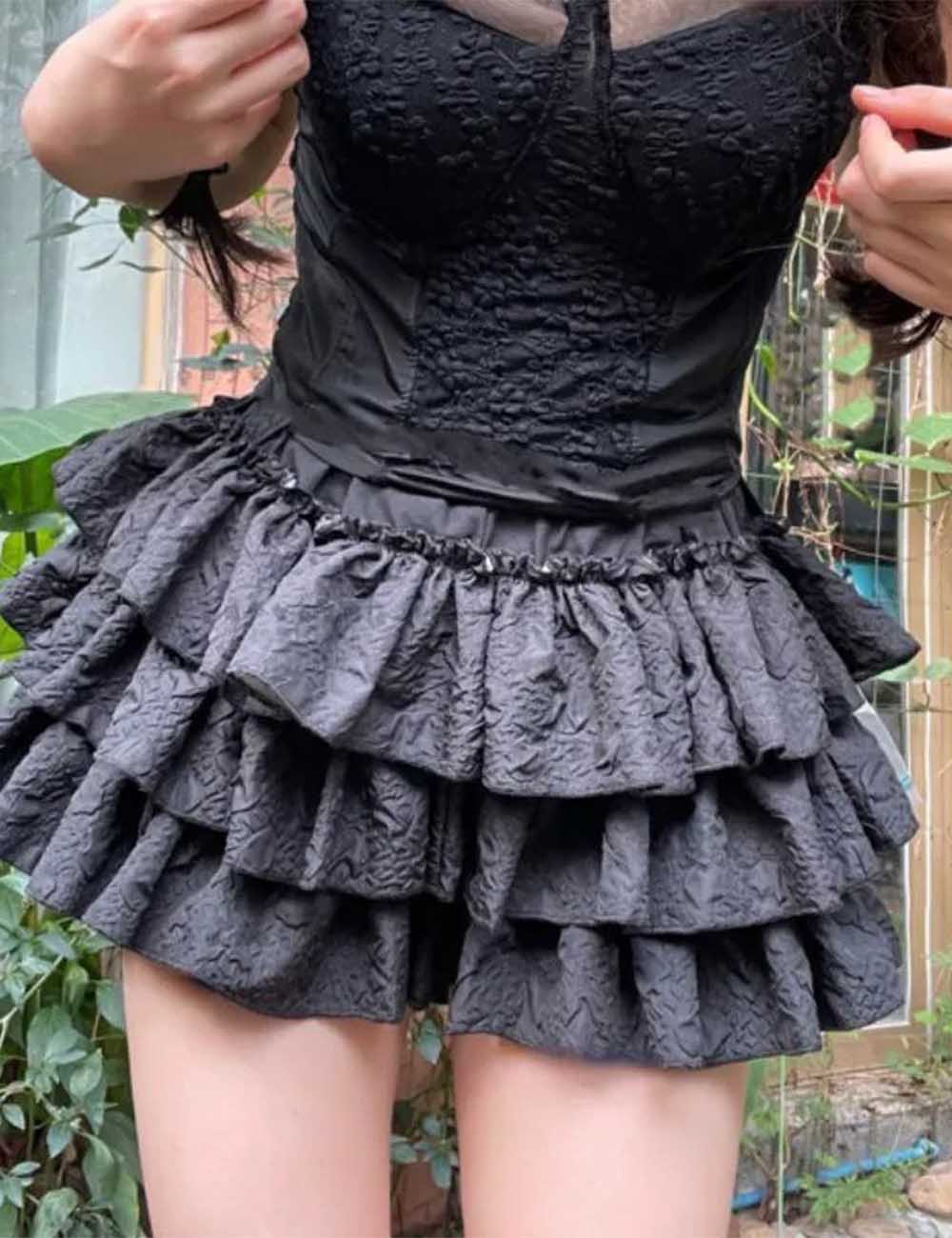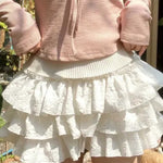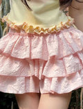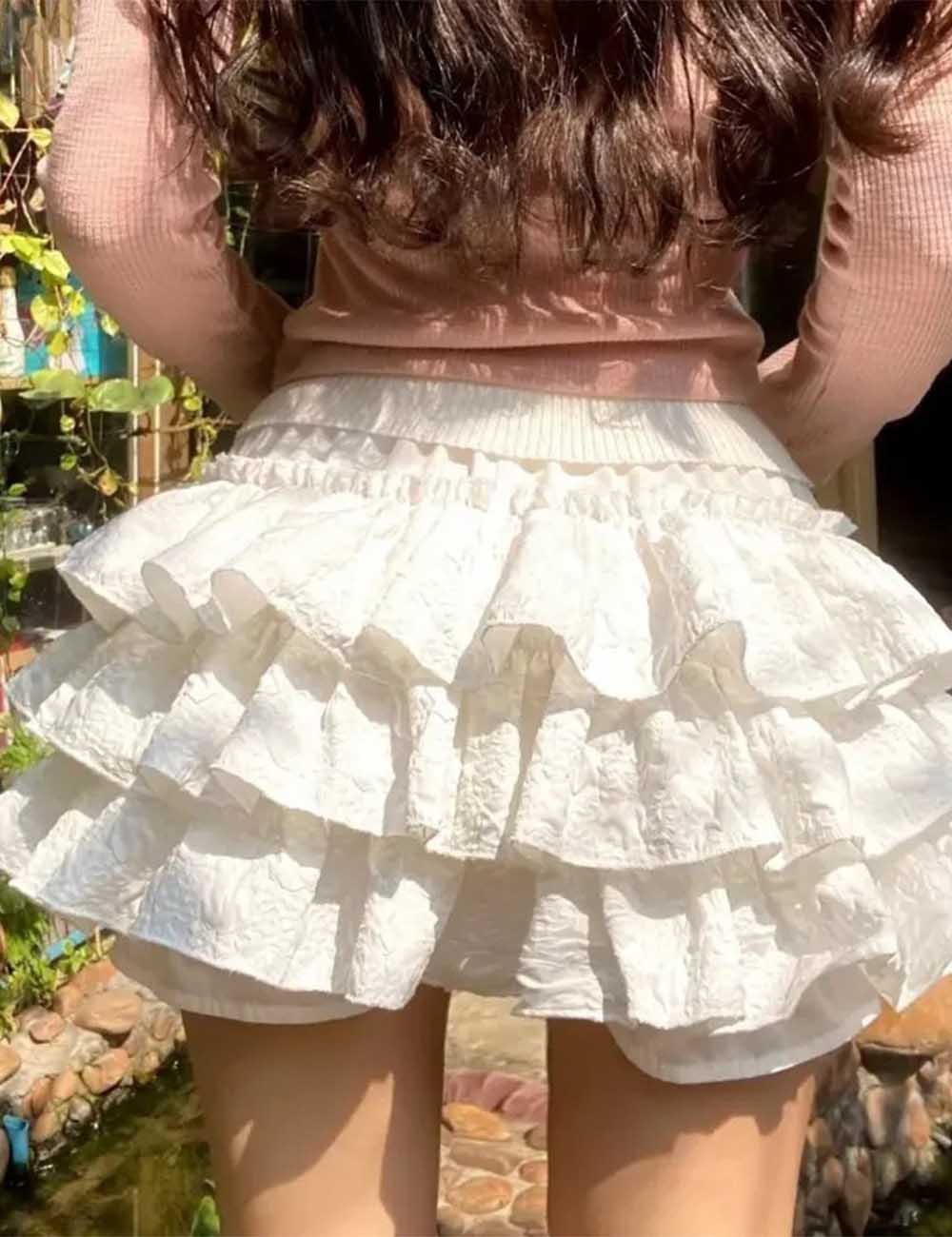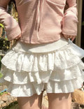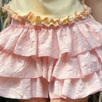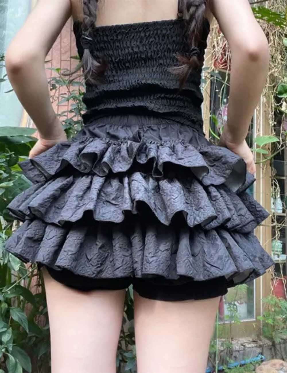 Ladies Solid Color Tiered Ruffle Puff Skorts