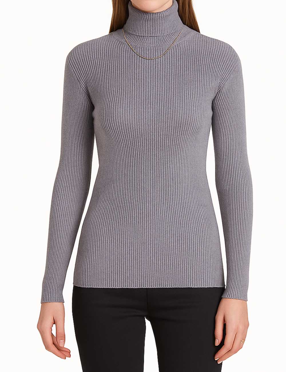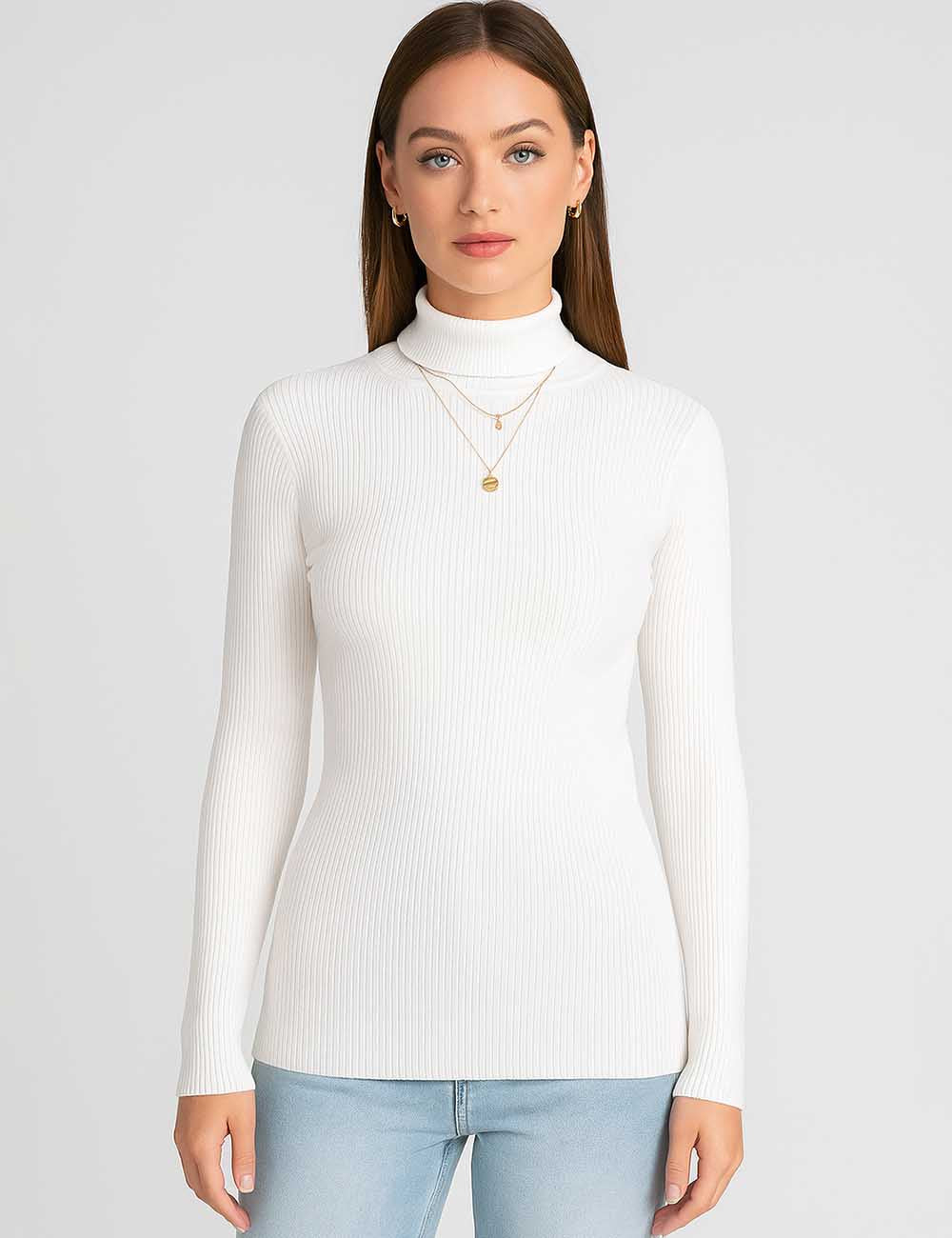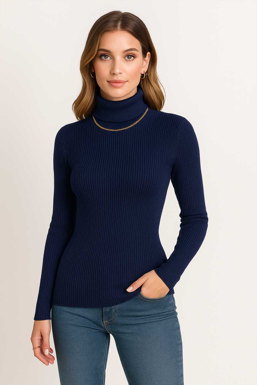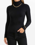 Ladies Solid Color Turtleneck Long Sleeves Knit Layering Top