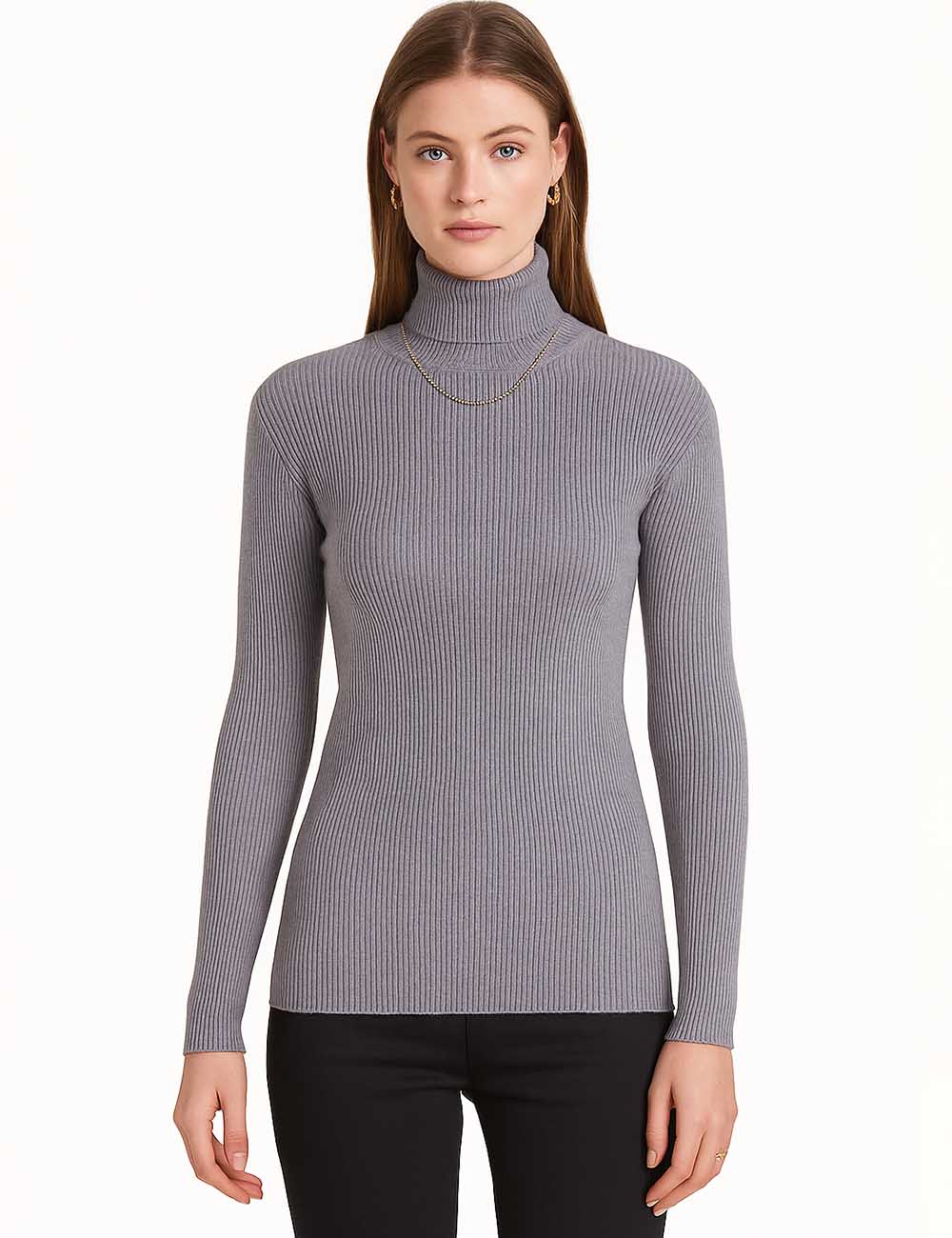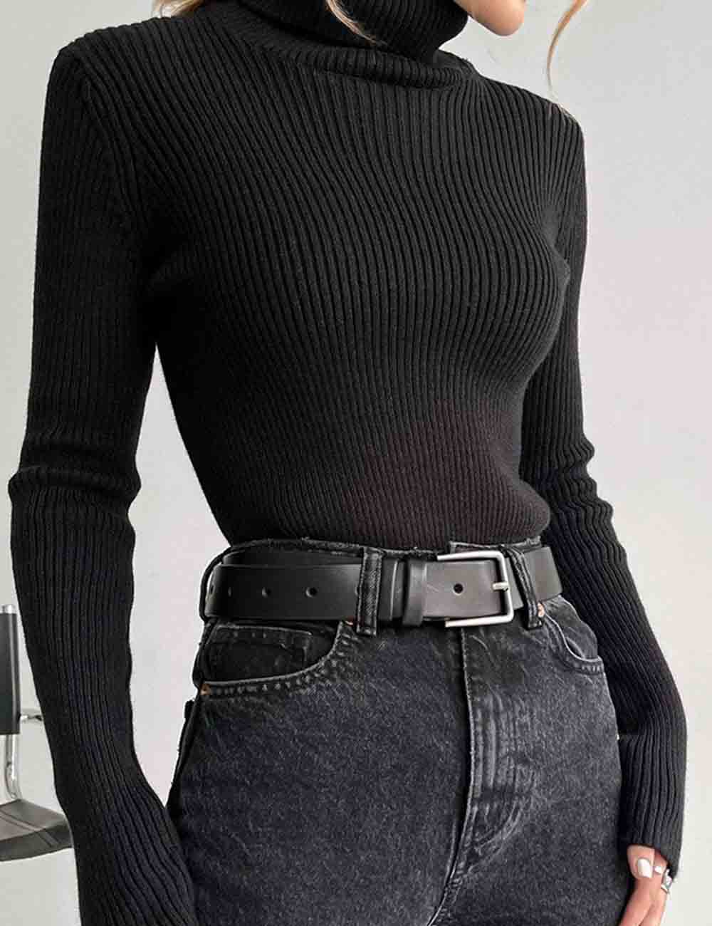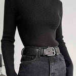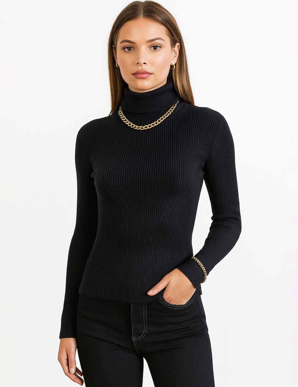 Ladies Solid Color Turtleneck Long Sleeves Knit Layering Top