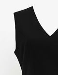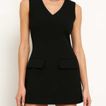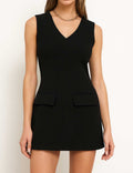 Ladies Solid Color V-Neck Sleeveless Flag Pocket Mini Dress