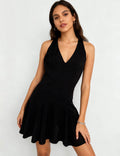 Ladies V-Neck Sleeveless Flared Hem Mini Dress