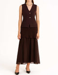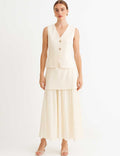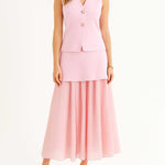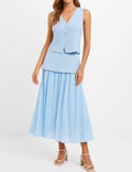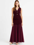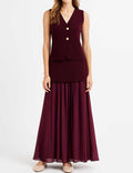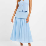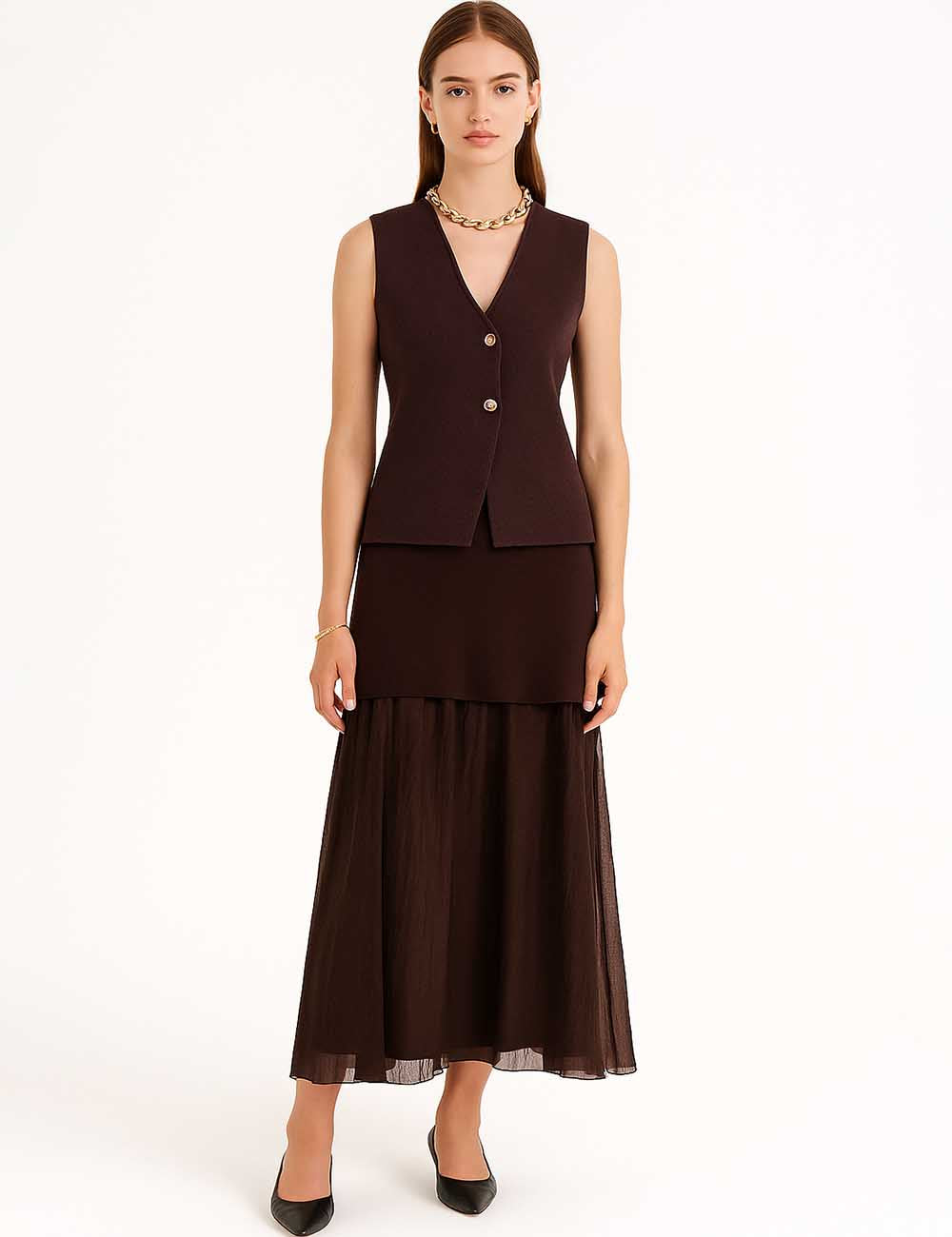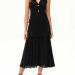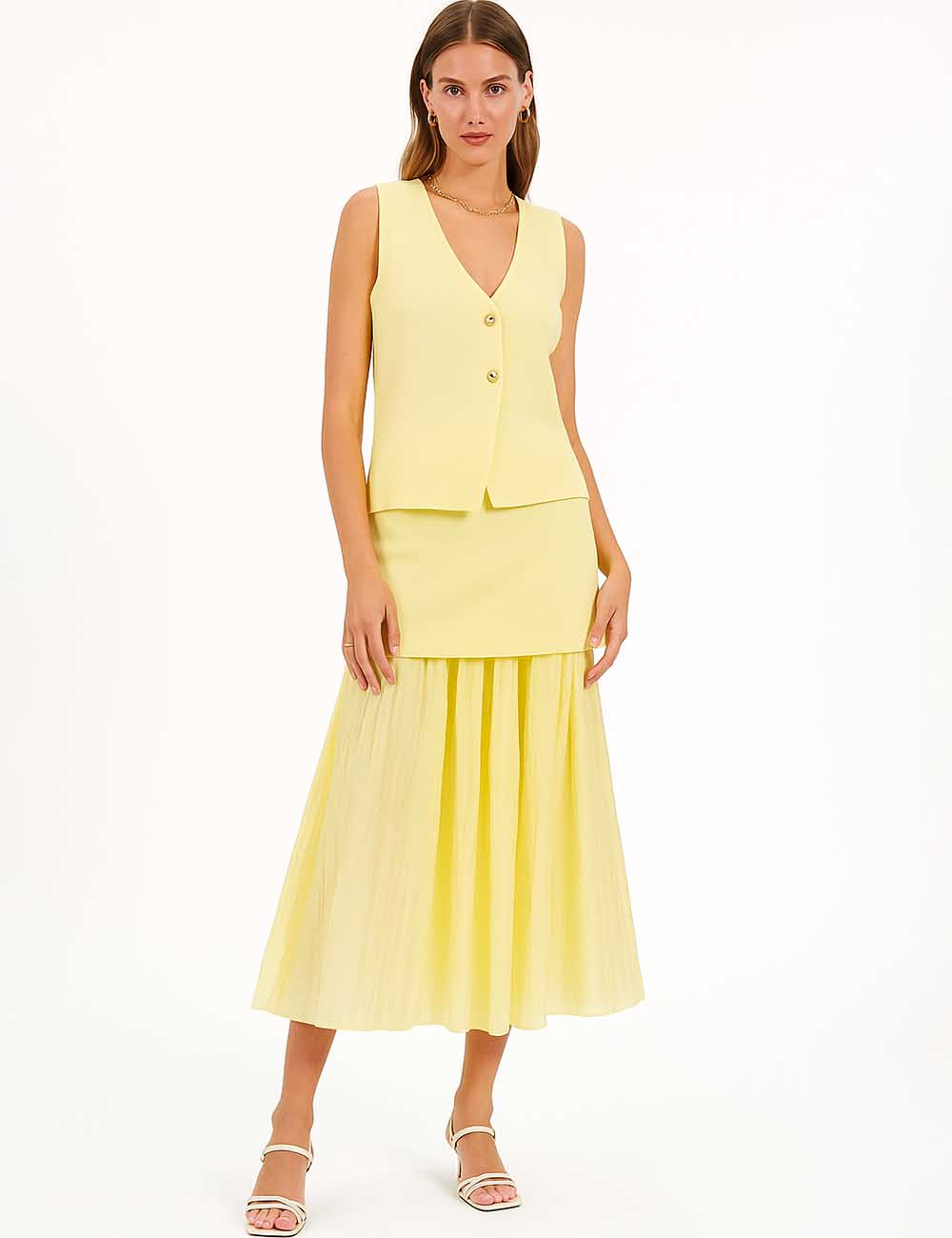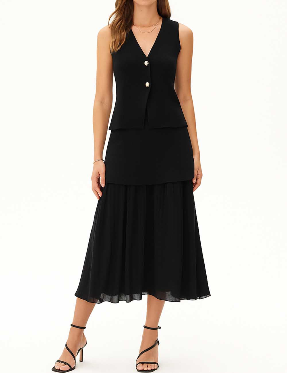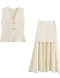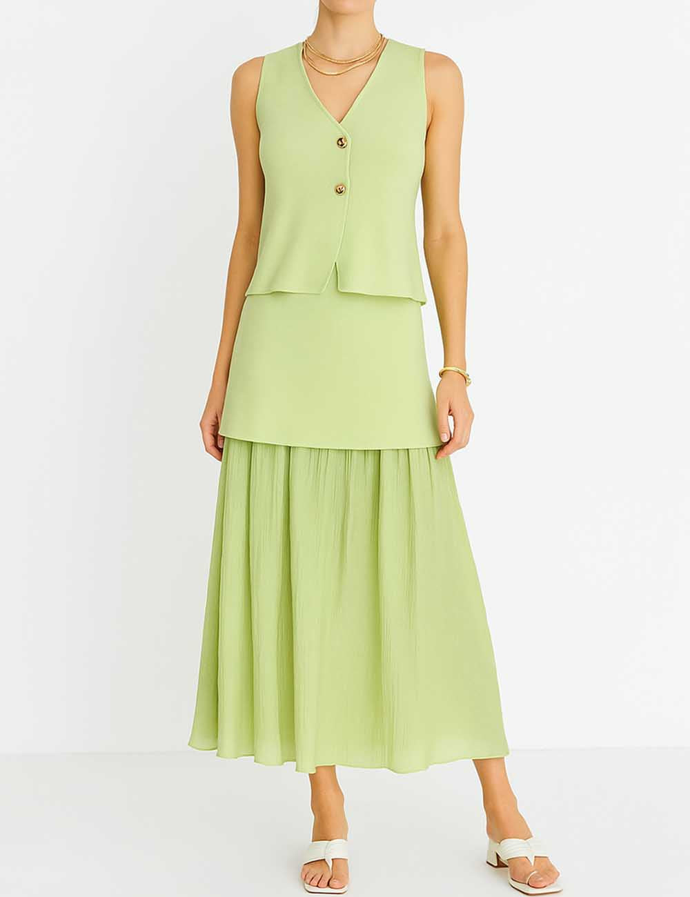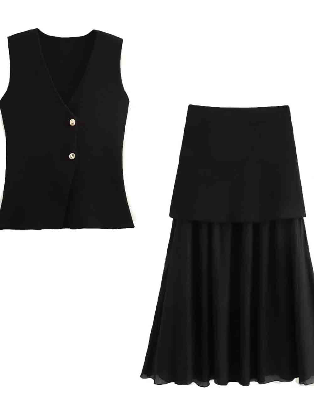 Ladies Solid Color V-Neck Sleeveless Knit Top & Skirt Set