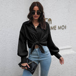 Ladies Solid Long Sleeves Turn-Down Collar Top 2017YT