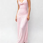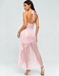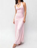 Ladies Sparkle Rhinestone Halter Cowl Neck Maxi Dress