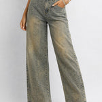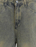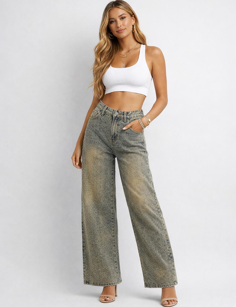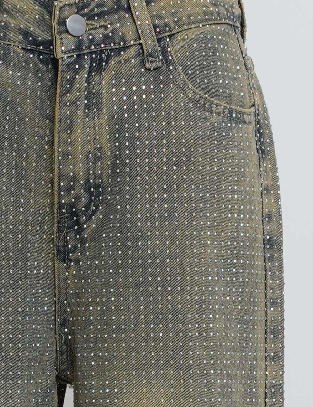 Ladies Sparkle Rhinestone Straight Wide Leg Denim Pants