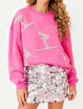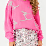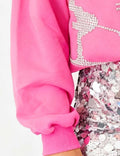 Ladies Sparkly Rhinestone Round Neck Long Sleeves Sweatshirt