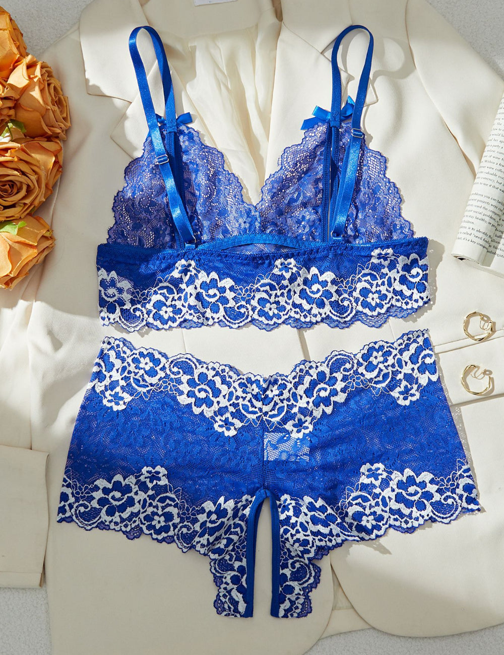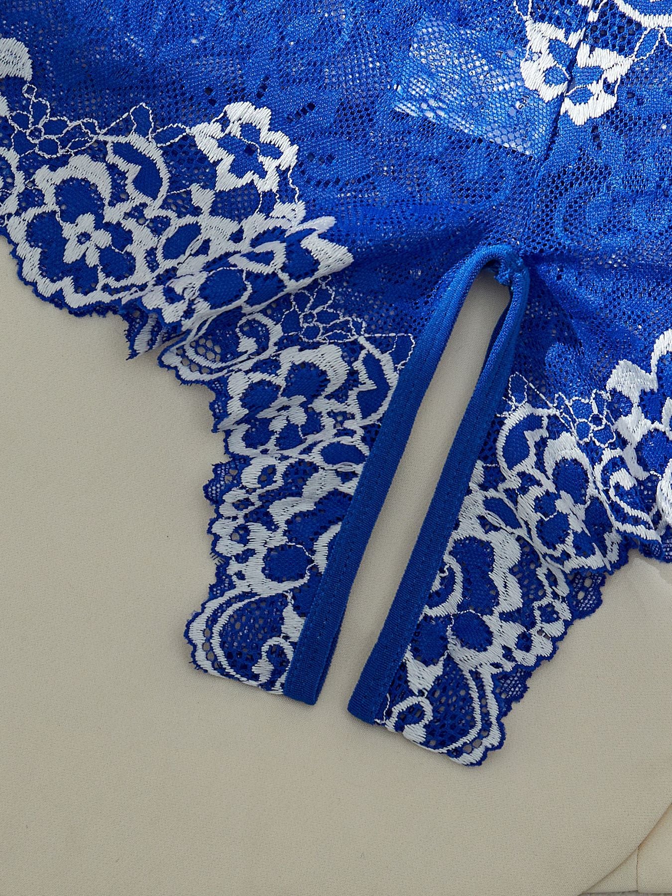Ladies Spicy Floral Lace Open Crotch Lingerie Set SKLG4124
