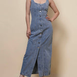 Ladies Square Neck Bottton Denim Midi Dress SKD50063