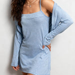 Ladies Square Neck Cami Mini Dress Crop Cardigan Set