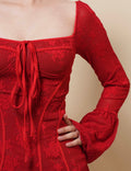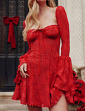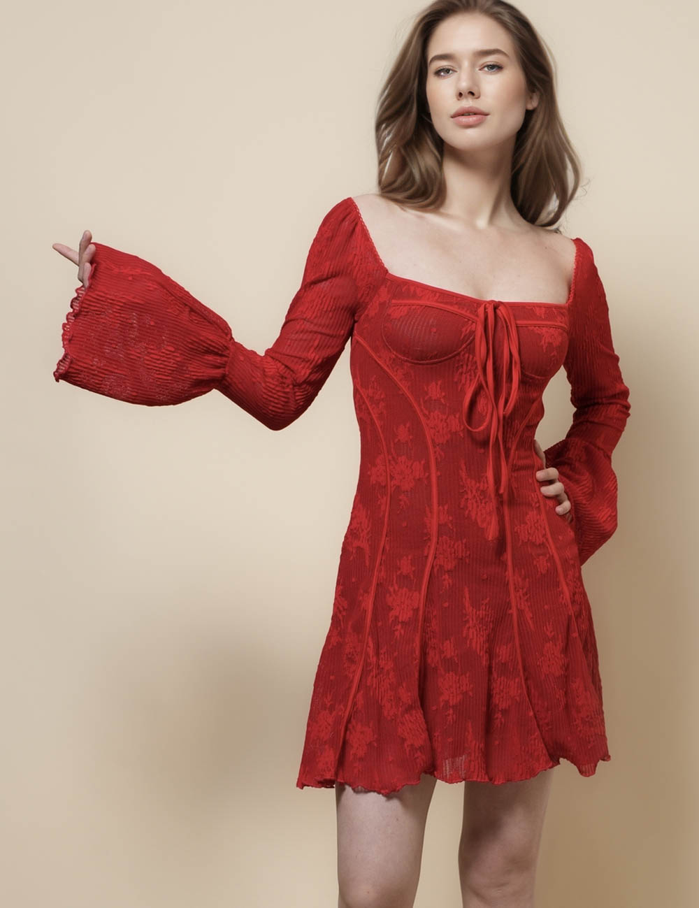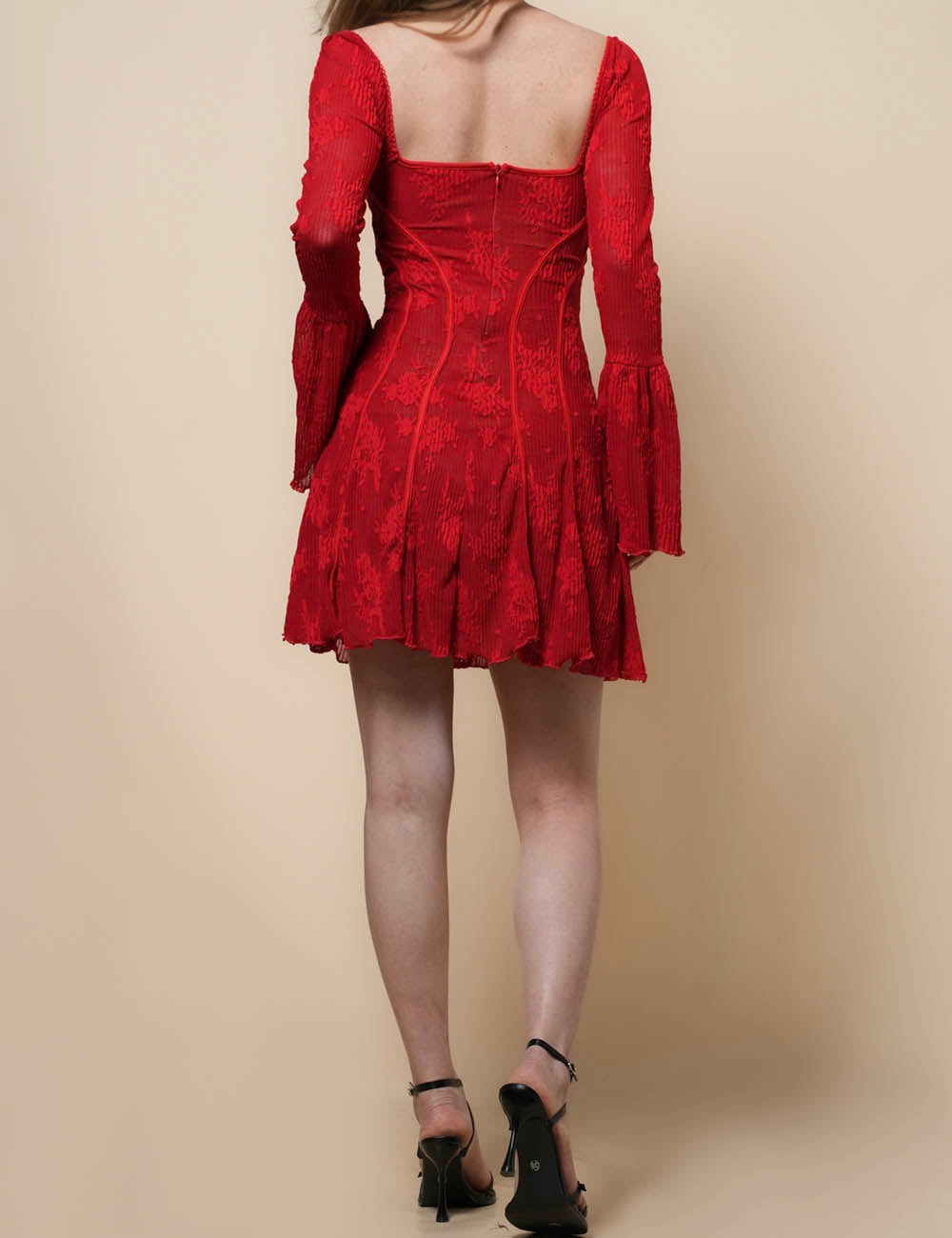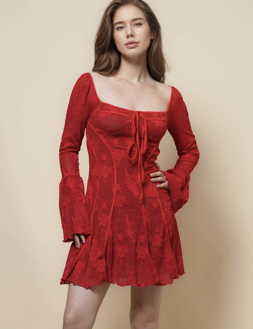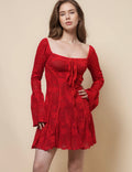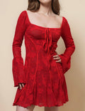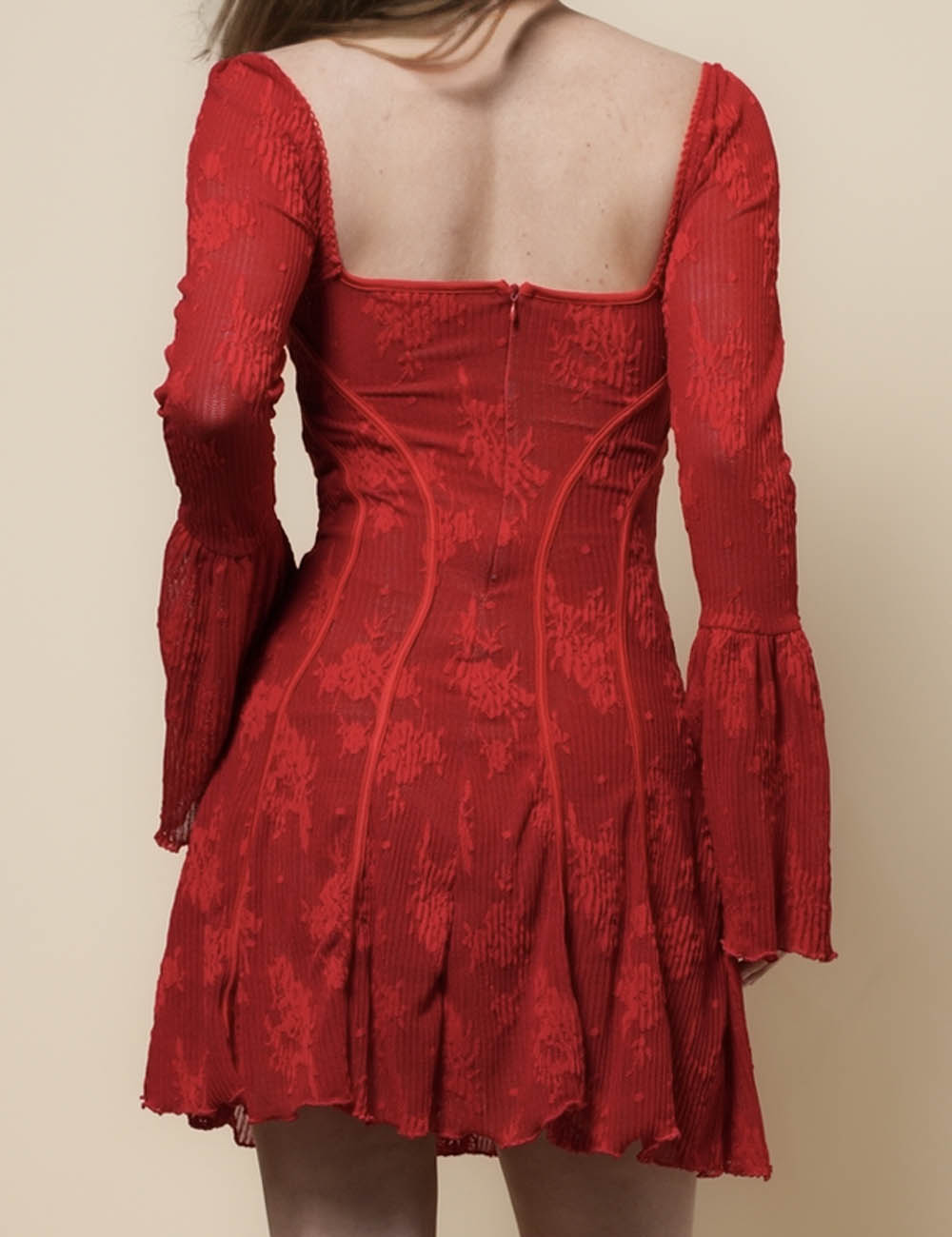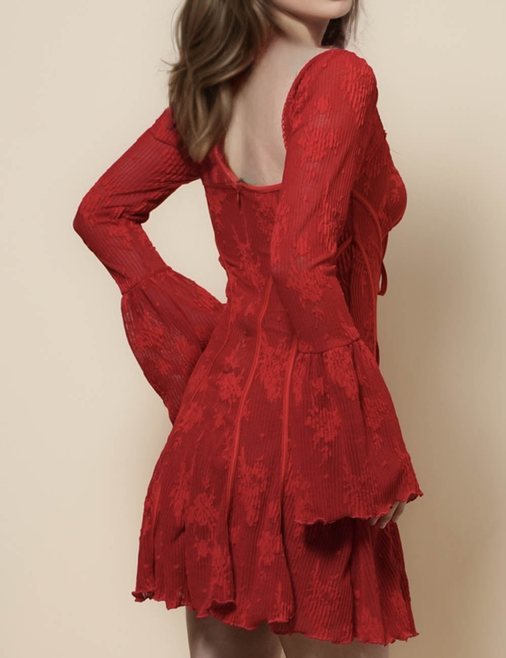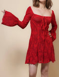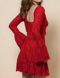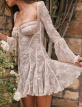 Ladies Square Neck Flare Sleeves Lace Mini Dress SKD41274