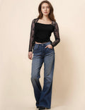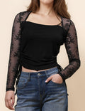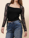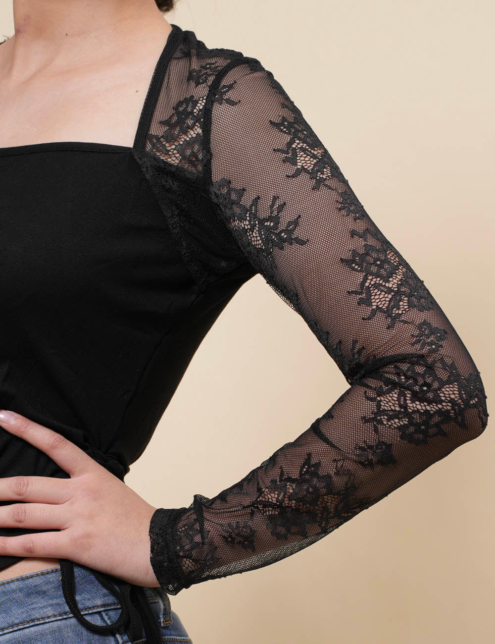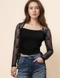 Ladies Square Neck Floral Lace Sleeves Blouse SKT4992