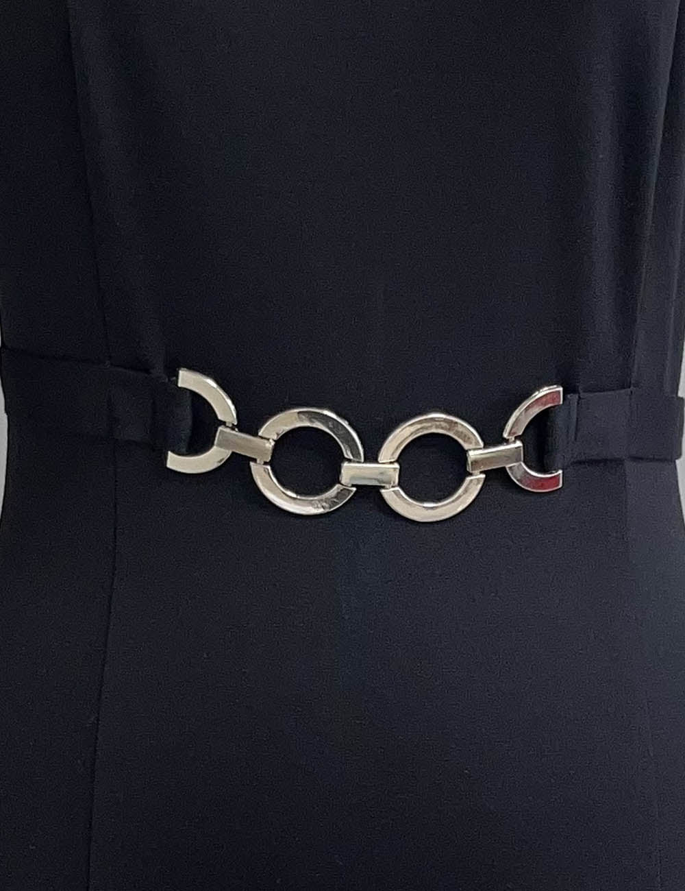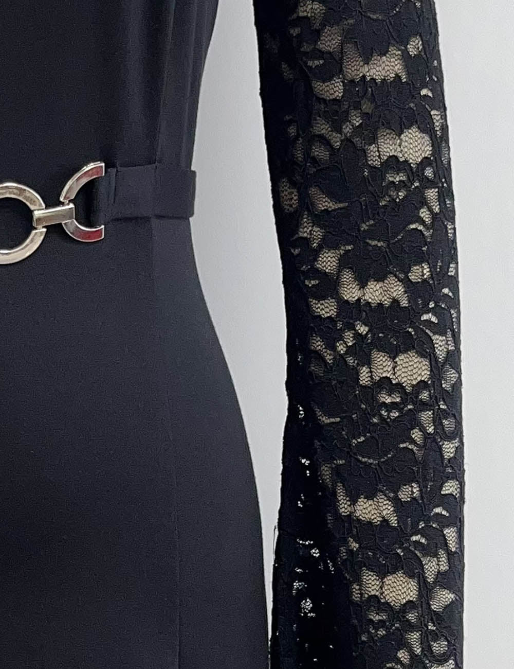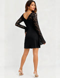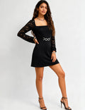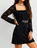 Ladies Square Neck Lace Sleeves Metal Waist Mini Dress