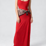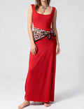 Ladies Square Neck Leopard Scarf Waist Tank Maxi Dress