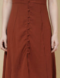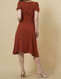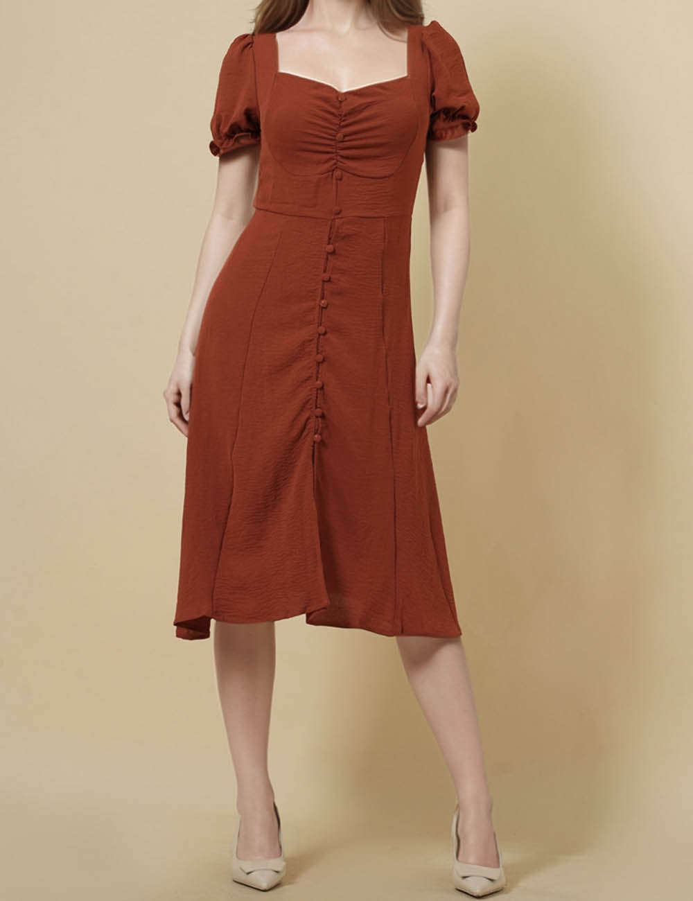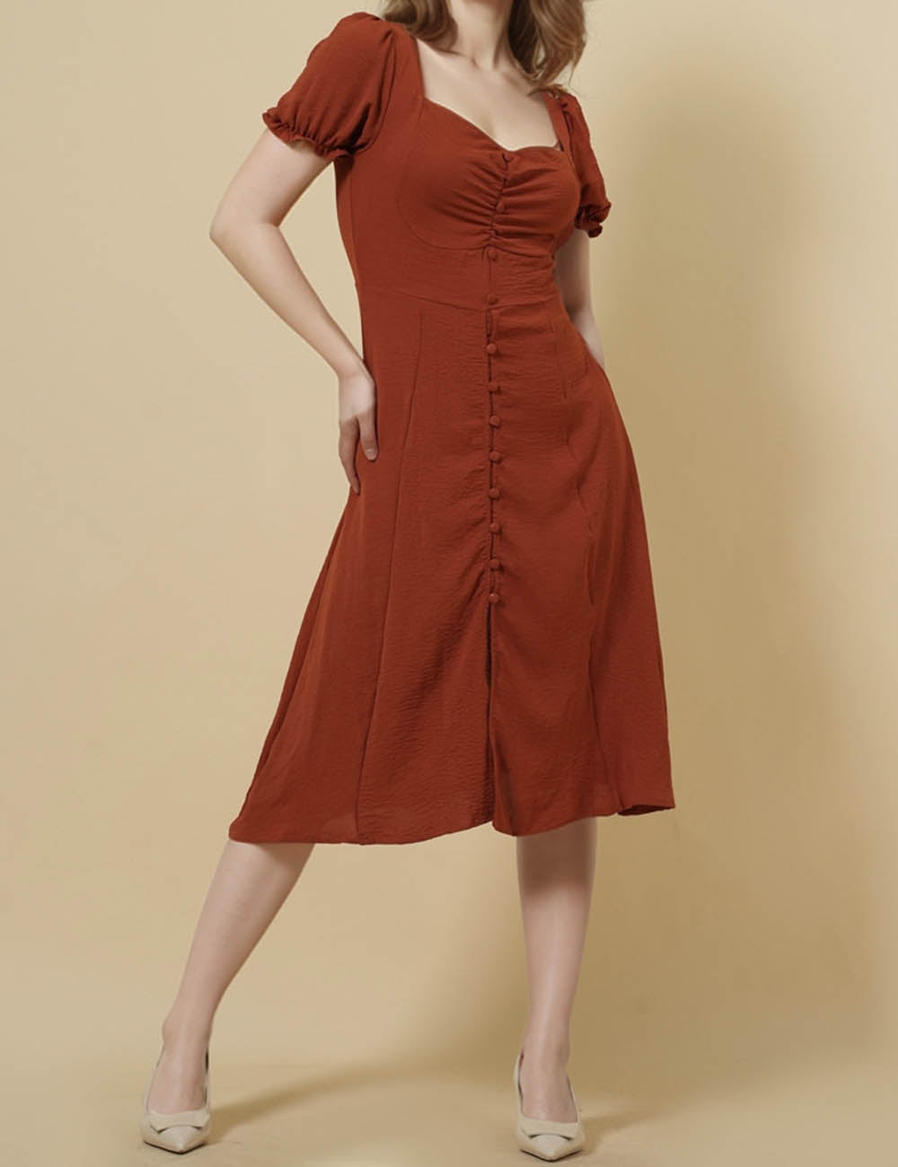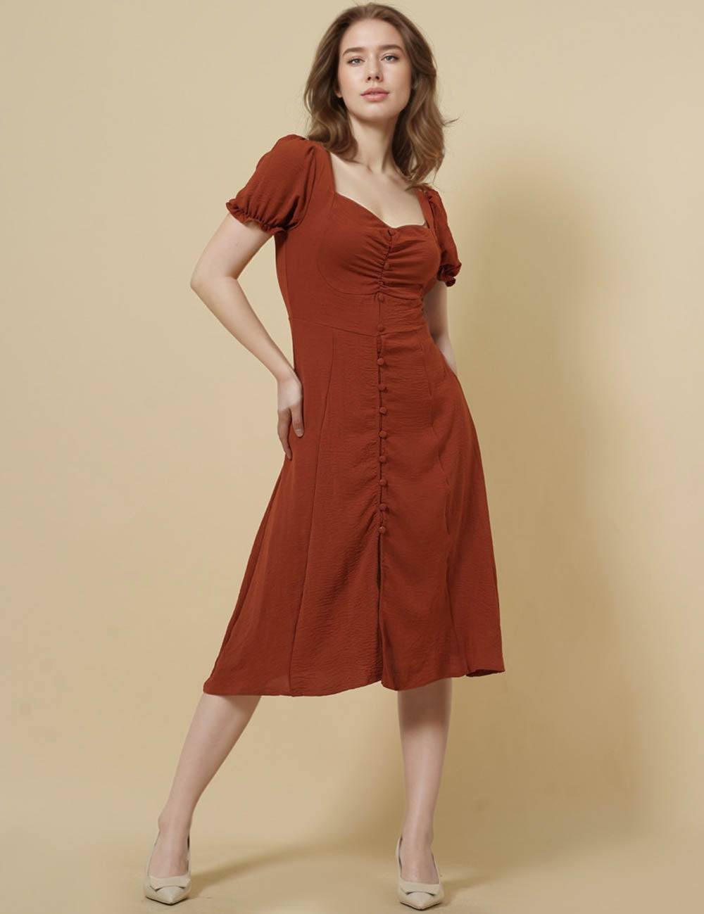 Ladies Square Neck Short Sleeves Buttons Midi Dress SKD51212