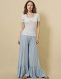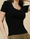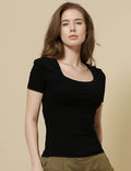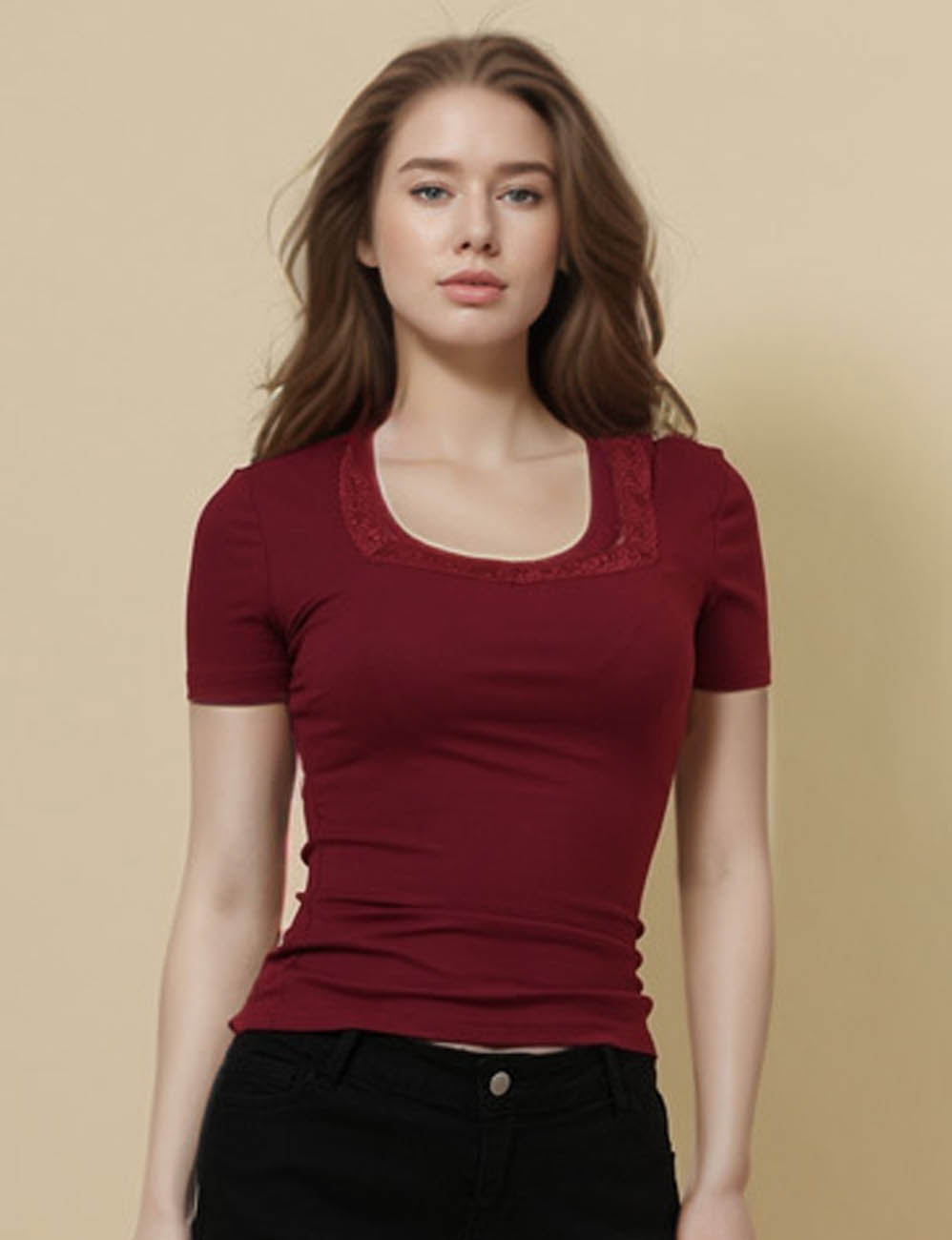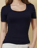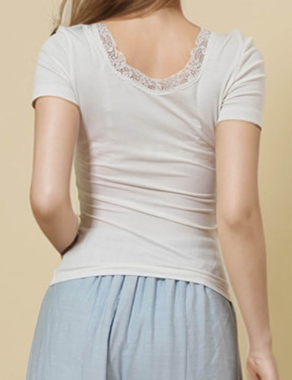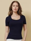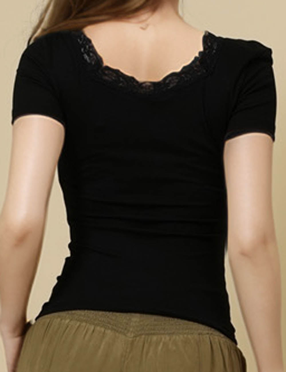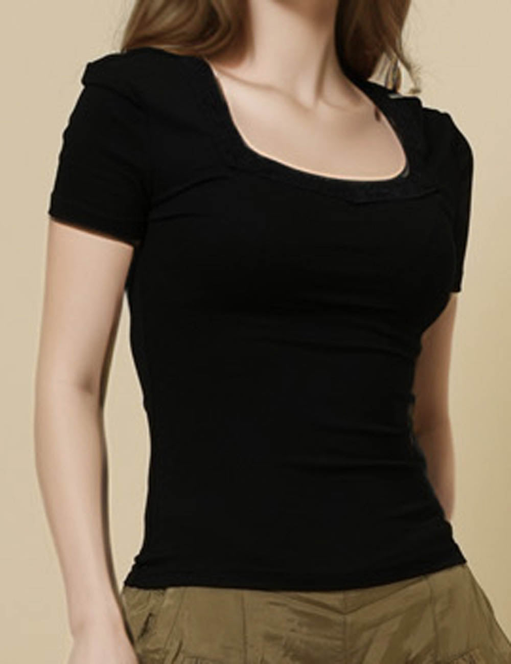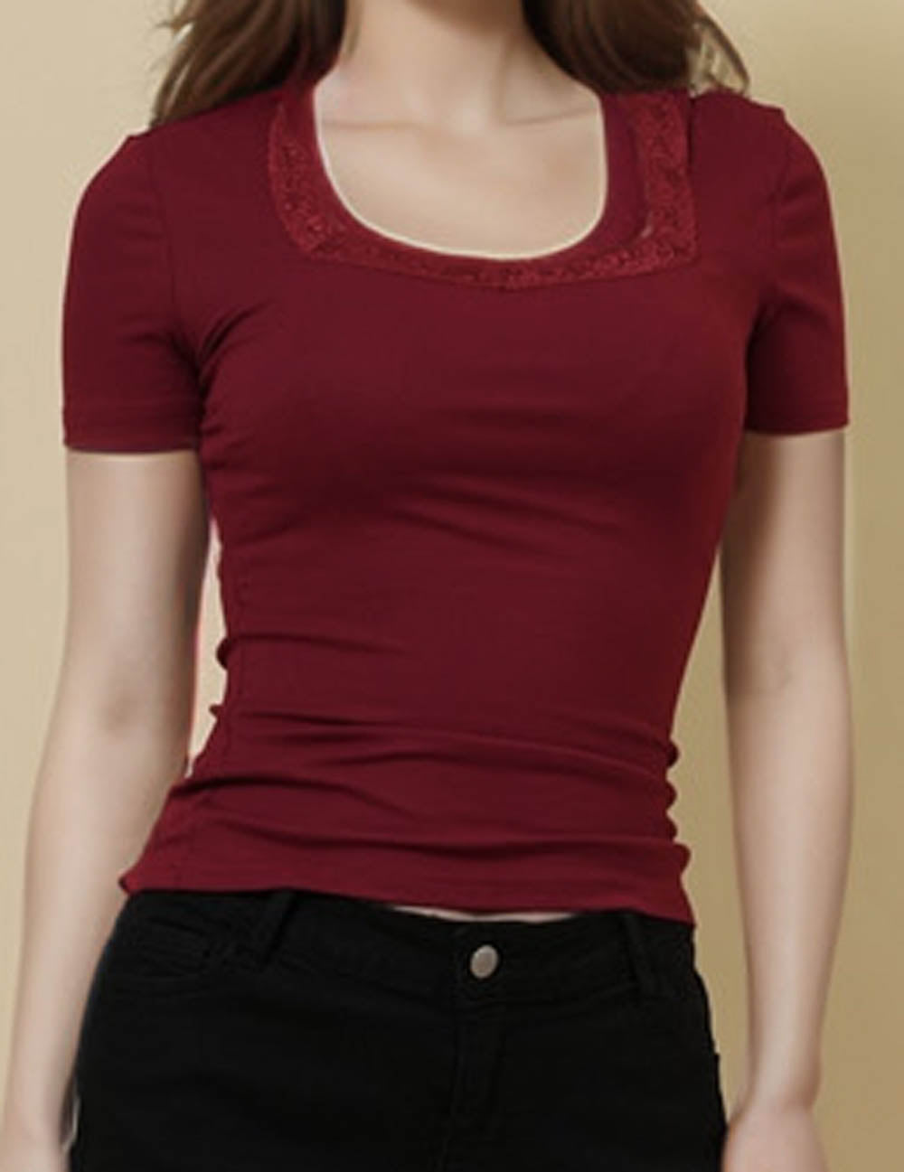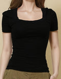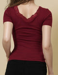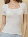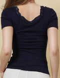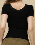 Ladies Square Neck Short Sleeves Lace Knit T-Shirt SKT51031