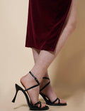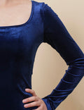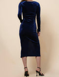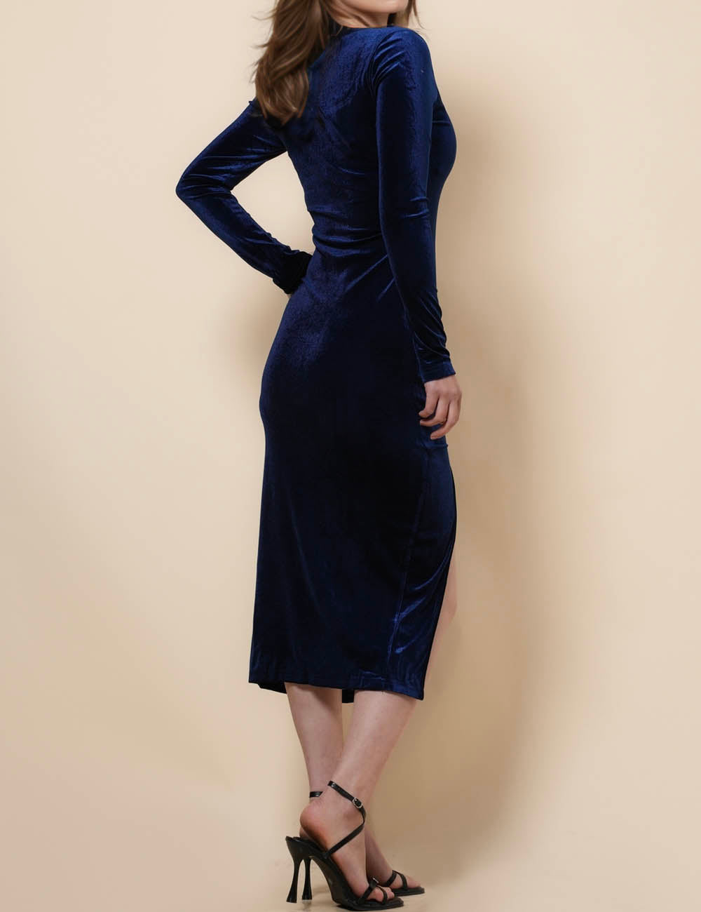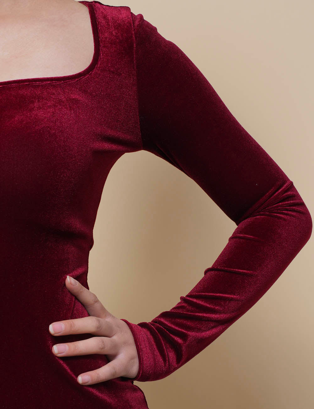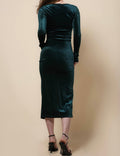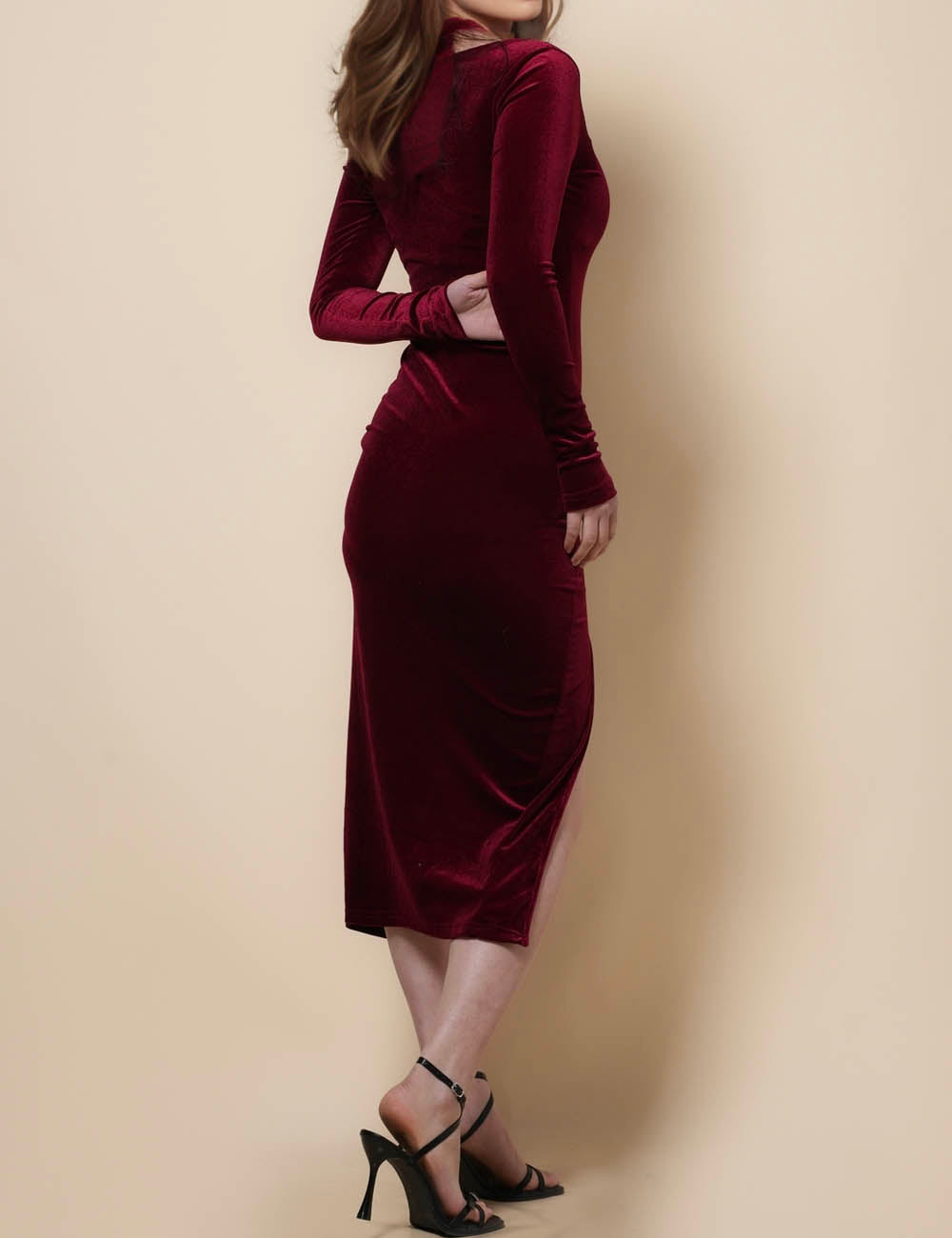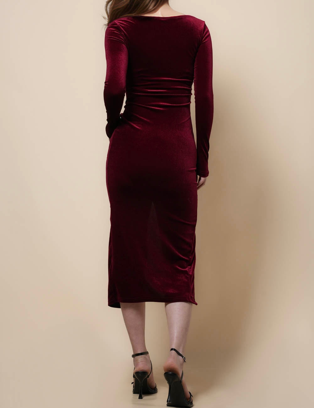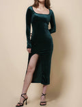 Ladies Square Neck Side Split Velvet Midi Dress SKD41288