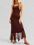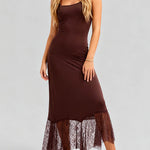 Ladies Square Neck Sleeveless Lace Hem Bodycon Maxi Dress