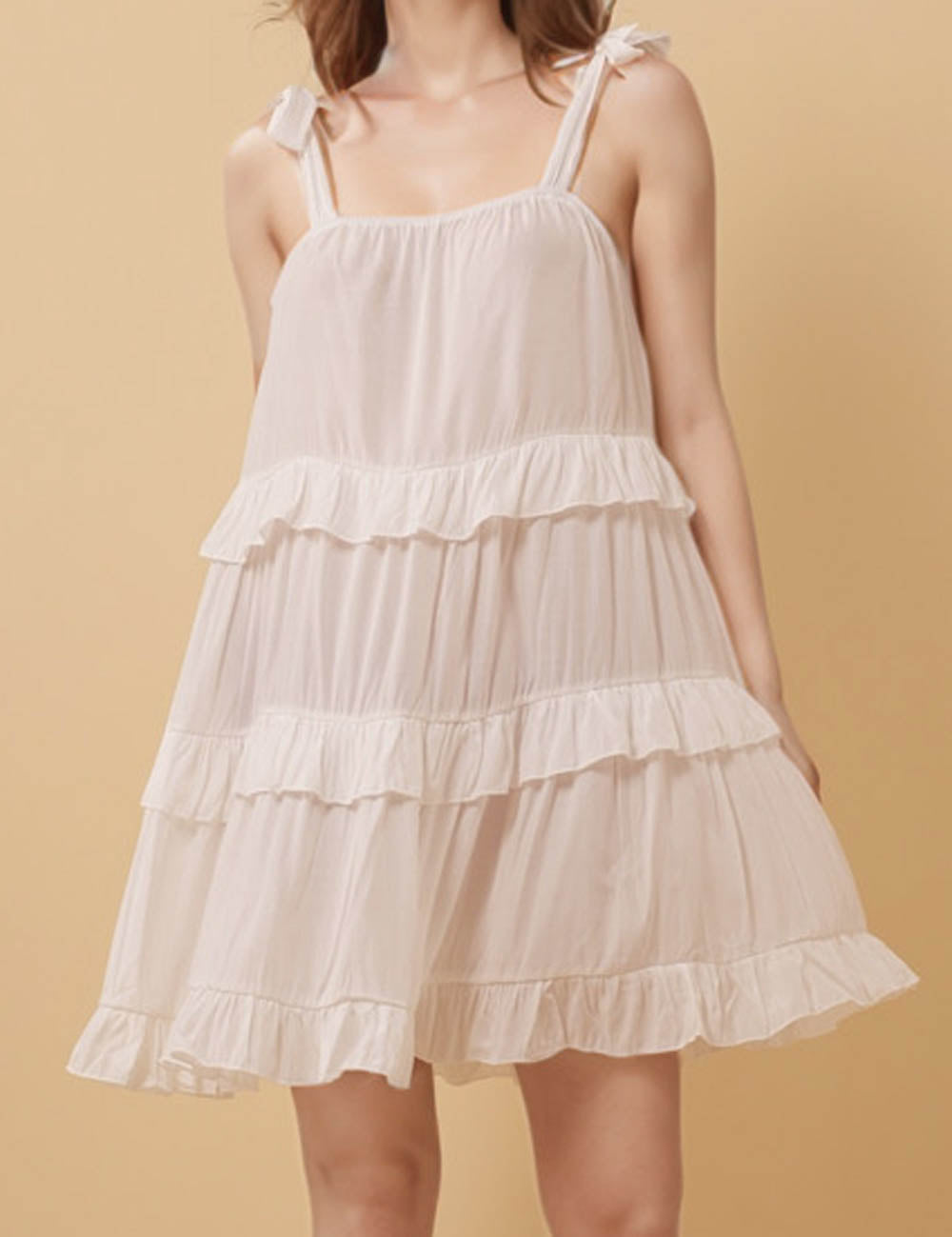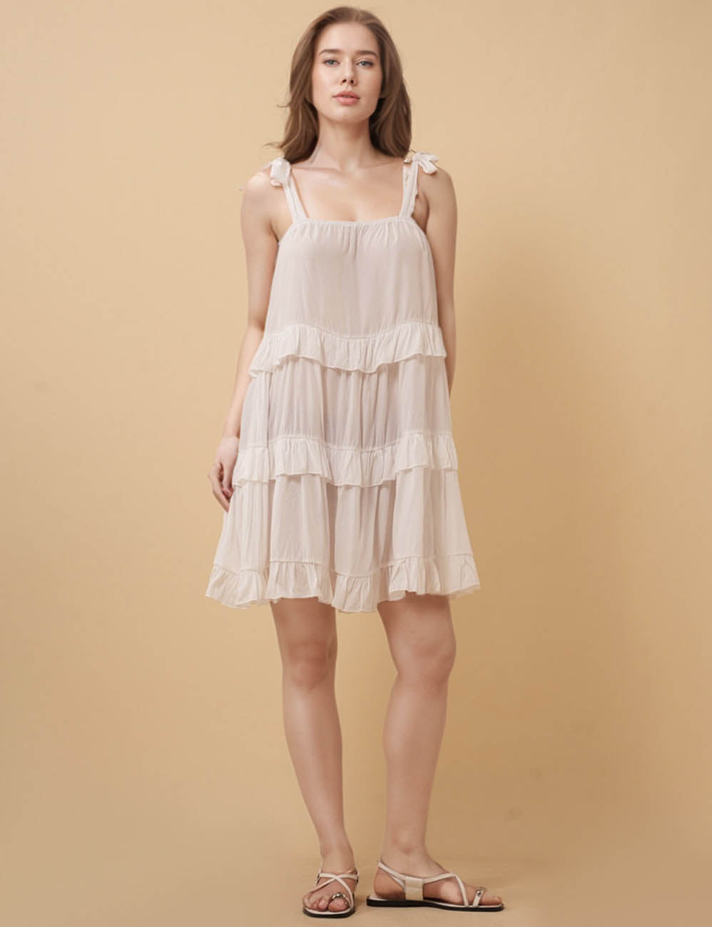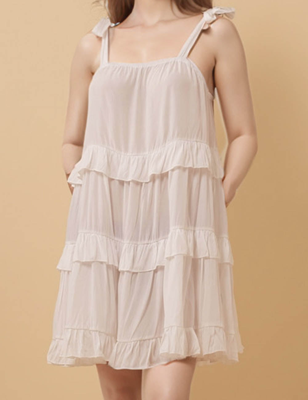 Ladies Square Neck Sleeveless Ruffle Mini Dress 8SKD51107