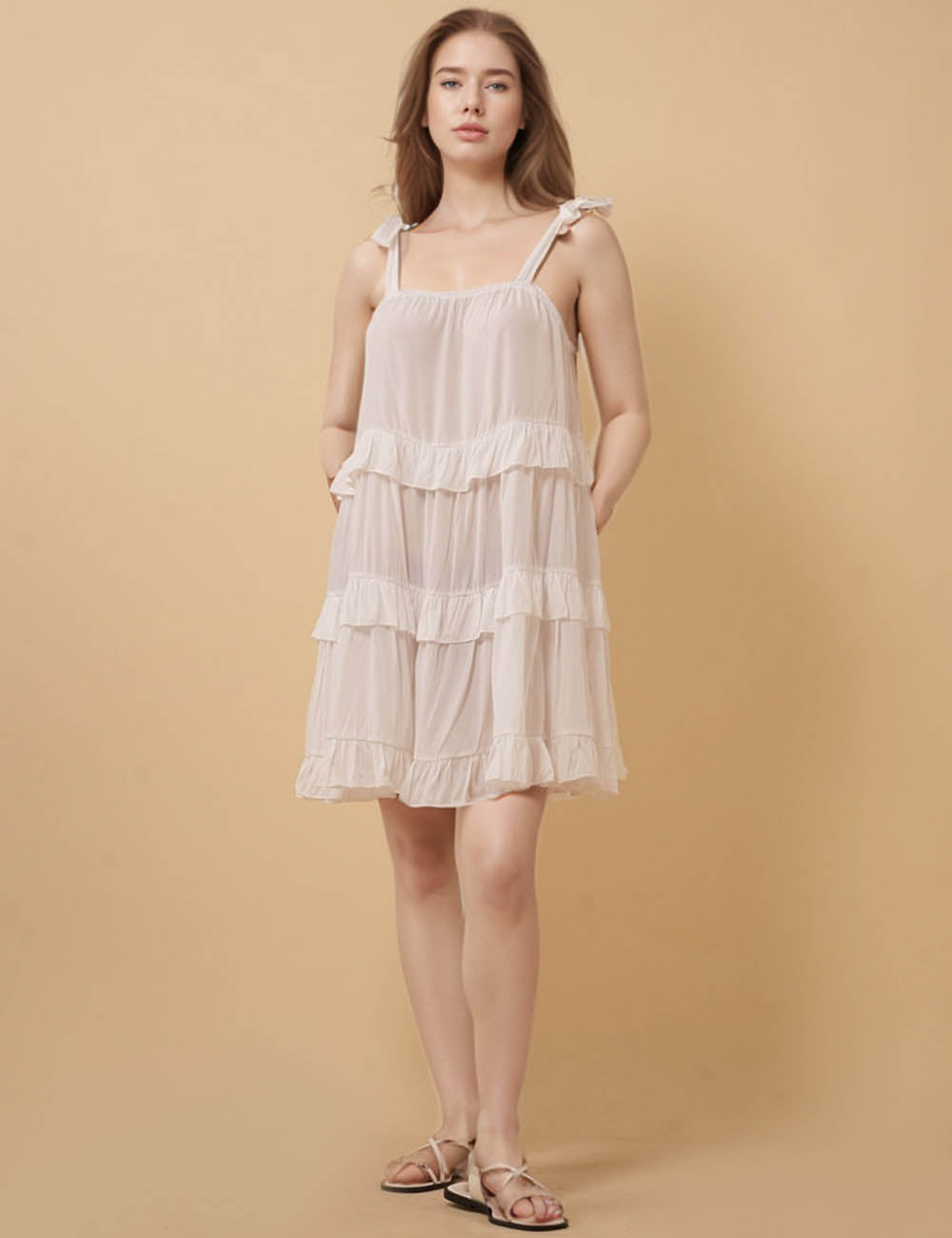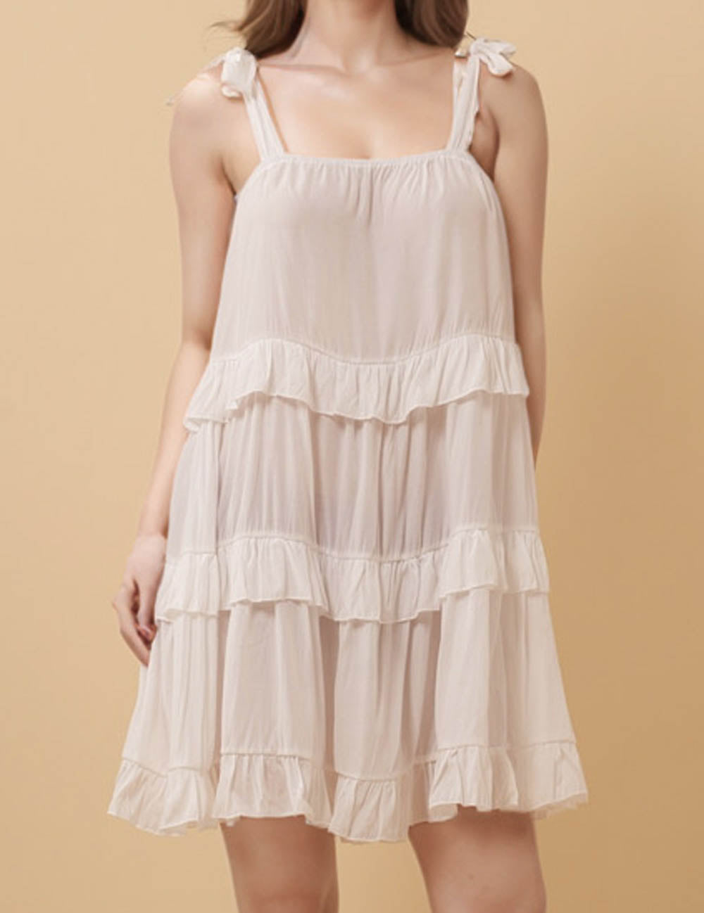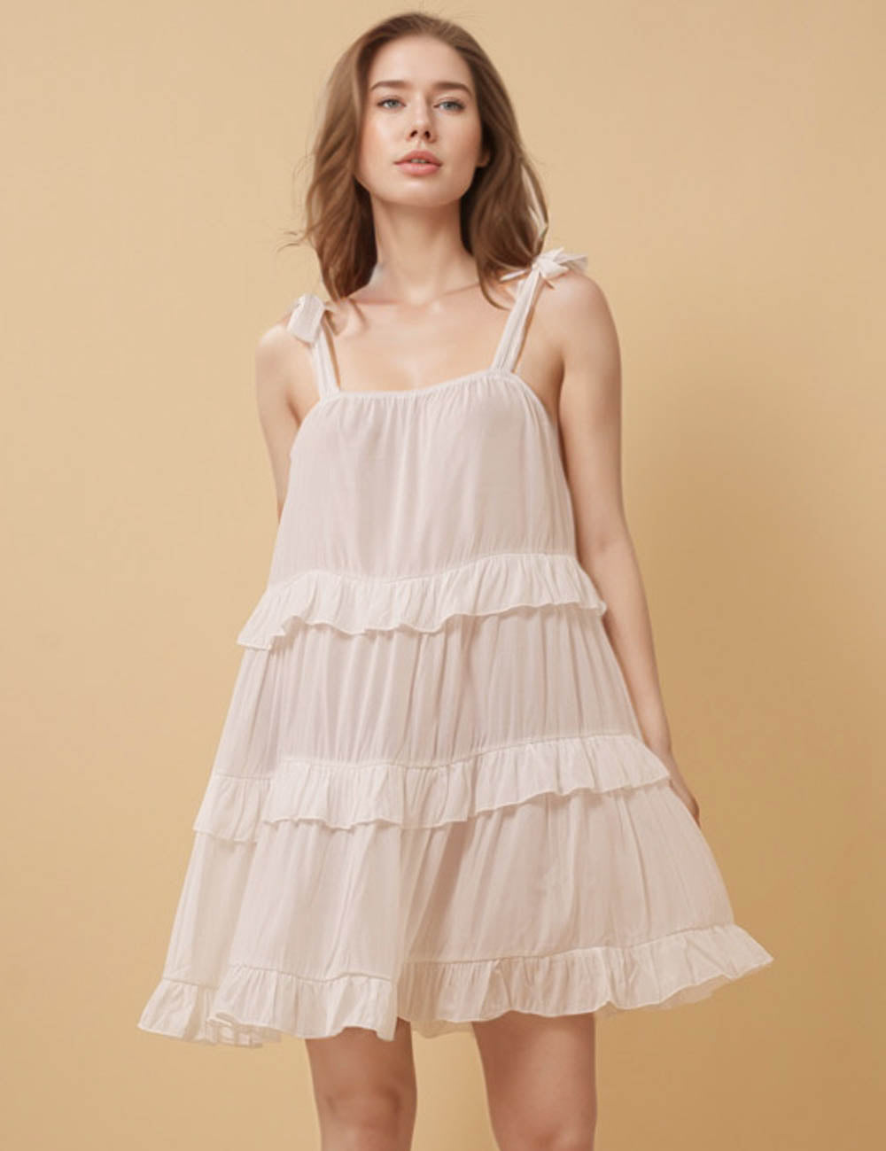 Ladies Square Neck Sleeveless Ruffle Mini Dress 8SKD51107
