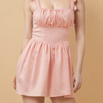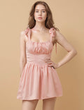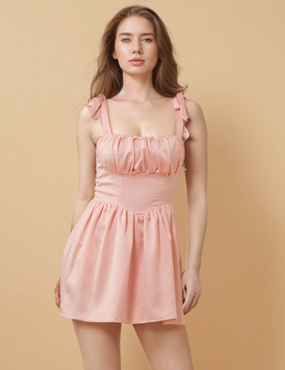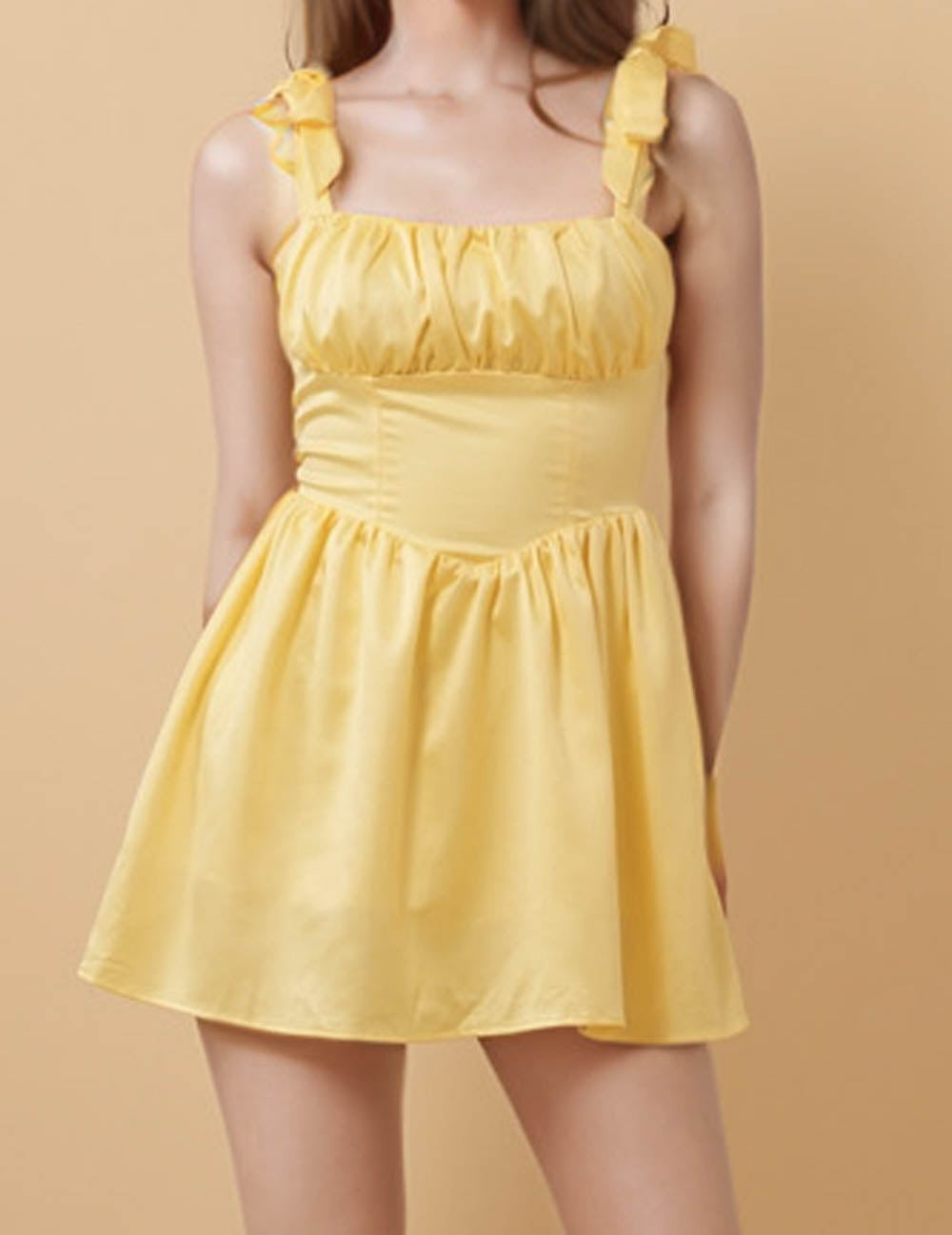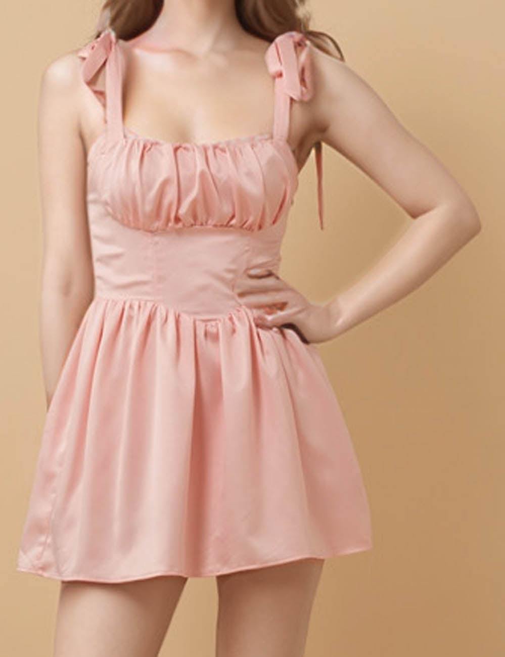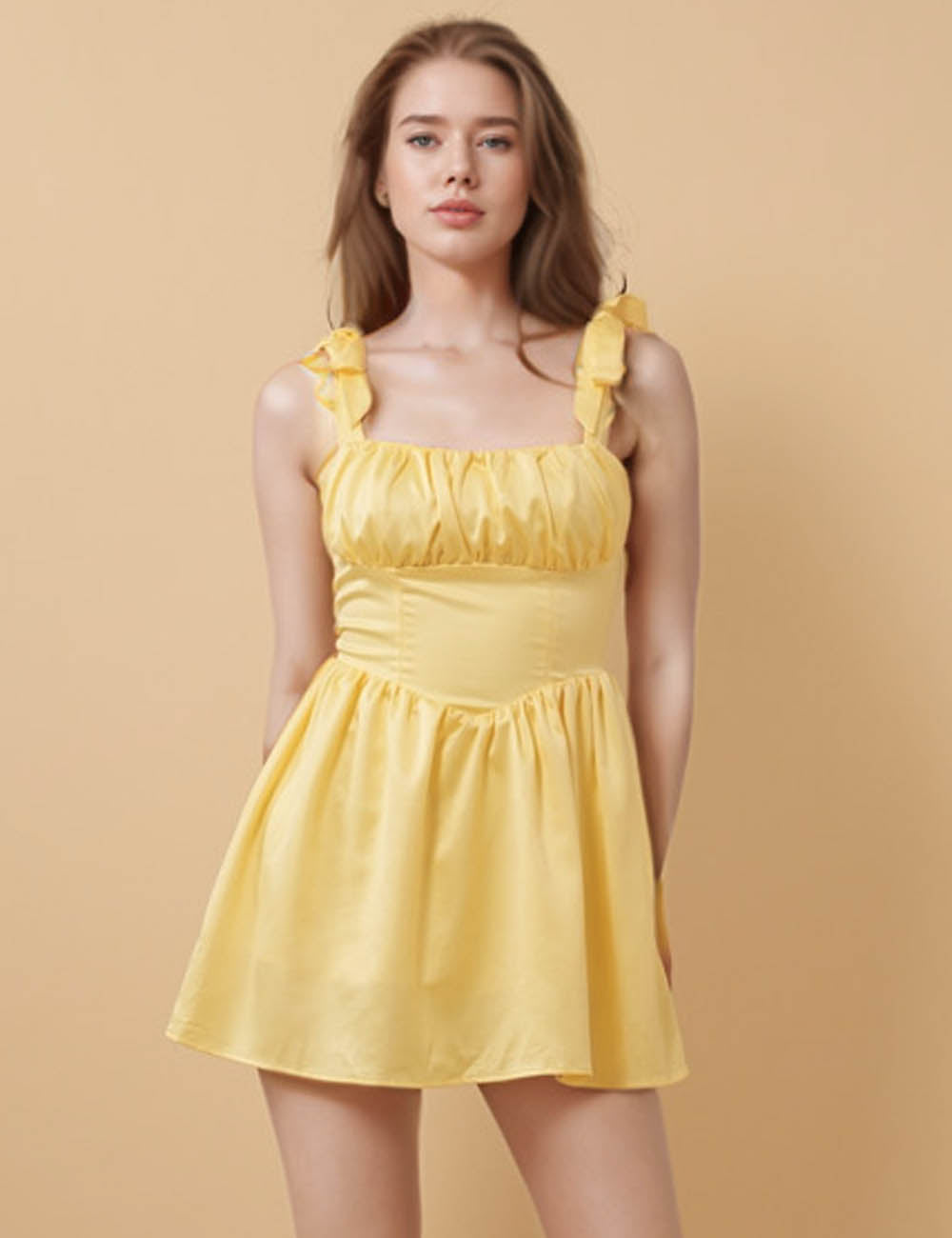 Ladies Square Neck Strape Shoulder Lace Up Mini Dress 8SKD51321
