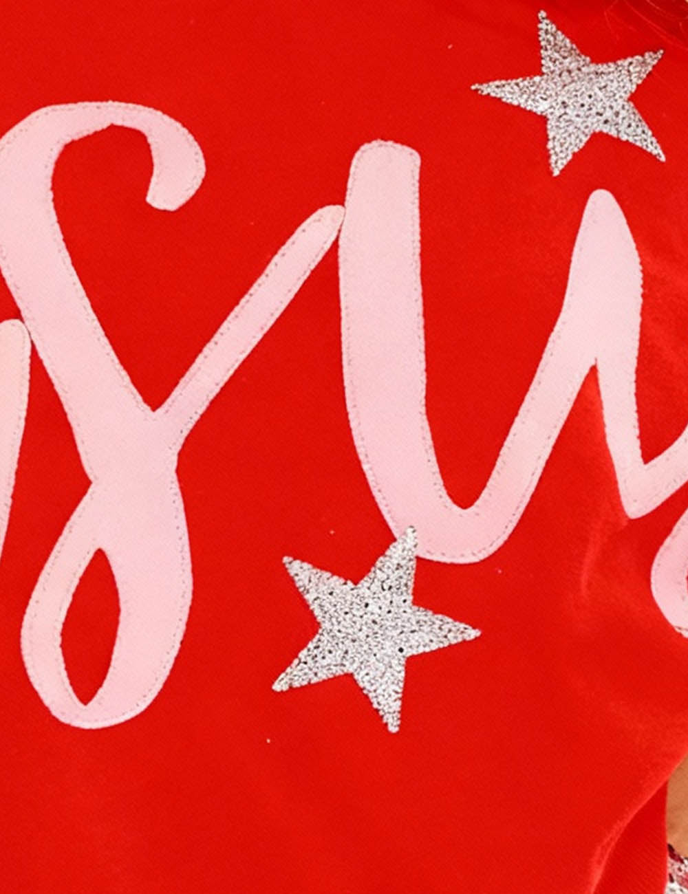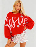 Ladies Star Graphic Sequin Round Neck Sweatshirt