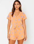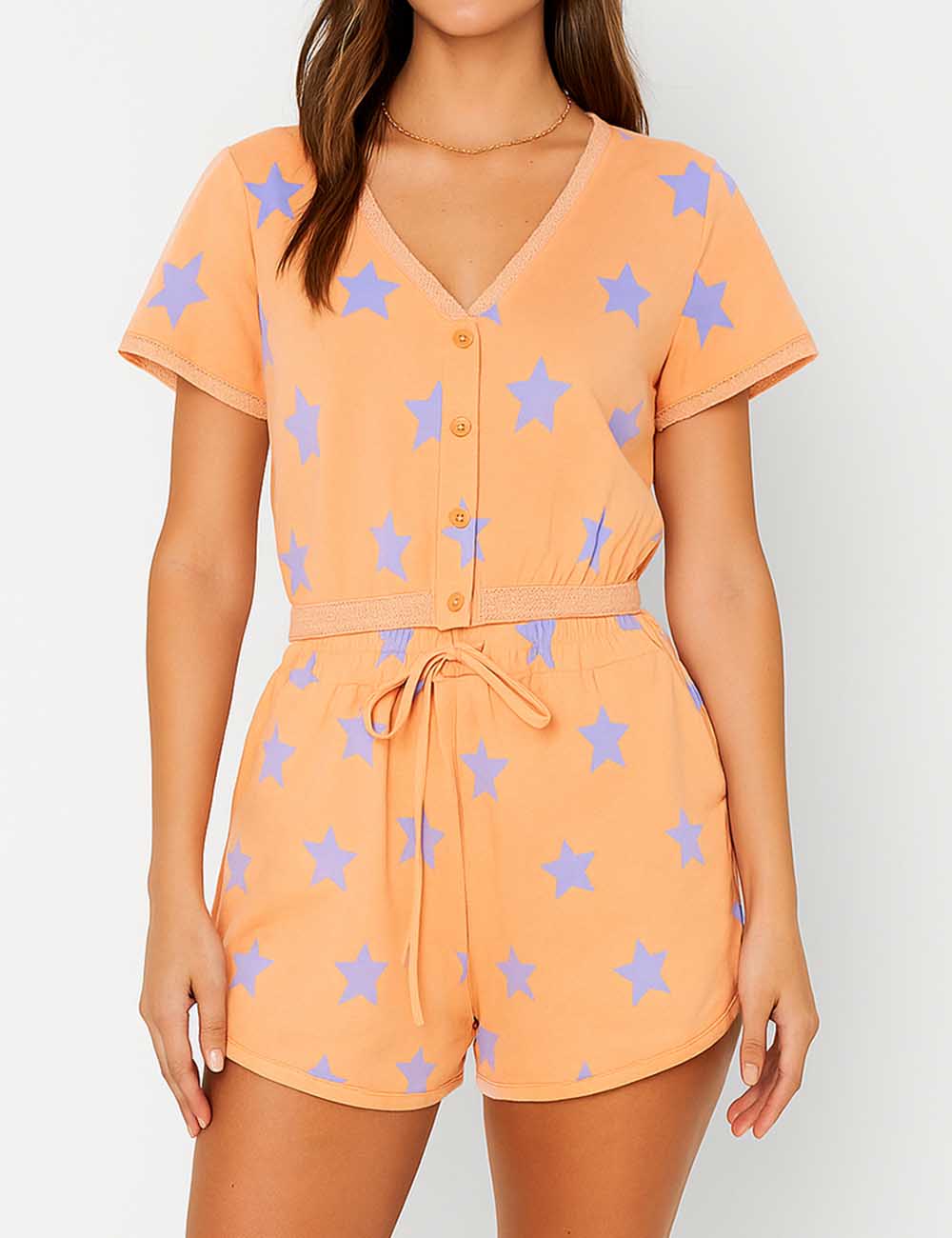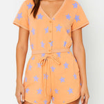 Ladies Star Print V-Neck Lace Button Top & Shorts Set