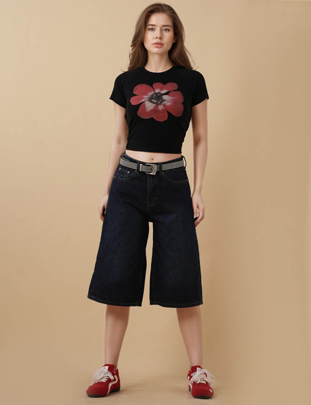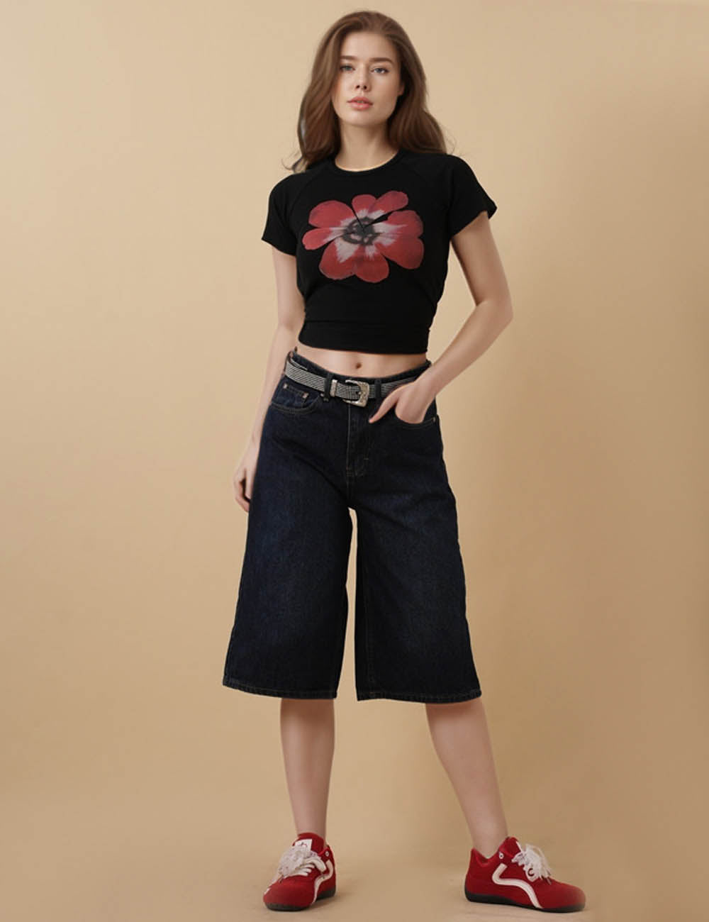 Ladies Straight Wide Leg Capri Jeans 8SKS5M73