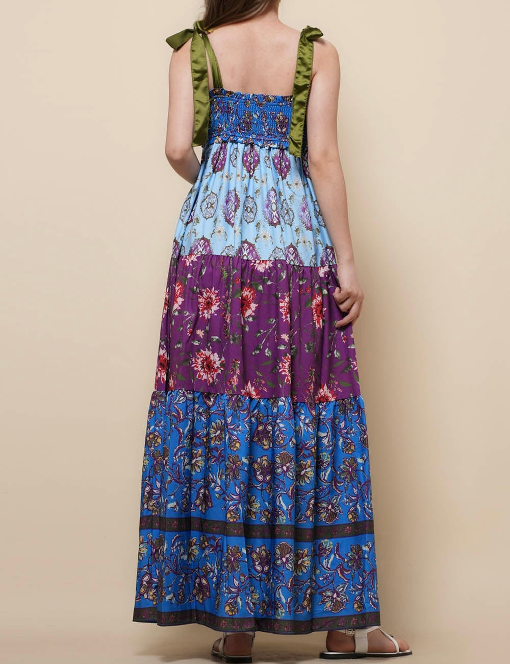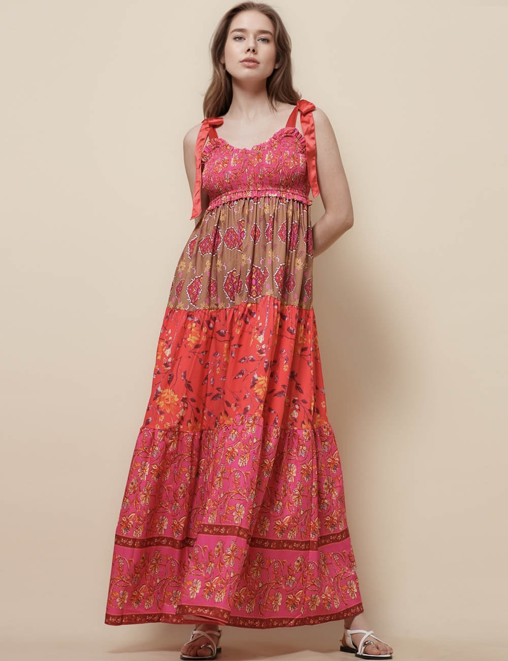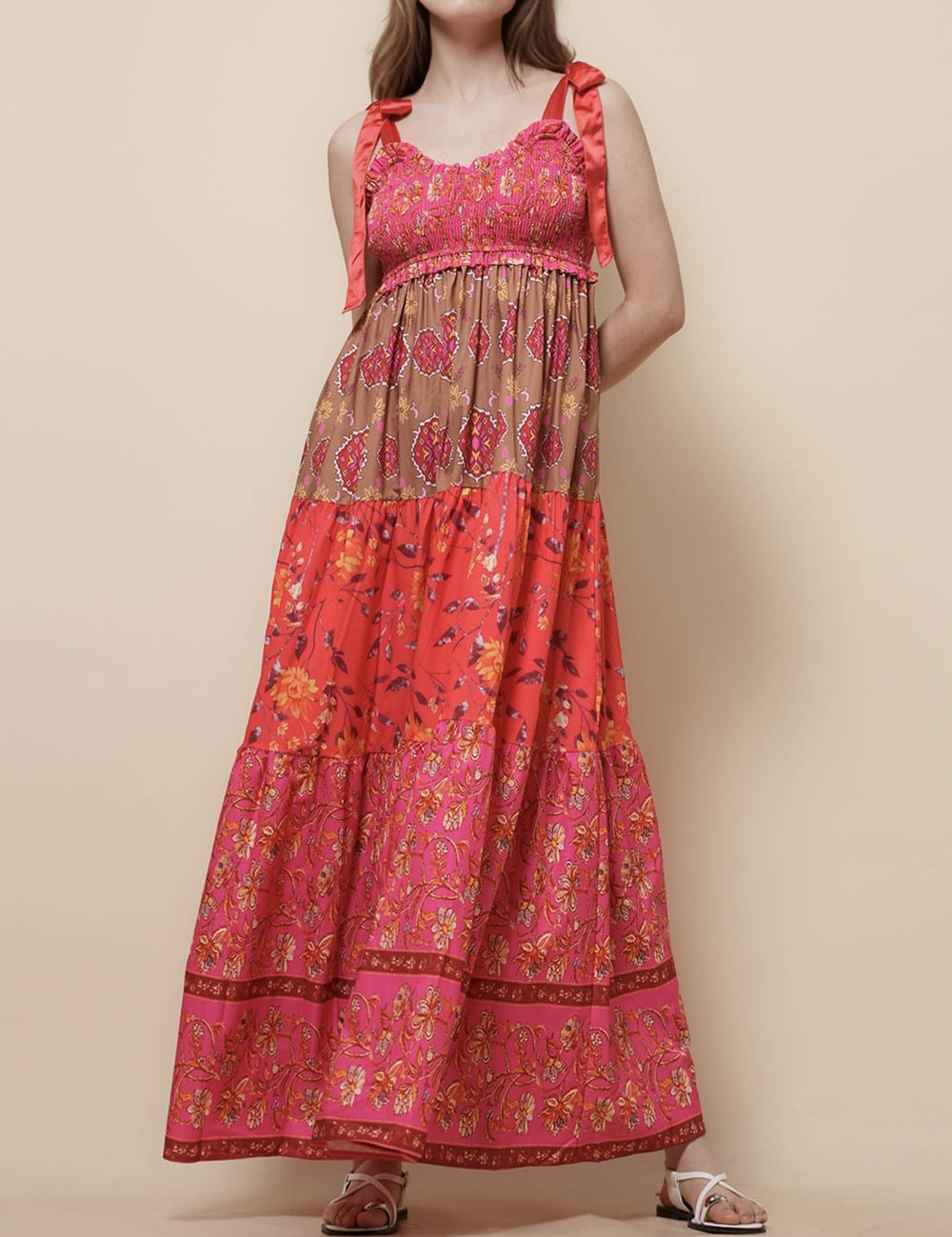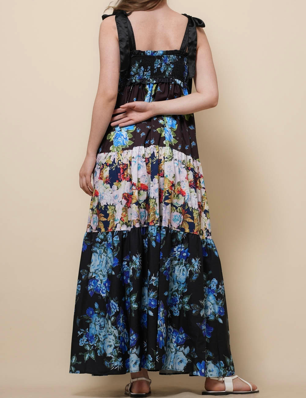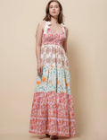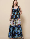 Ladies Strape Tie Shoulder Floral Print Maxi Dress SKD50568
