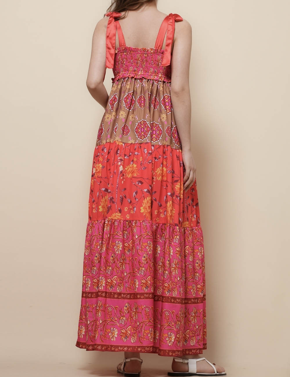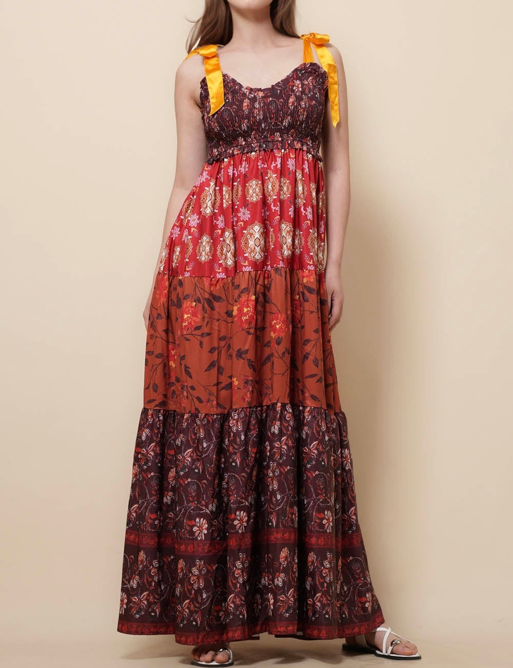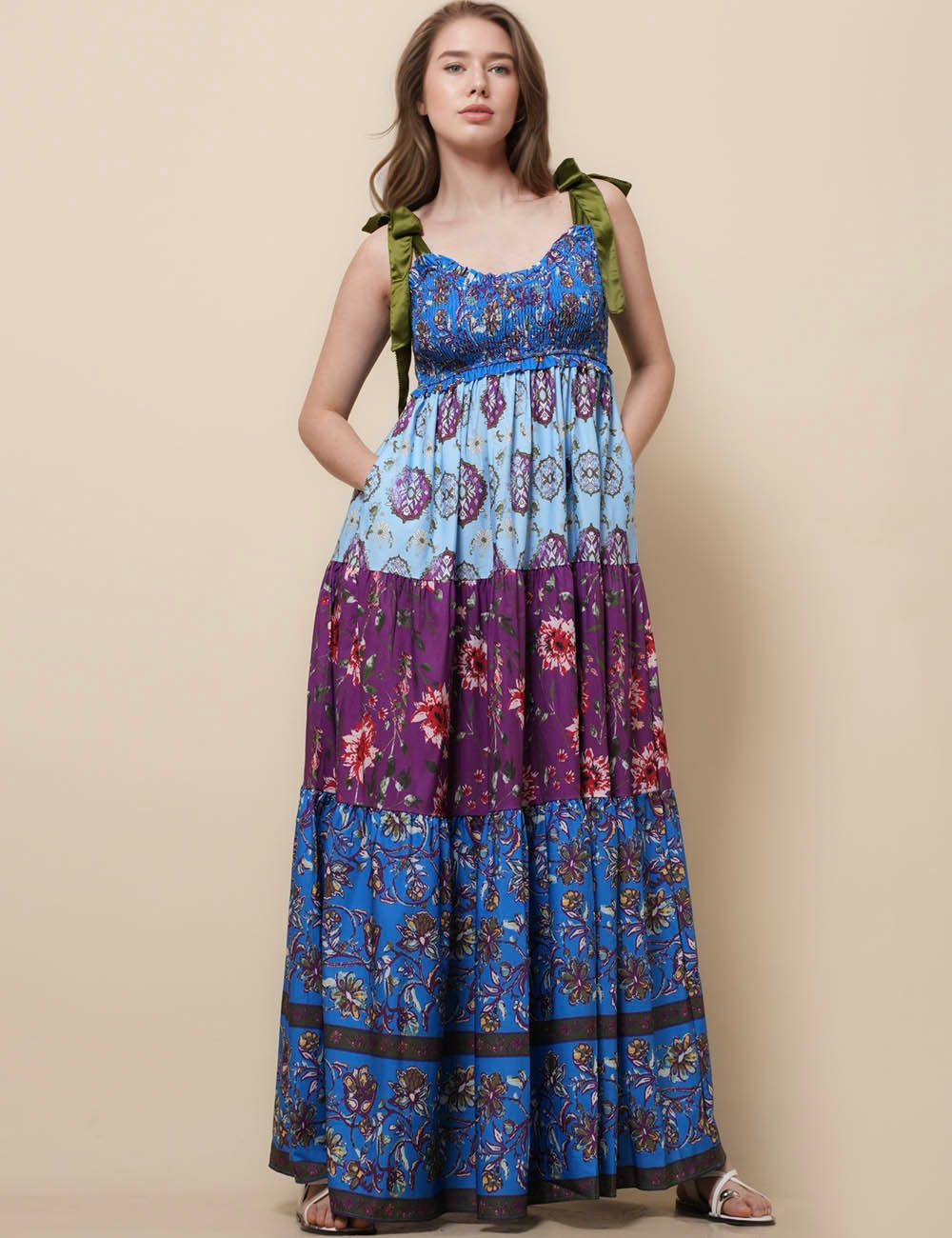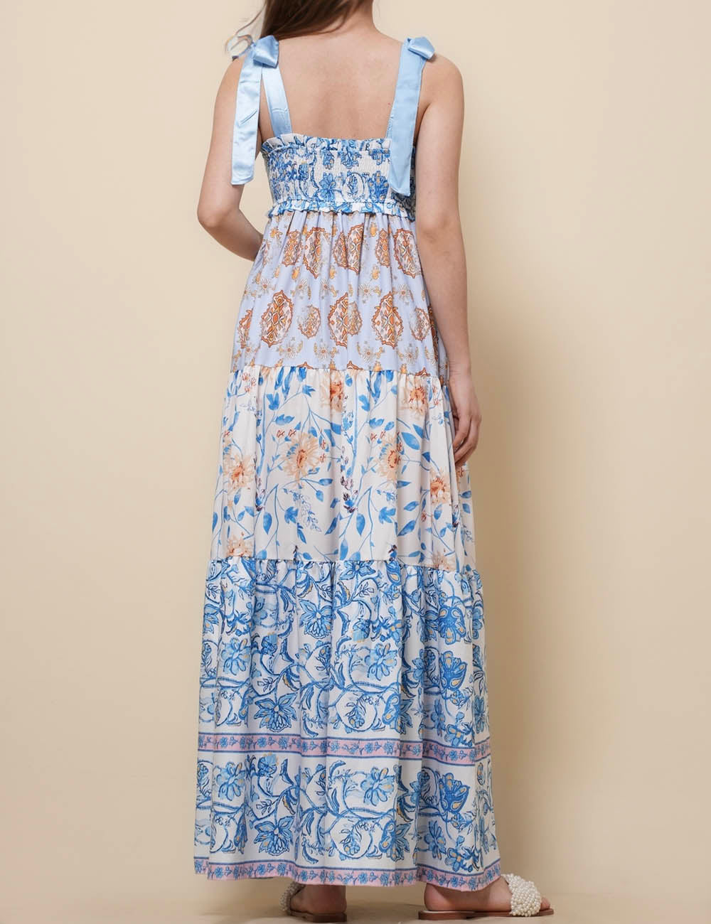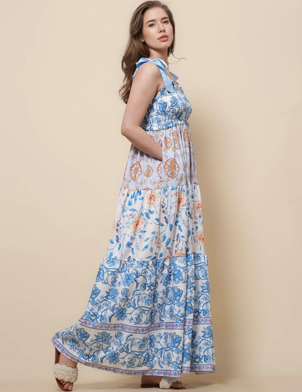 Ladies Strape Tie Shoulder Floral Print Maxi Dress SKD50568