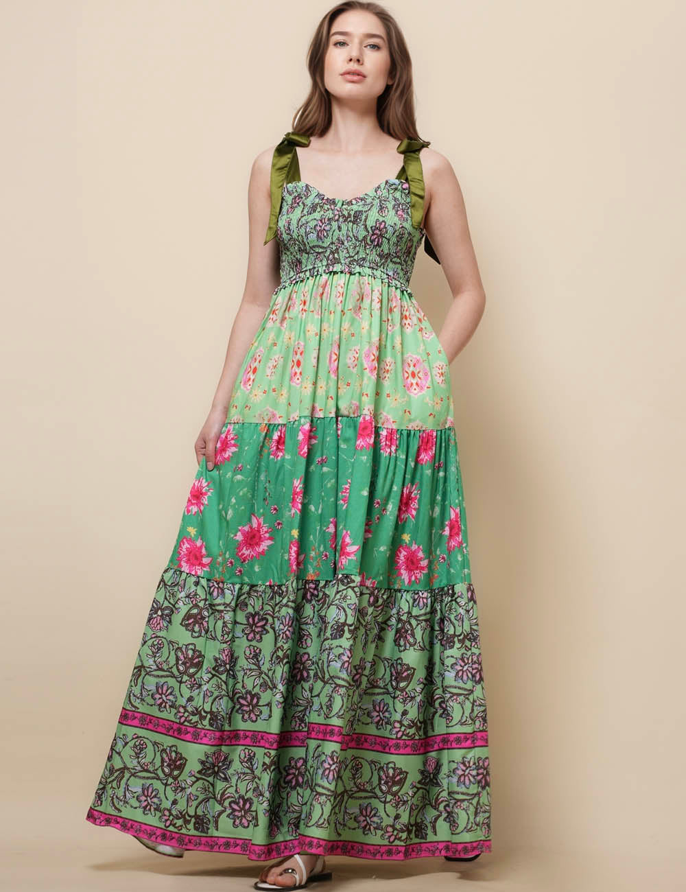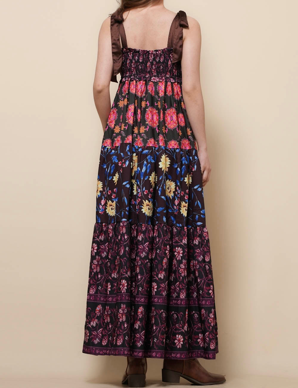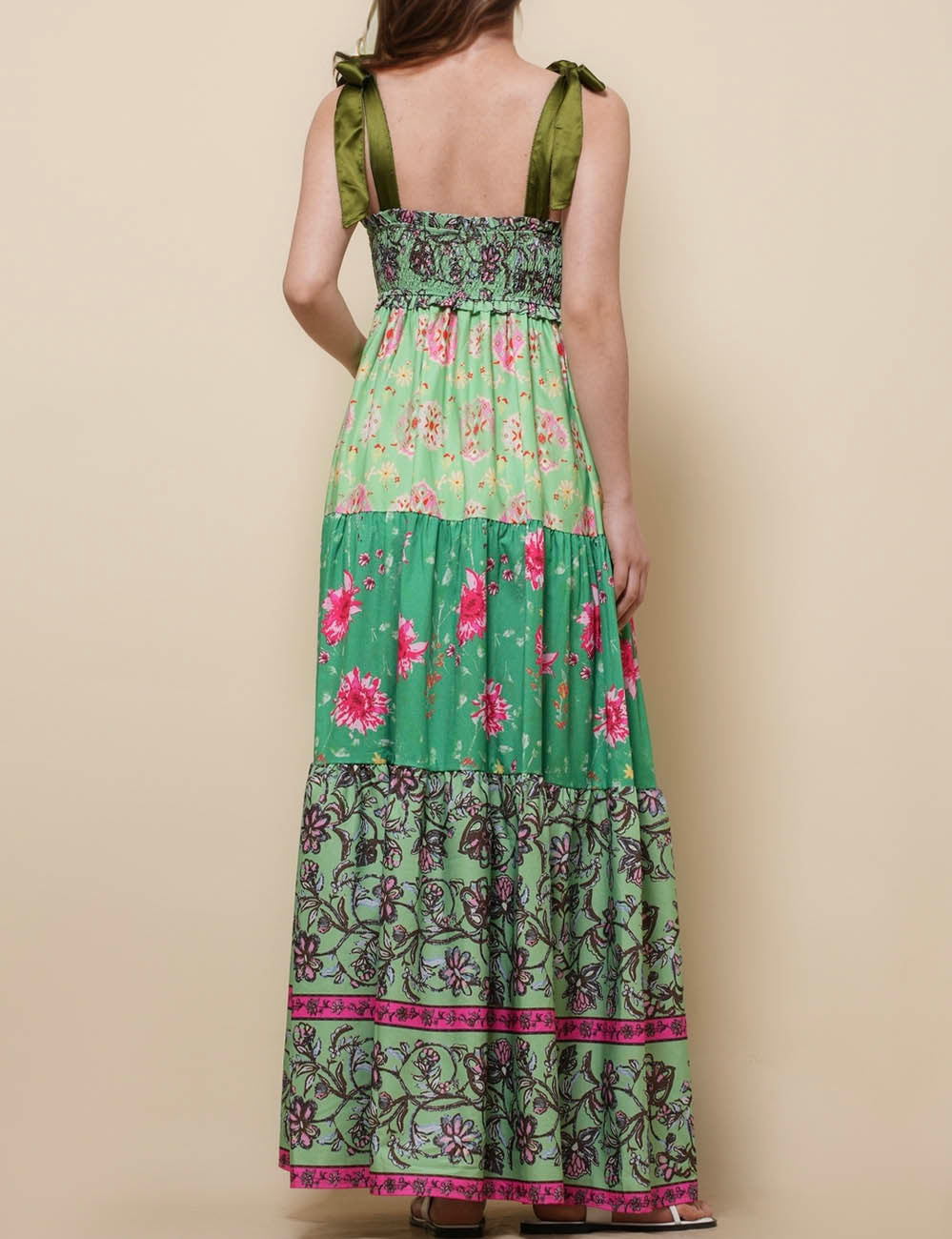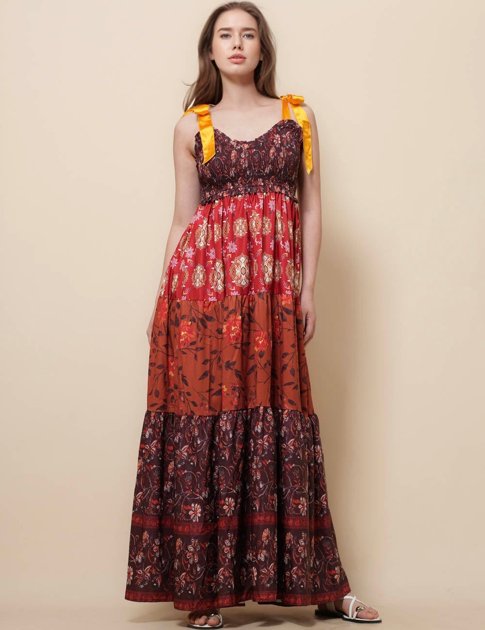 Ladies Strape Tie Shoulder Floral Print Maxi Dress SKD50568