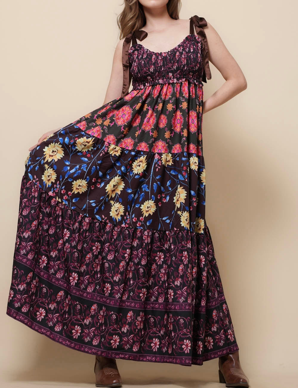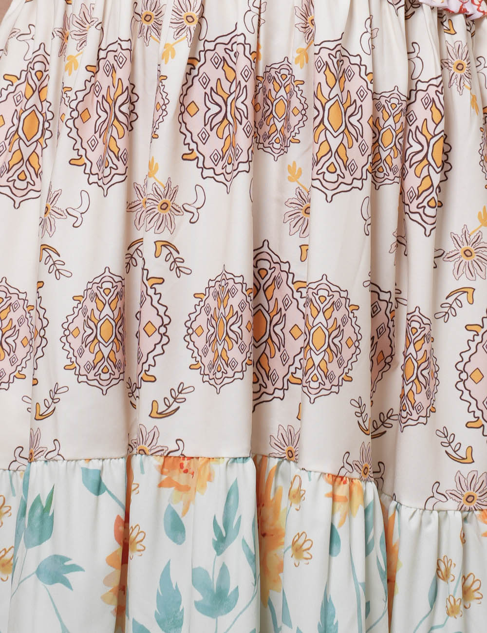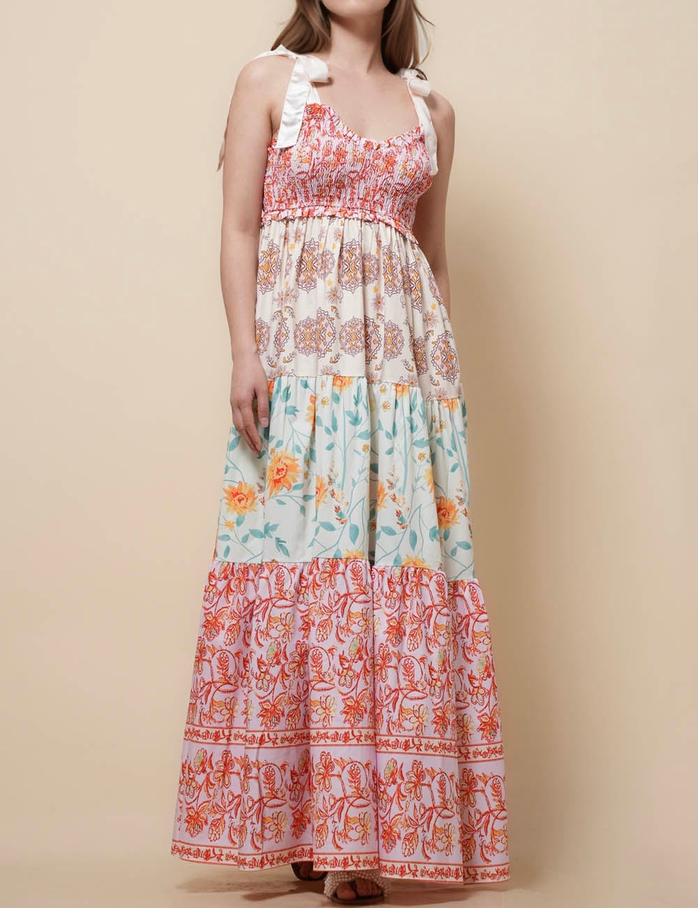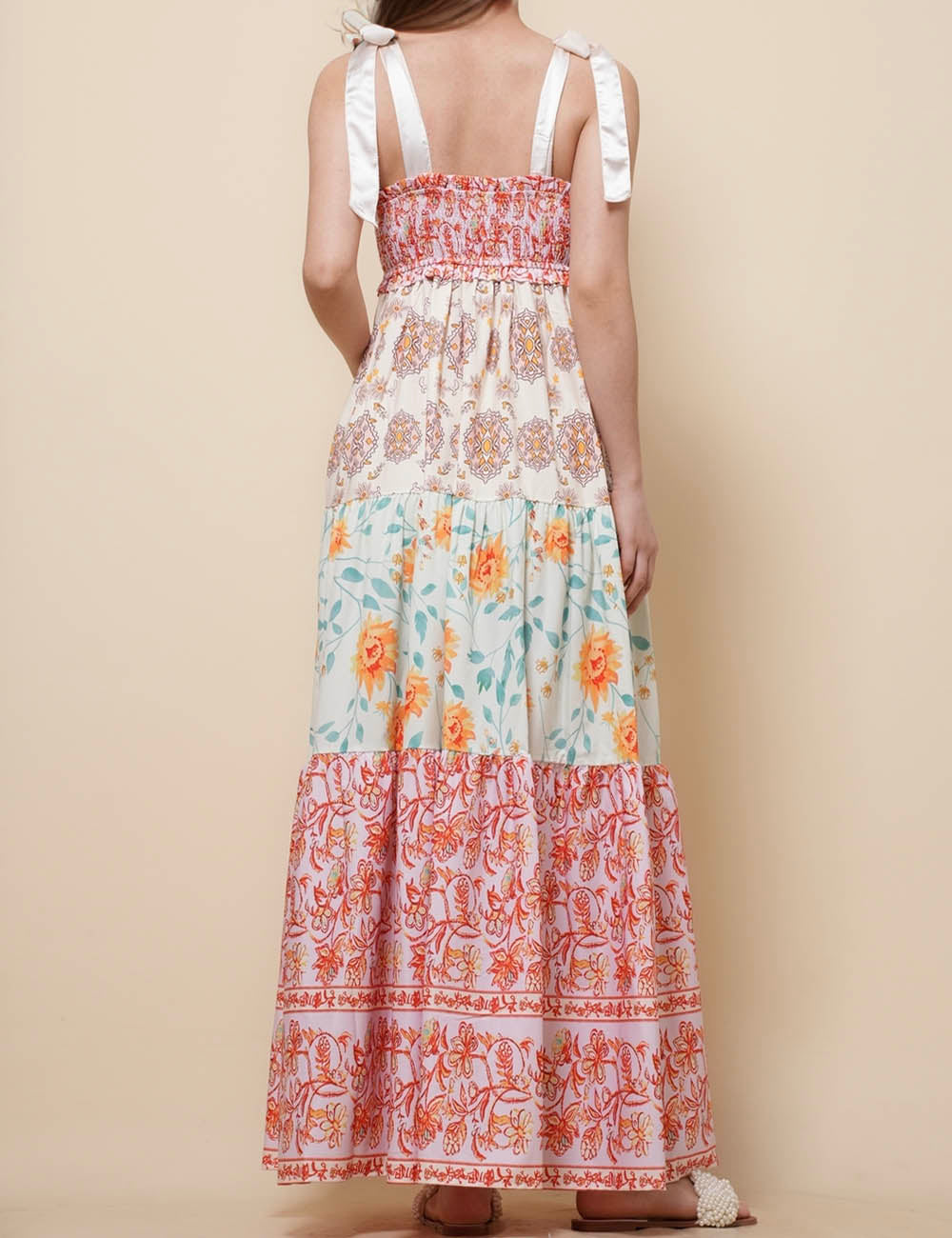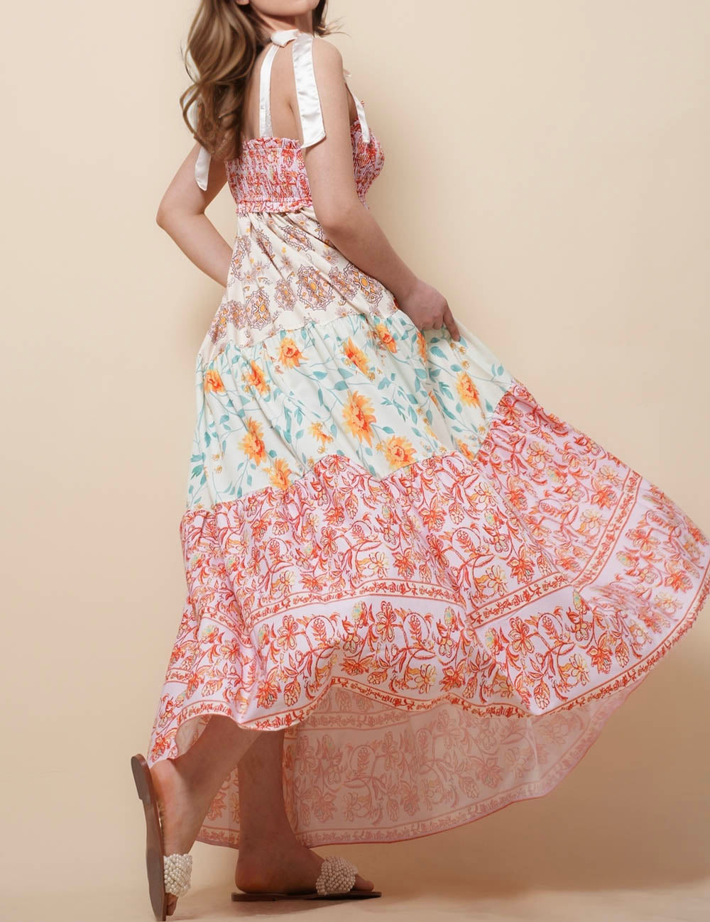 Ladies Strape Tie Shoulder Floral Print Maxi Dress SKD50568