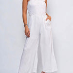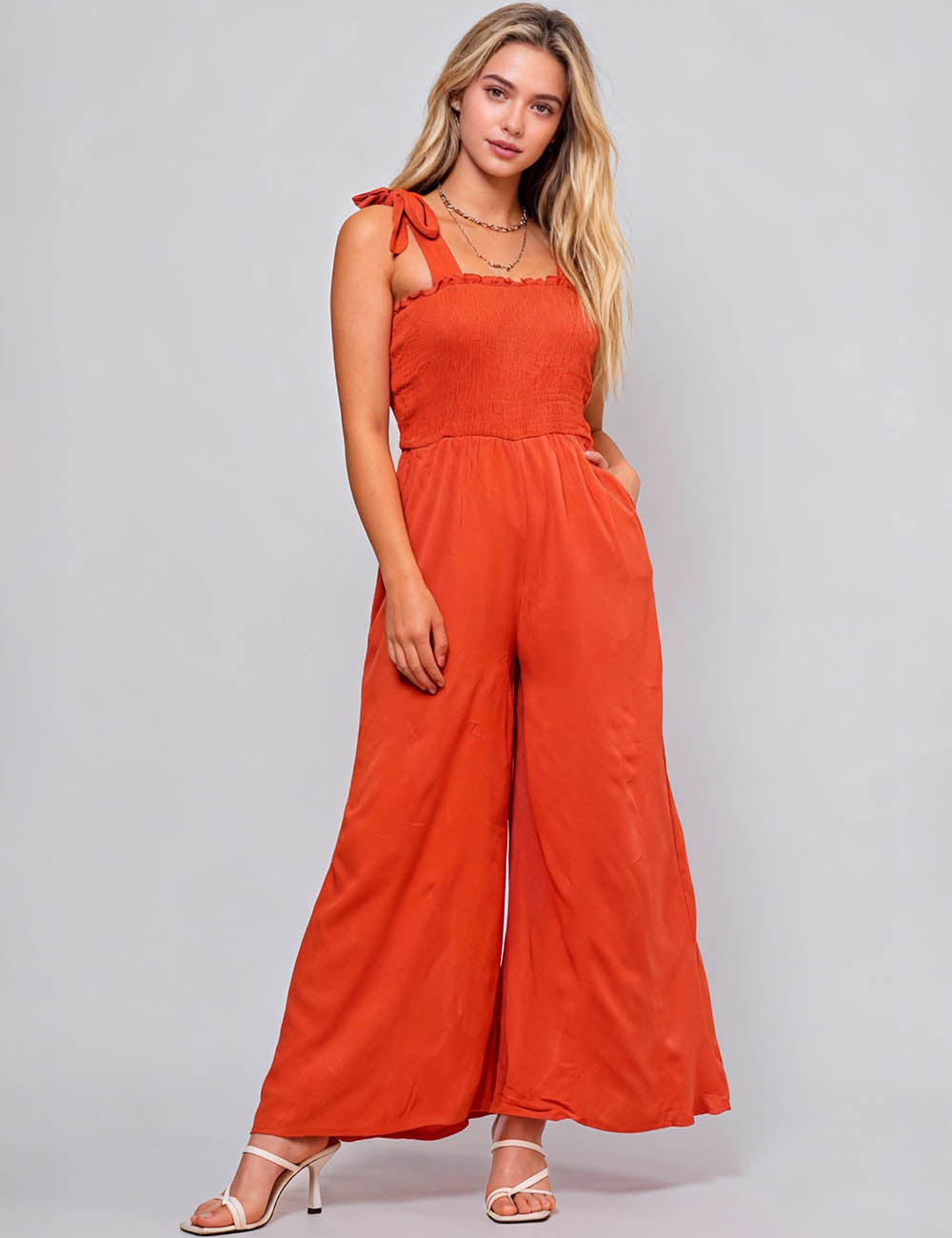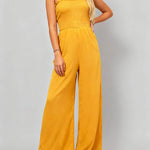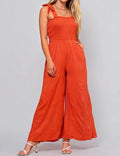 Ladies Strape Tie Shoulder Wide Leg Jumpsuit SKJ50396