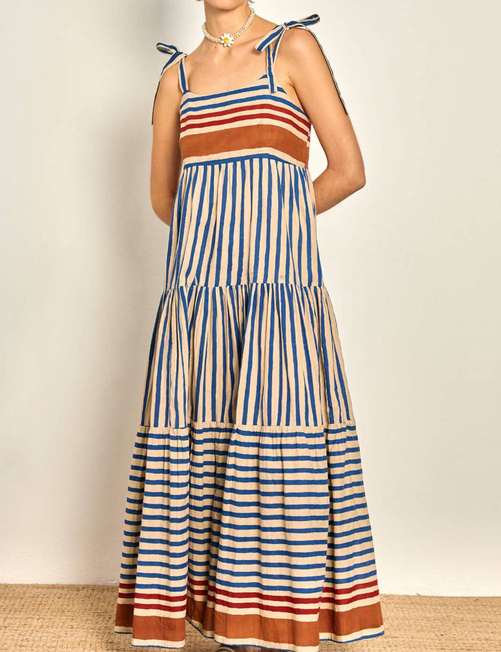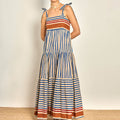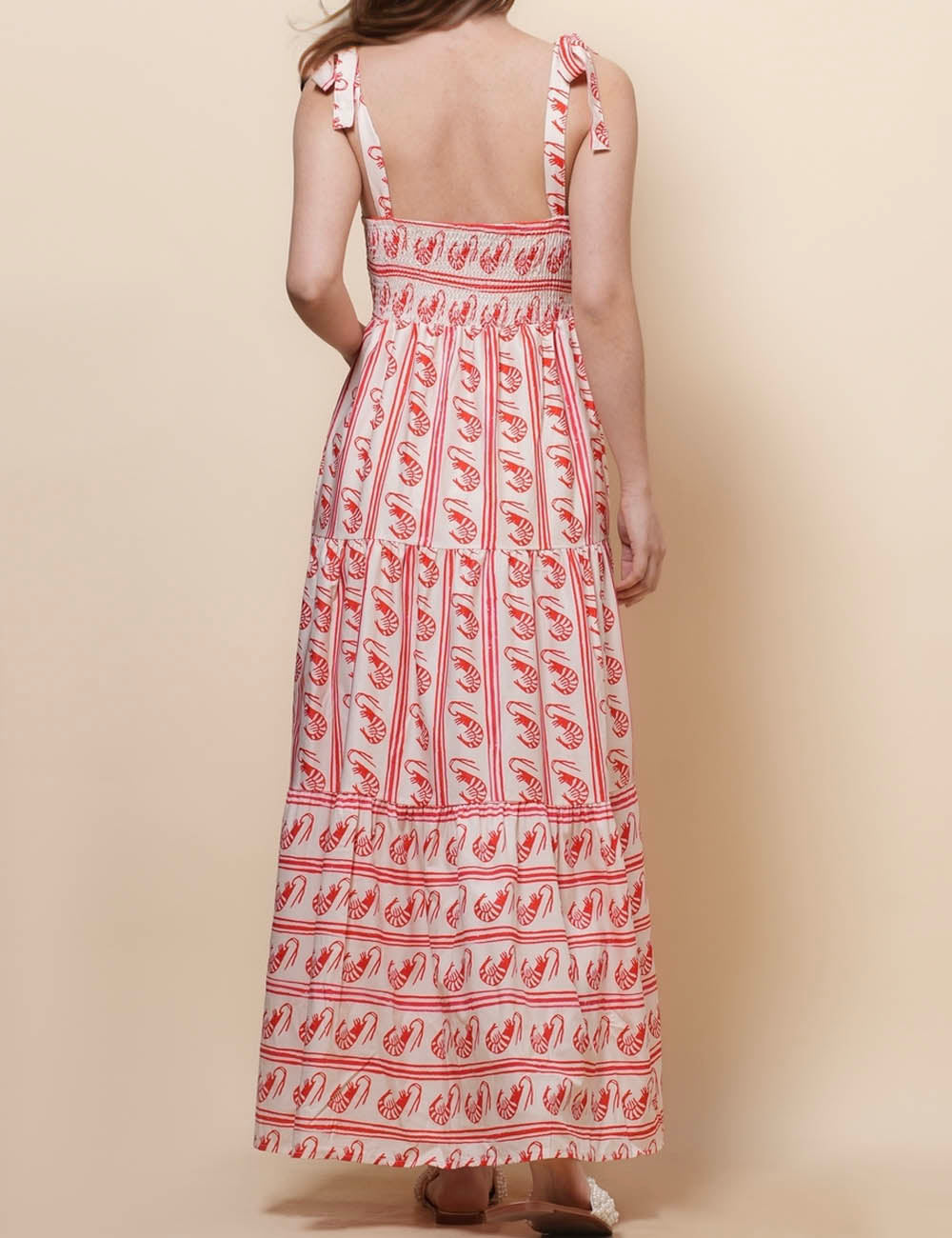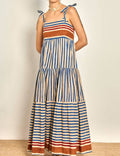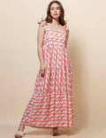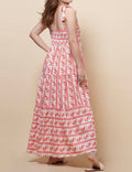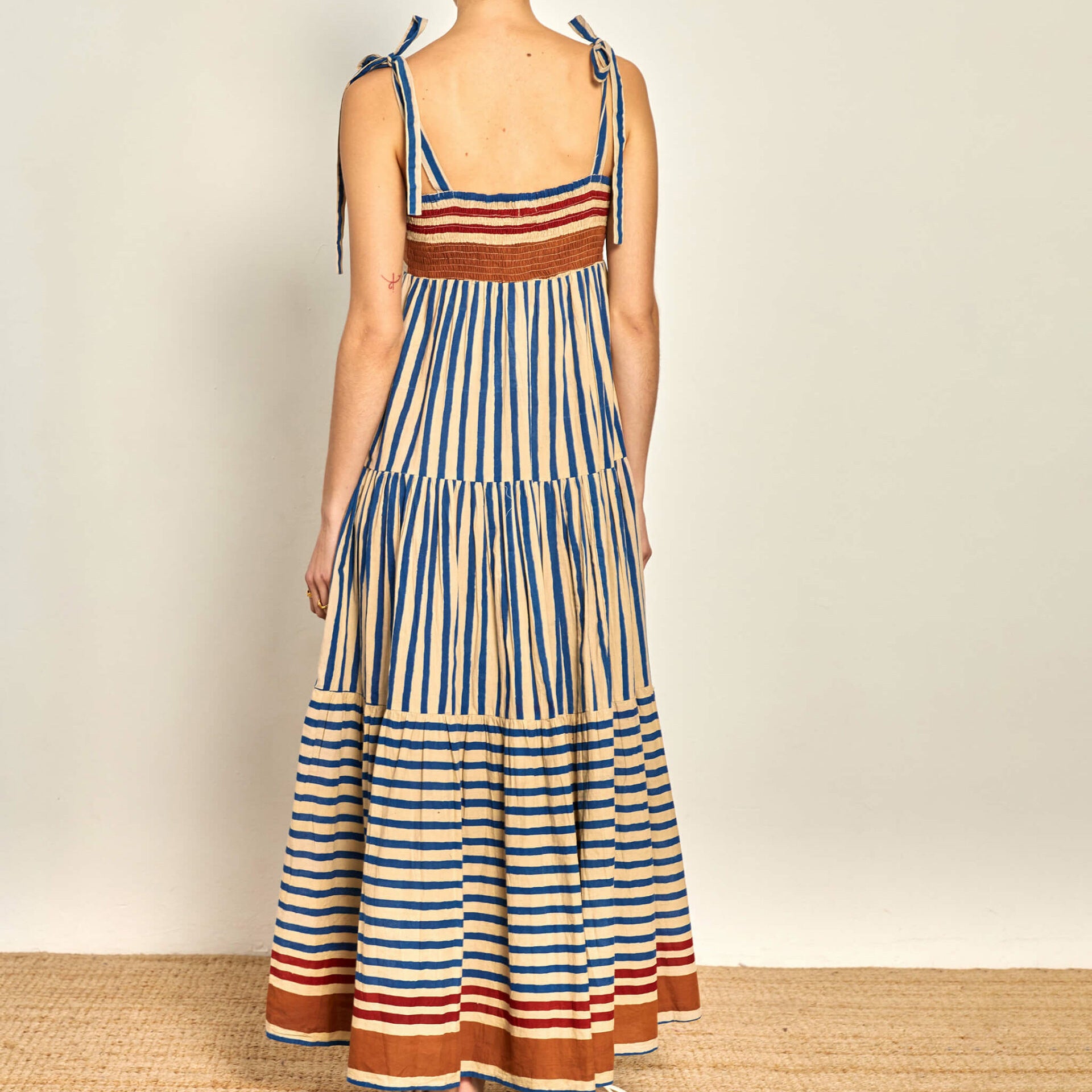 Ladies Straped Print Strape Tie Smocking Midi Dress SKD50800