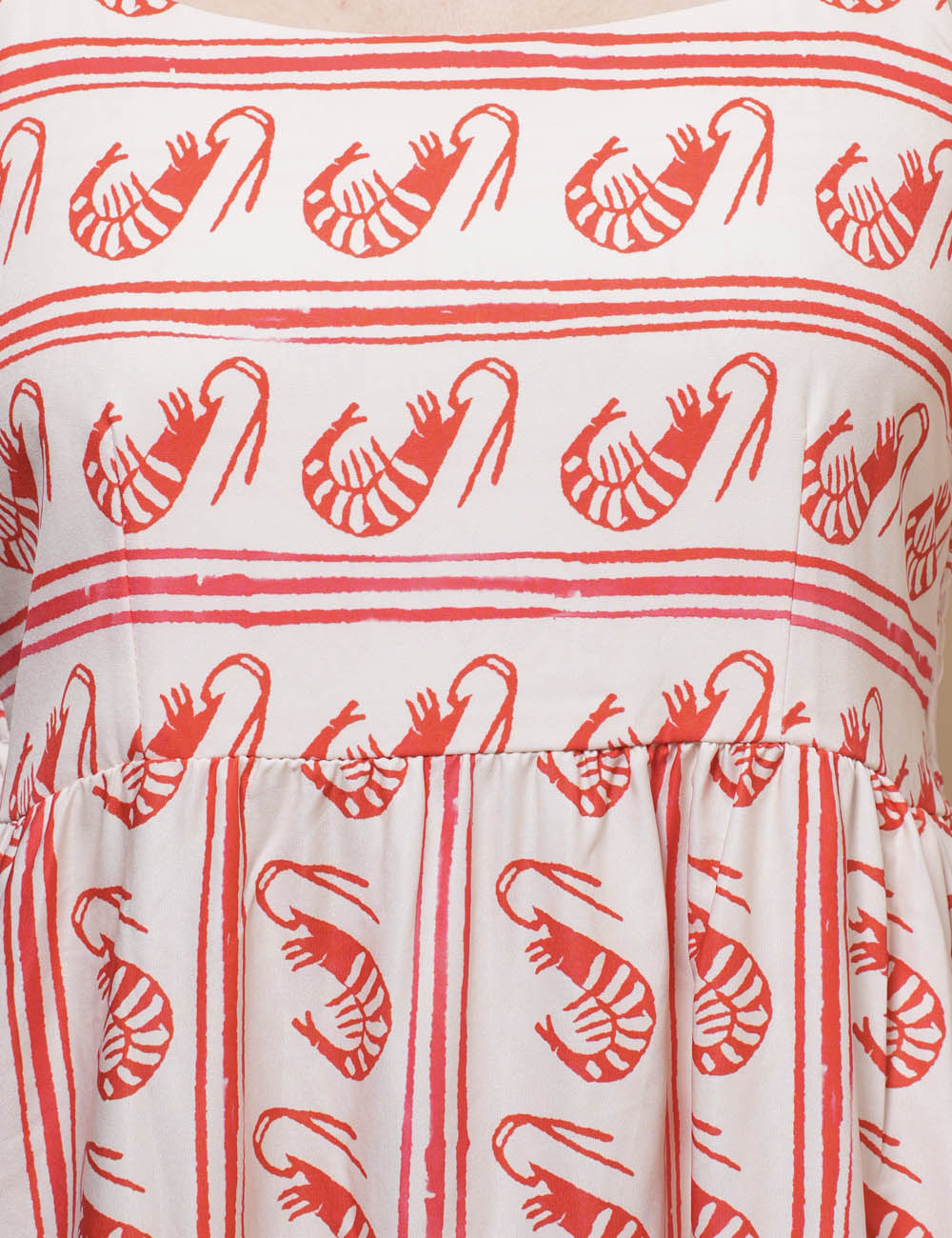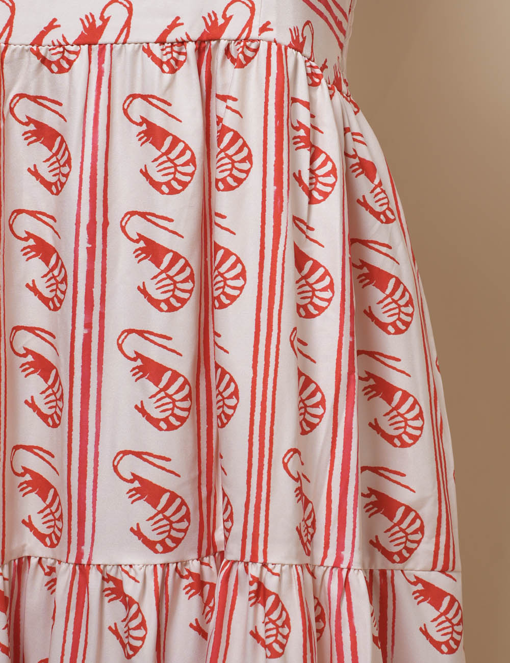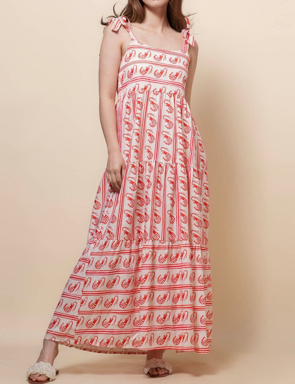 Ladies Straped Print Strape Tie Smocking Midi Dress SKD50800