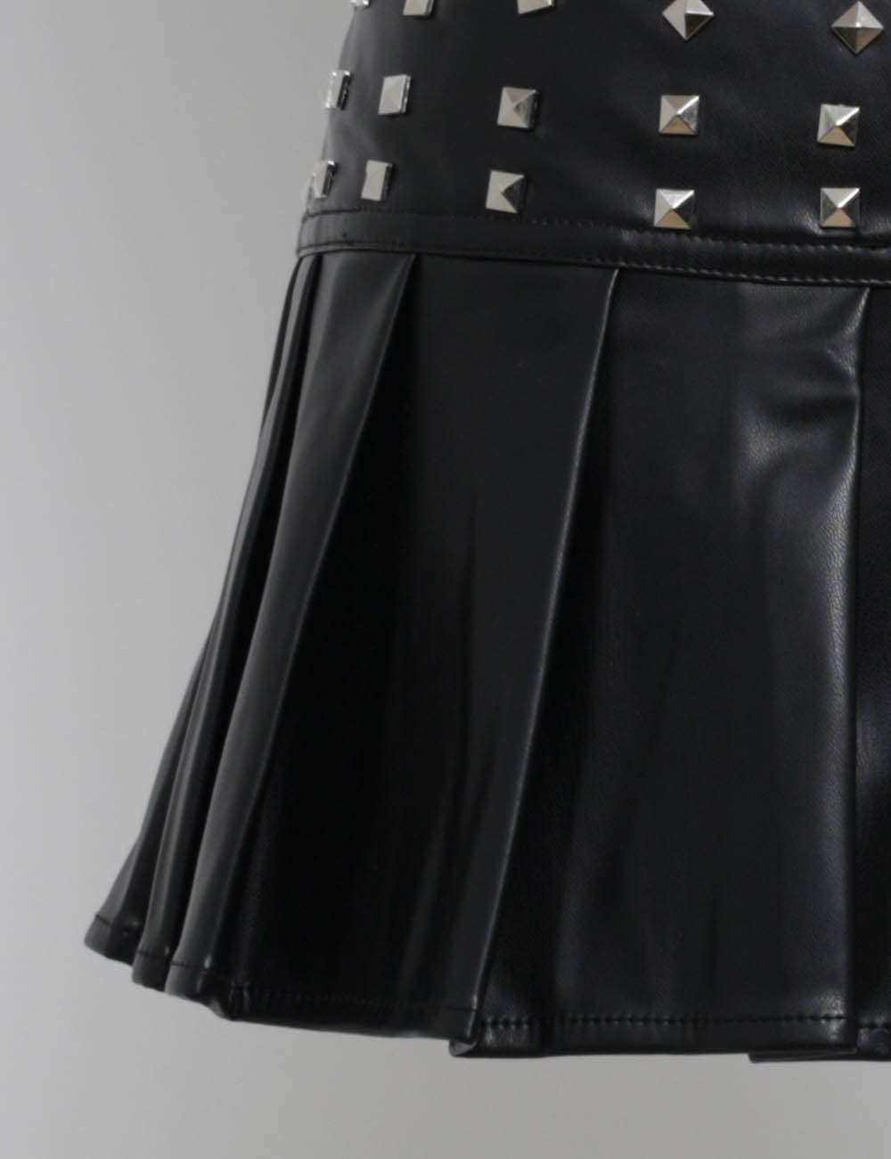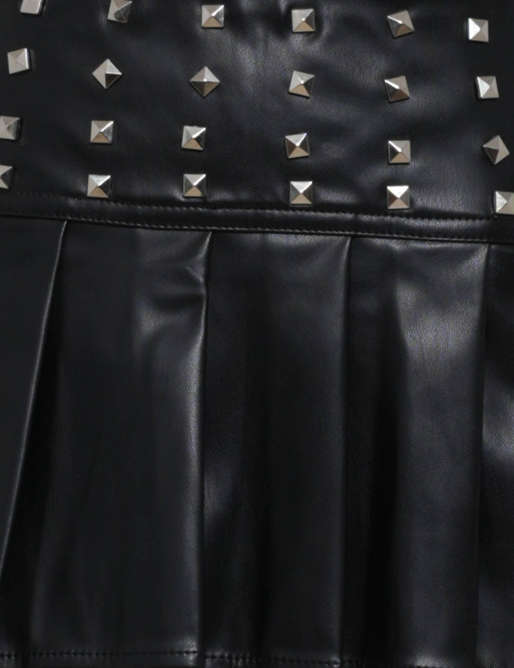 Ladies Street Chic Metal Stud Pleated Faux Leather Mini Skirt