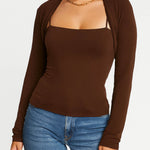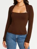 Ladies Stretch Knit Shrug Bolero Long Sleeves Top