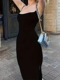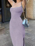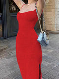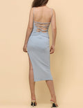 Ladies String Shoulder Backless Knit Midi Dress SKD4783